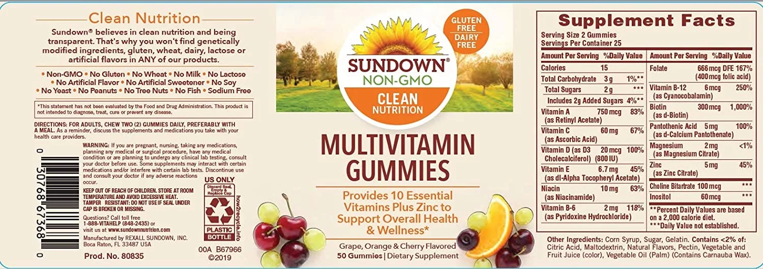 Sundown Adult Multivitamin, with Zinc, Vitamins A, C, D, E , Supports Immune Health Non-GMO��, Free of Gluten 50 ct (Pack of 6)