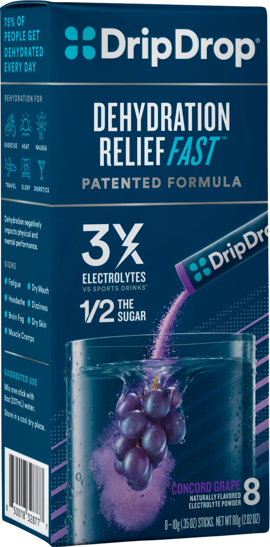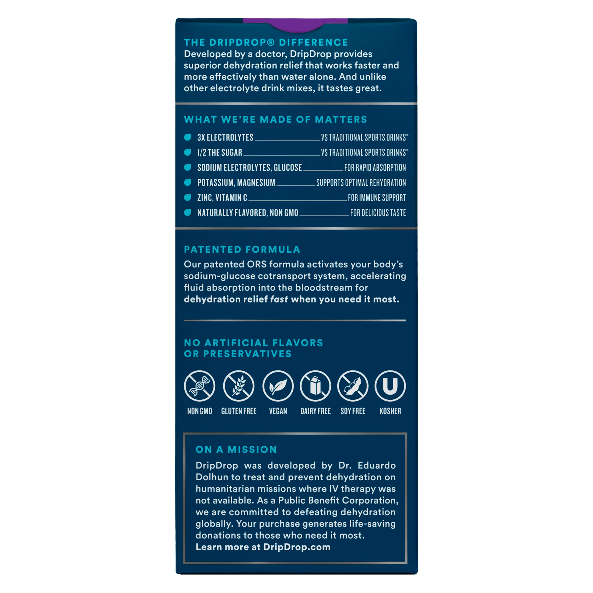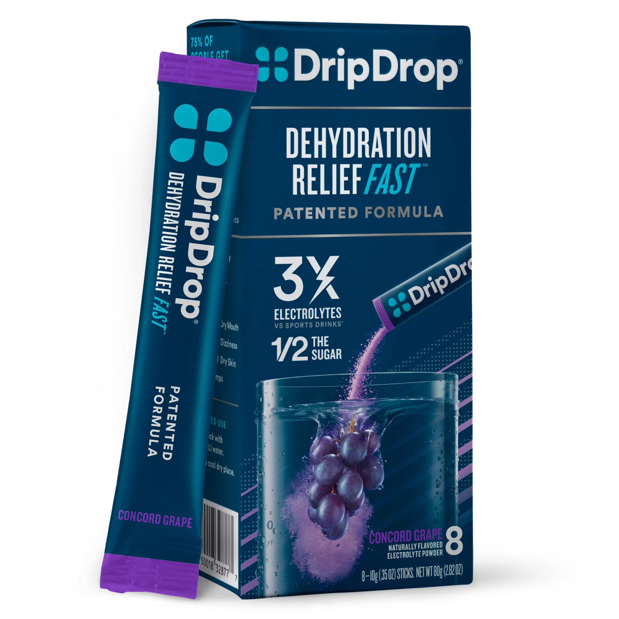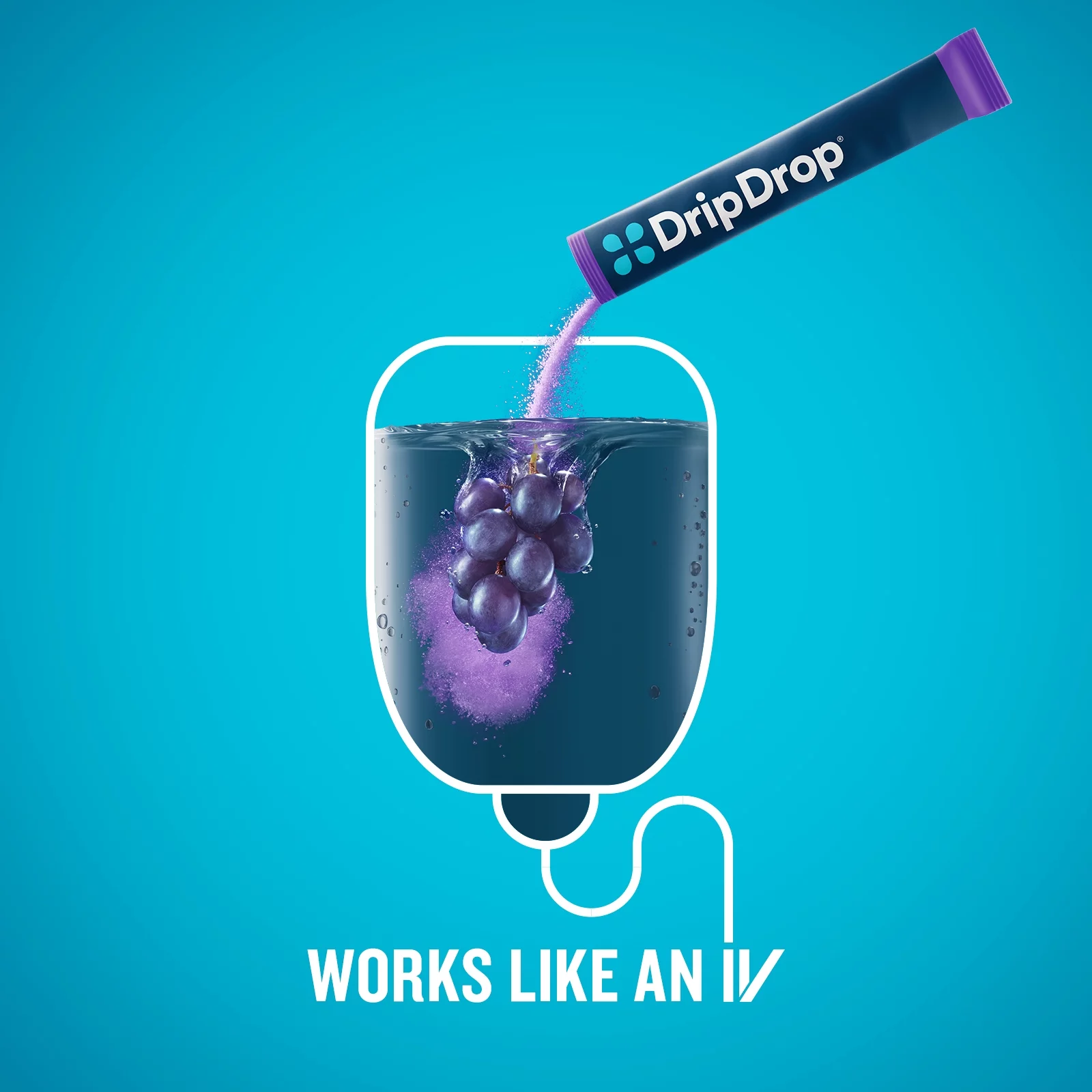 DripDrop - Electrolyte Powder for Dehydration Relief Fast - Grape - 8 Pk (HSA/FSA Approved)
