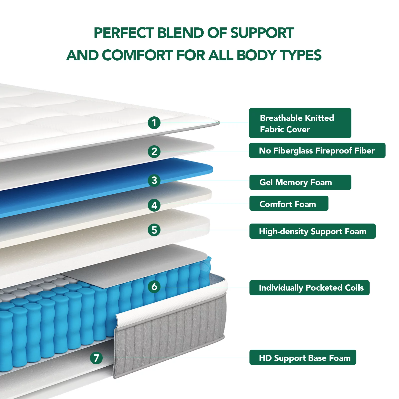 12 Inch Twin XL Gel Memory Foam Hybrid Mattress / CertiPUR-US / Motion Isolation / Pressure Relieving / Bed-in-a-box / Pillow Top / Moderate Firmness / Suitable For Kids