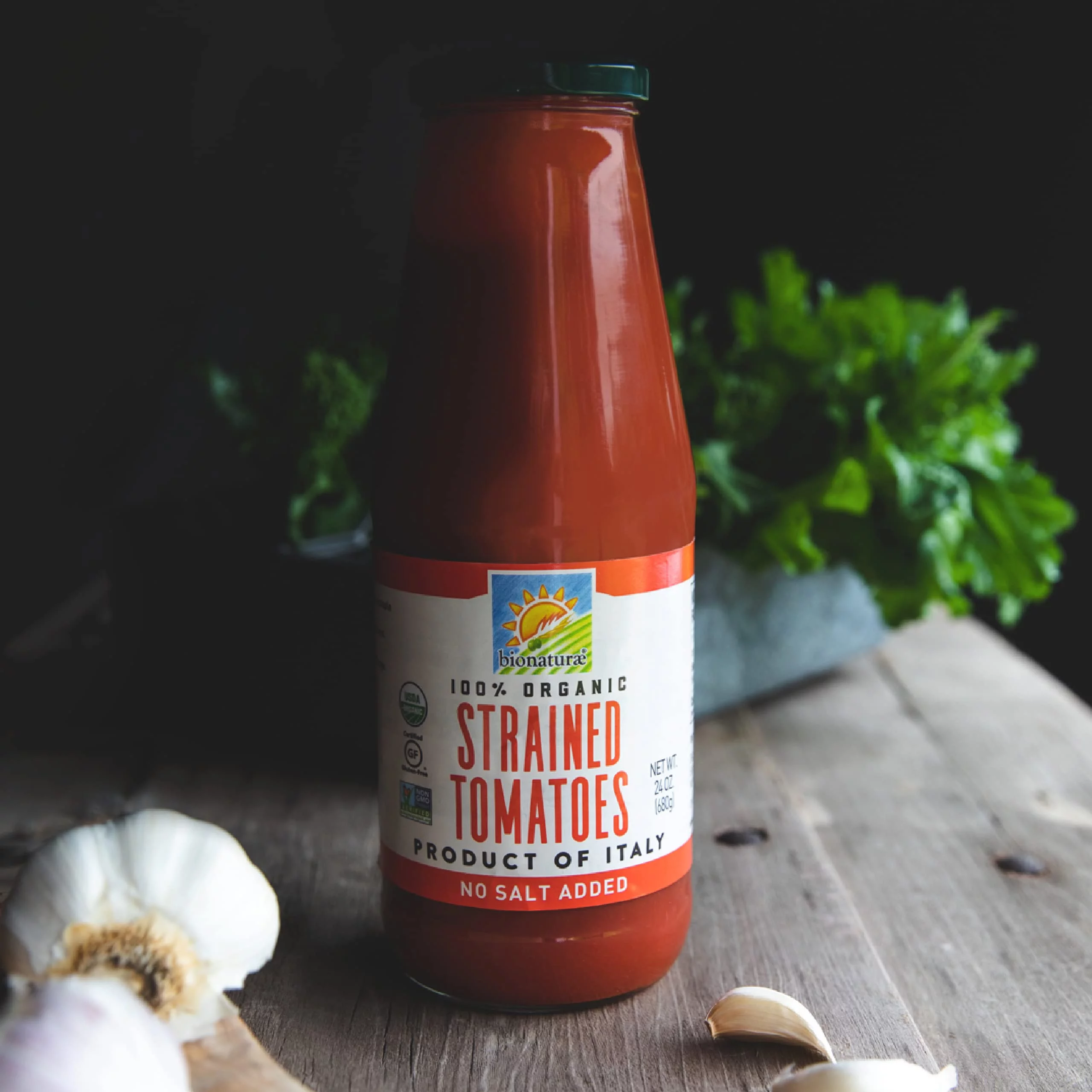 Bionaturae Organic Strained Tomatoes - No Salt Strained Tomatoes, Strained Tomatoes in a Jar, Keto Friendly, Non-GMO, USDA Certified Organic, No Added Sugar, Made in Italy - 24 Oz, 6 Pack