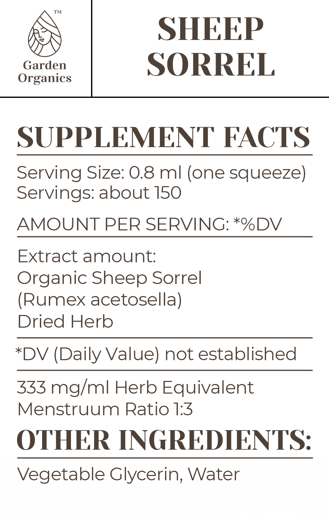 Garden Organics Sheep Sorrel Tincture Alcohol-FREE Extract, Organic Sheep Sorrel (Rumex acetosella) Dried Herb 4 fl oz