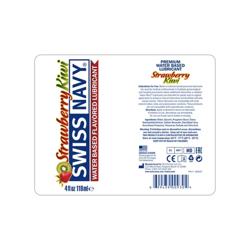 Swiss Navy Water-Based Lubricant , Strawberry-Kiwi Flavored 4oz - 2 Pack
