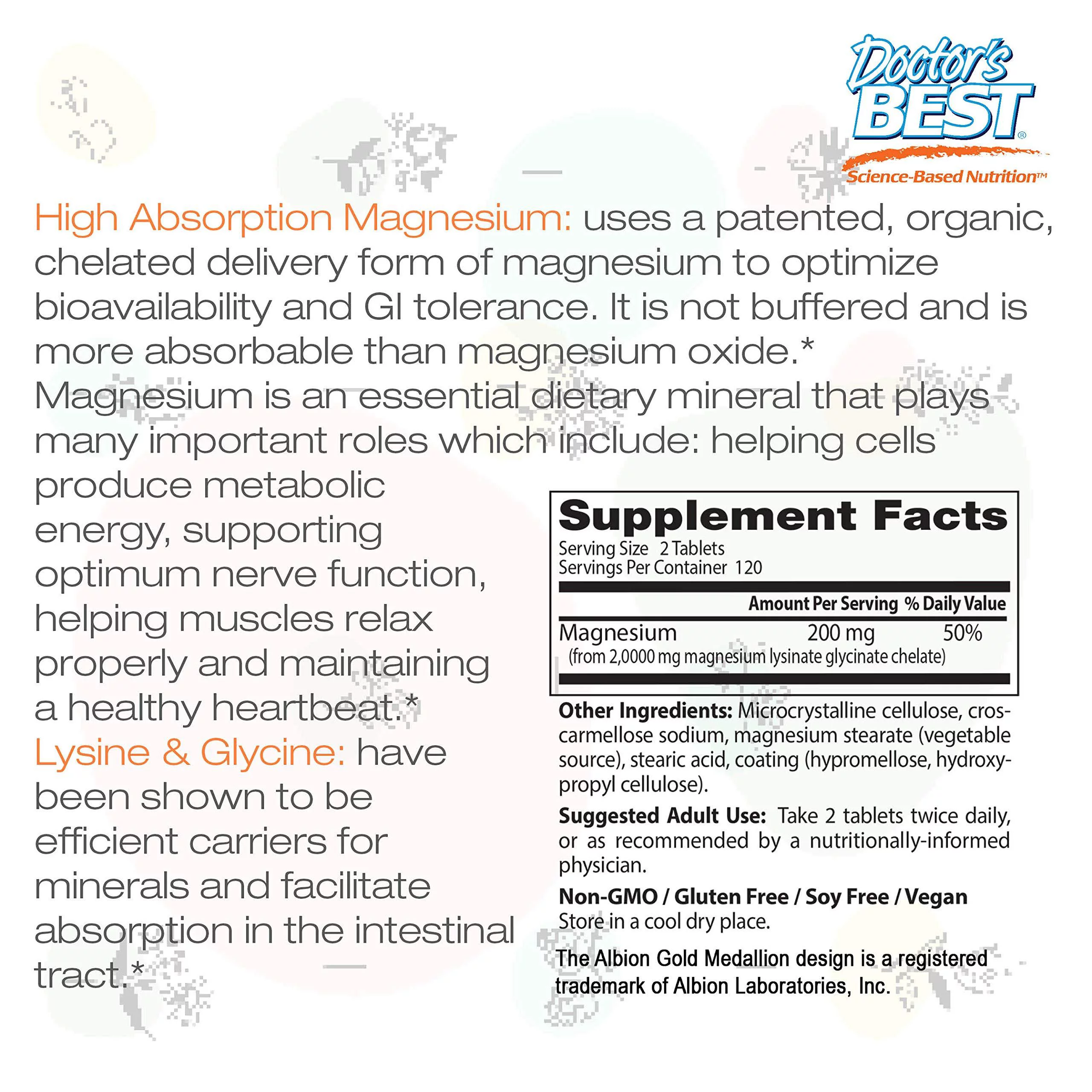 Doctor's Best High Absorption Magnesium Glycinate Lysinate, 100% Chelated, Non-GMO, Vegan, Gluten & Soy Free, 100 mg, 240 Count