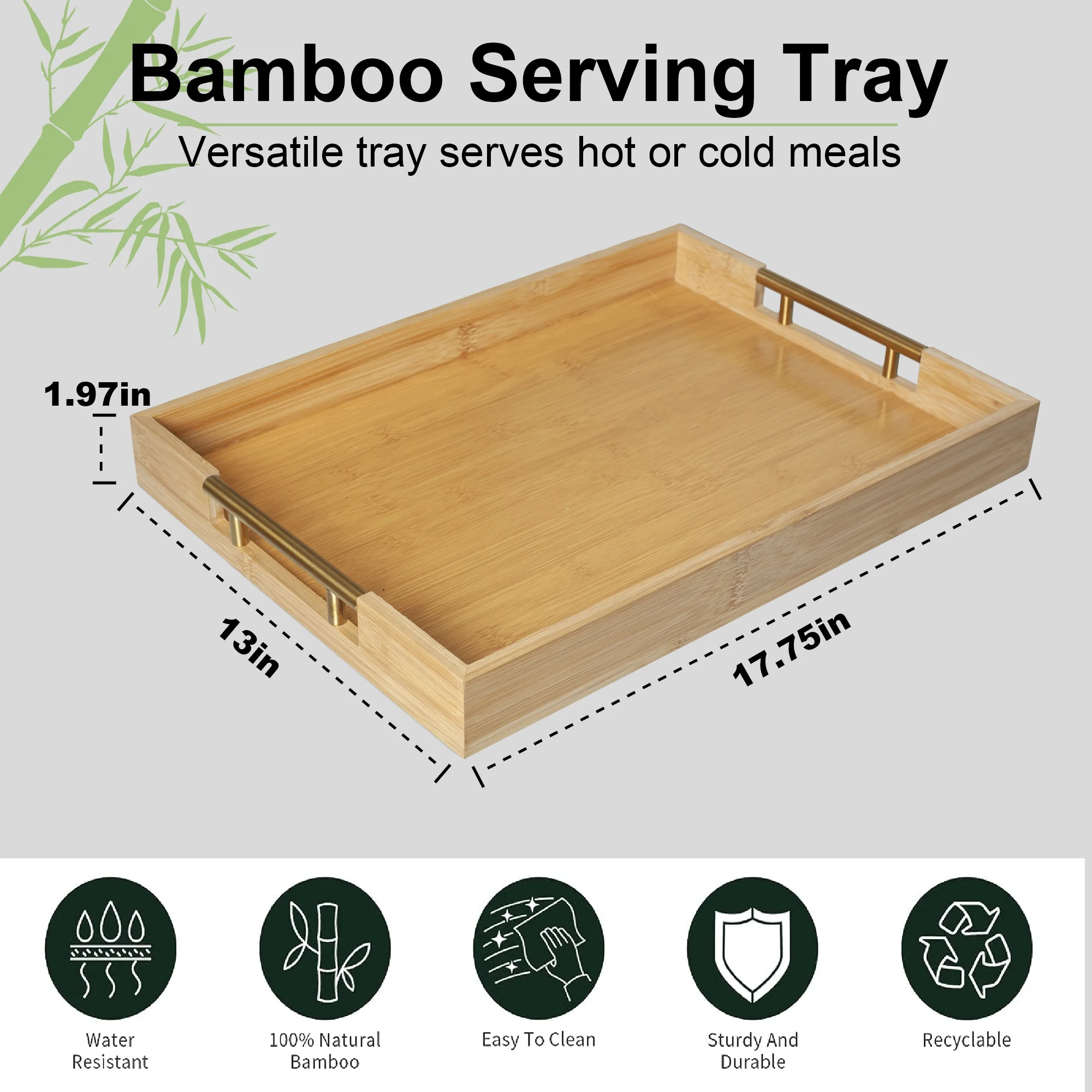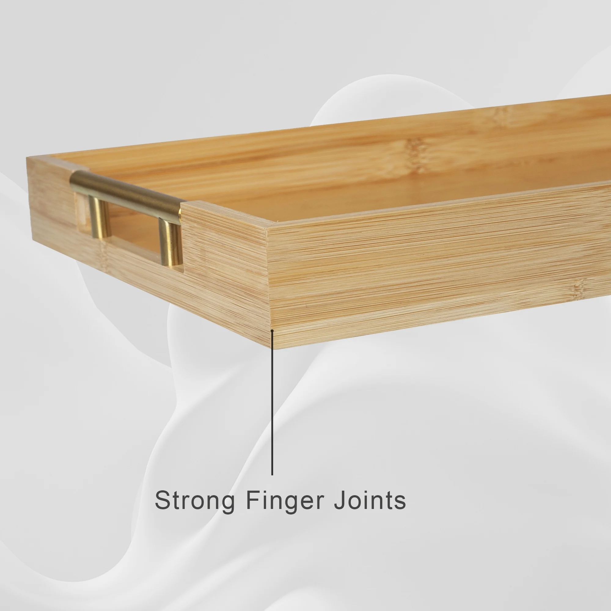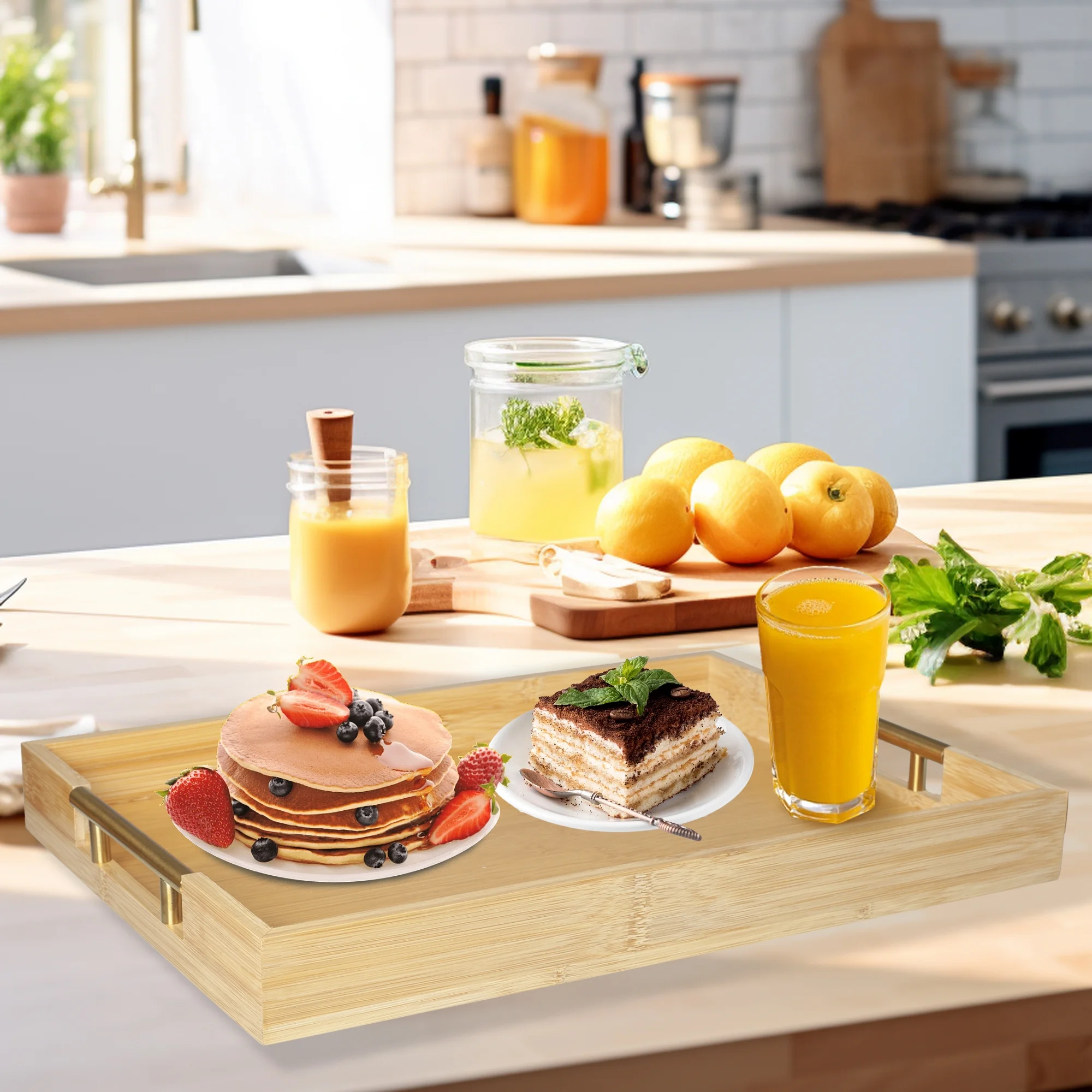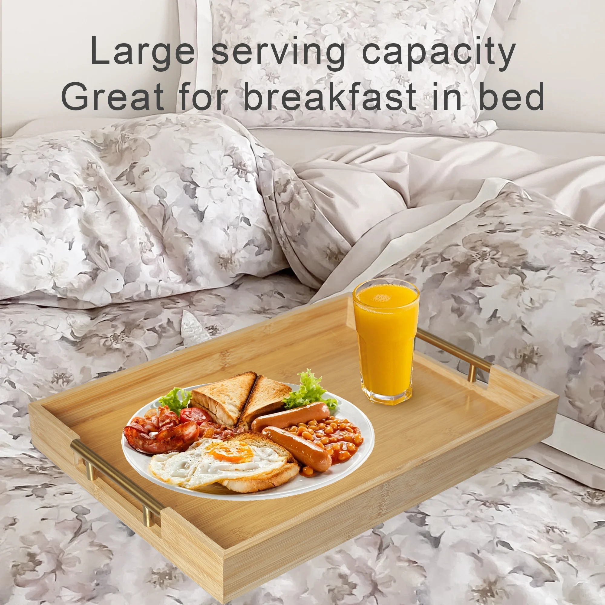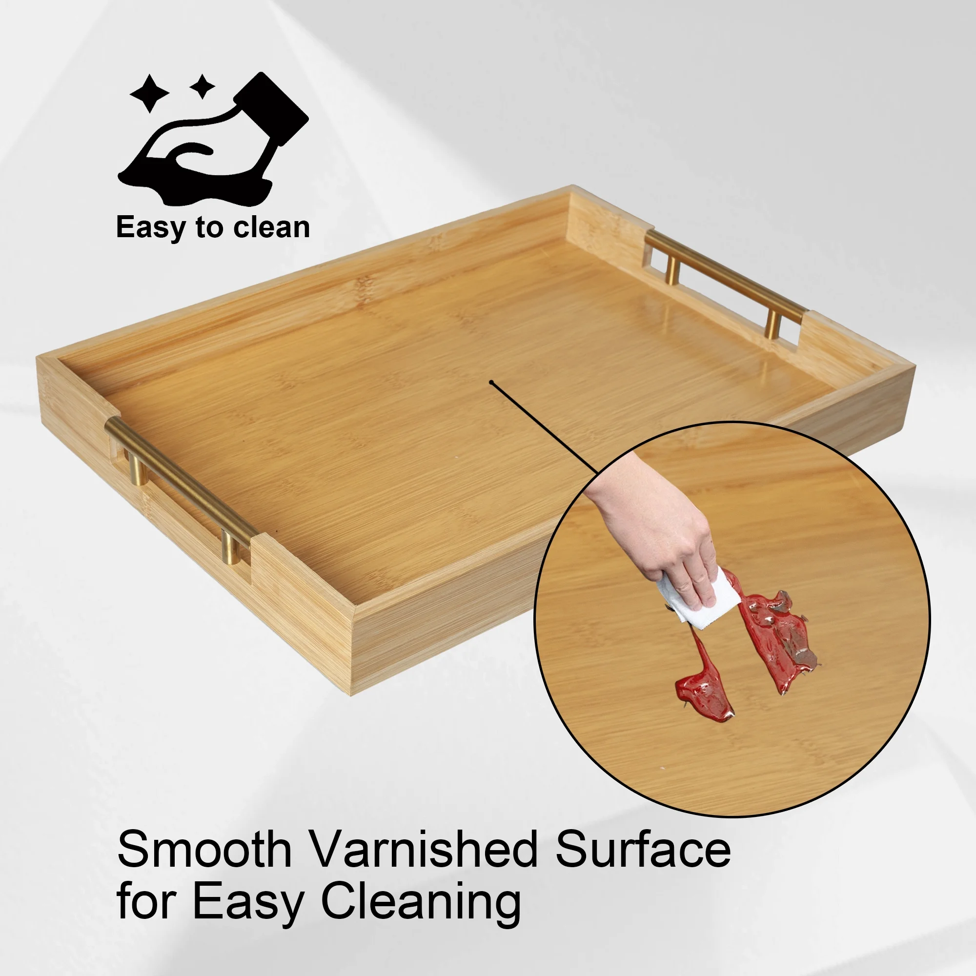 MinBoo Modern Bamboo Serving Trays with Metal Handles – Wooden Ottoman Trays for Entertaining & Serving Food - Natural Color