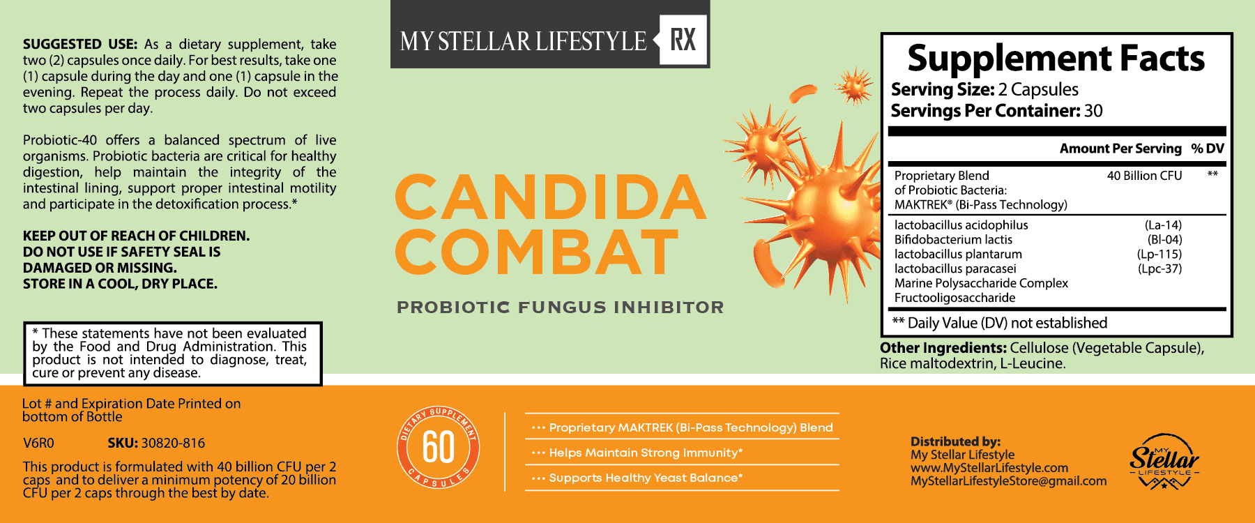 12 Pack Candida Combat Probiotic Fungus Inhibitor-60 Capsules x12