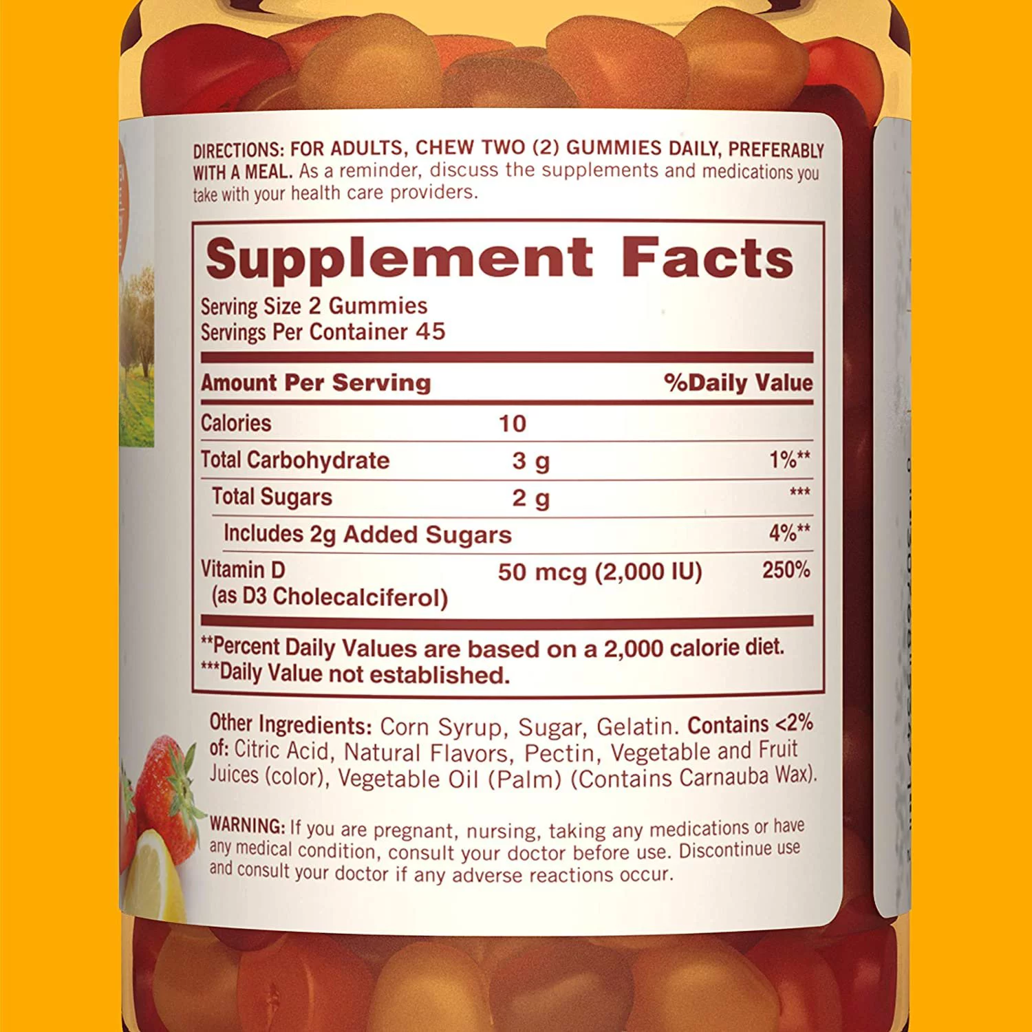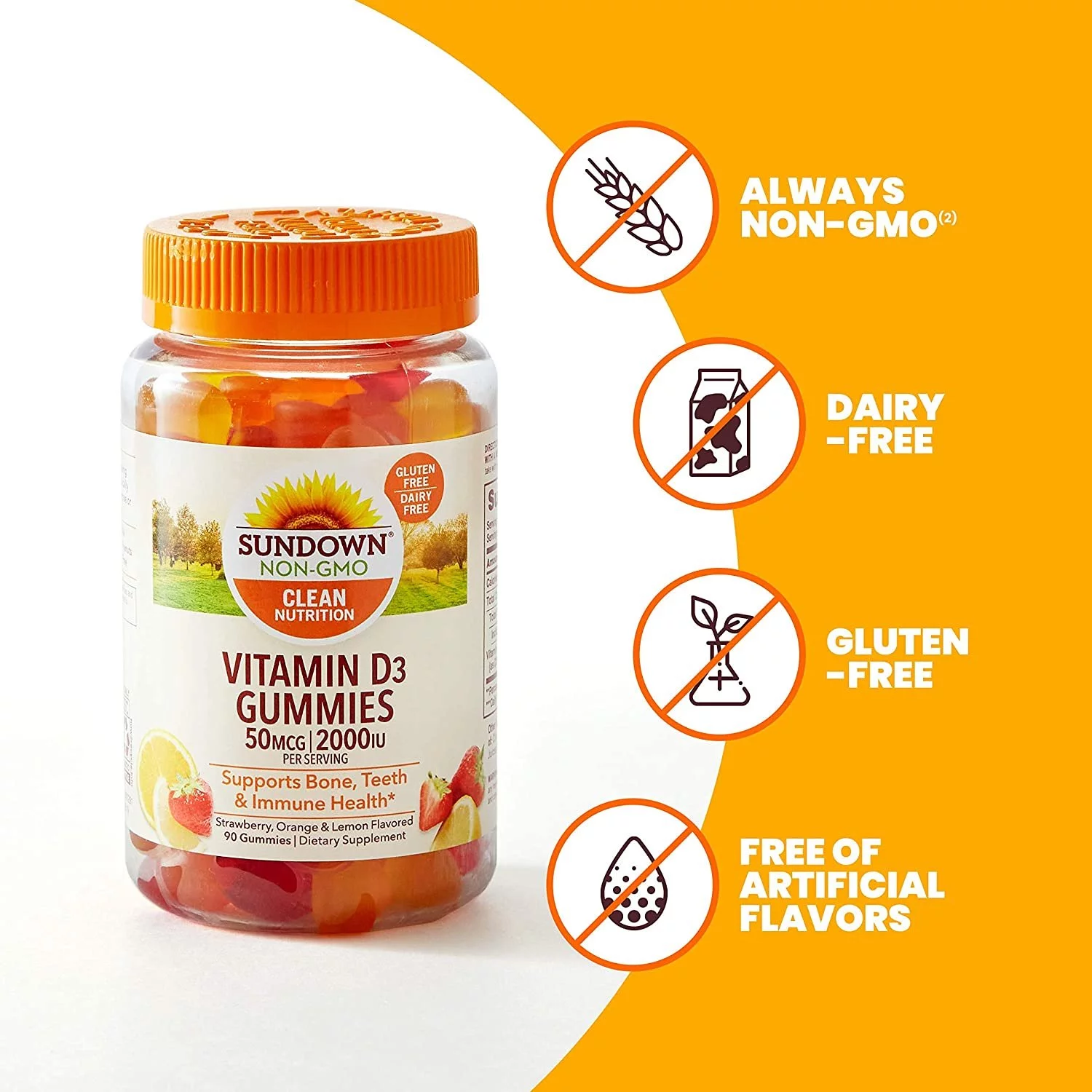 Sundown Naturals Vitamin D3 2000 IU Gummies, Strawberry, Orange, & Lemon Flavored 90 ea (Pack of 6)