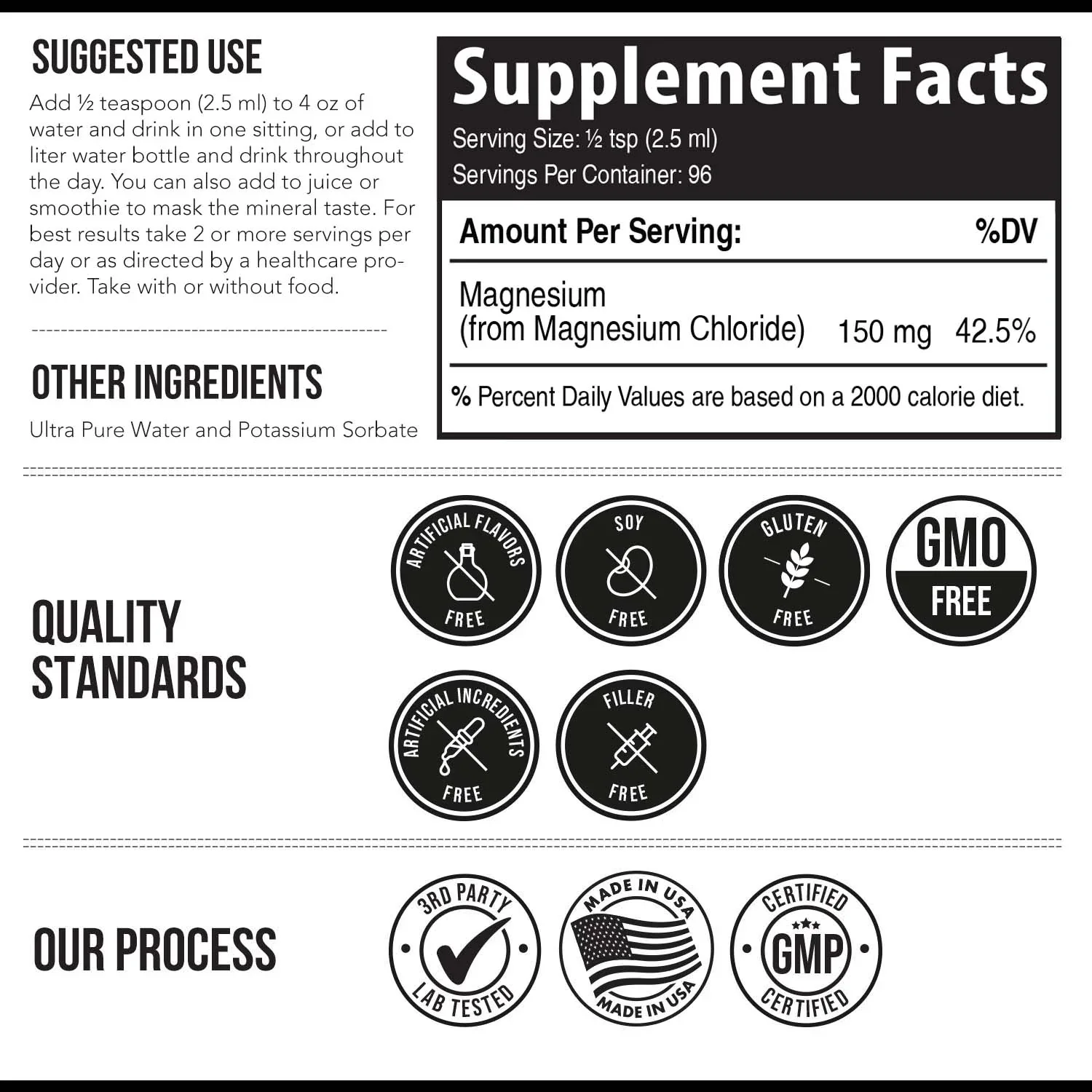 Ionic Liquid Magnesium (96 Servings) Highest Absorption Magnesium Chloride, Picometer Particle Size, Glass Bottle, Ionically Charged, Same Form of Magnesium Found in Vegetables (8 oz.)
