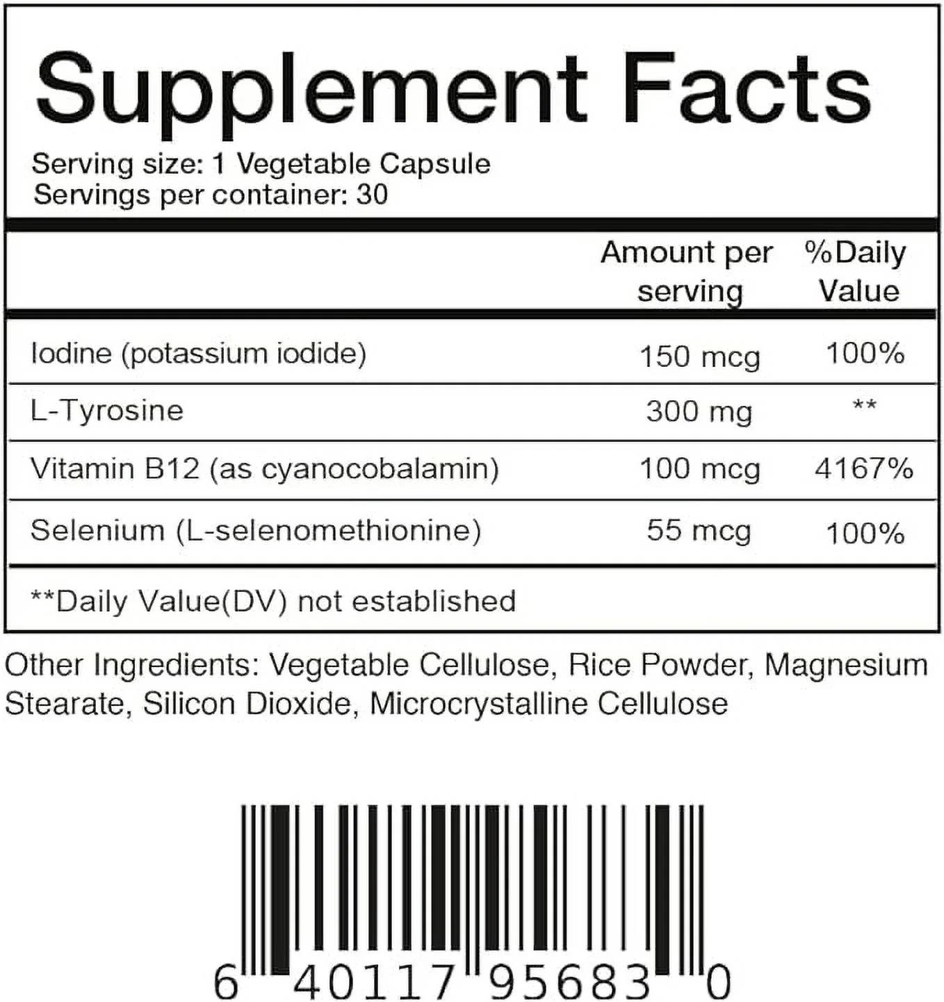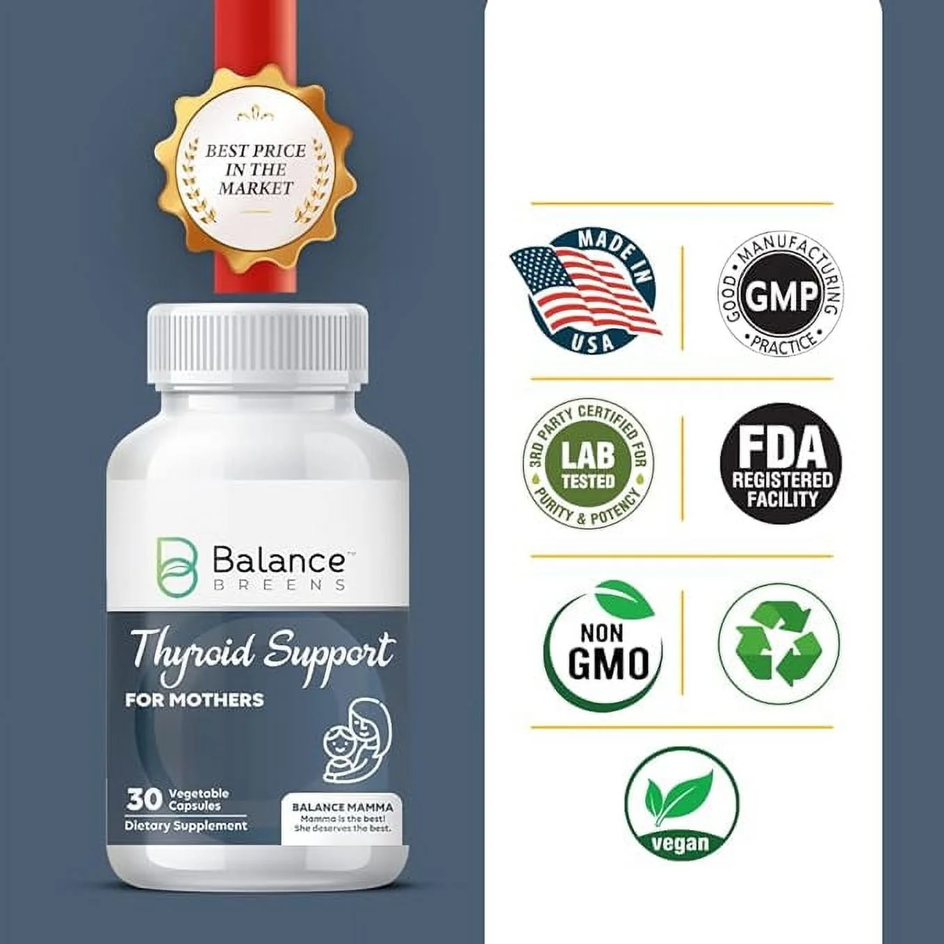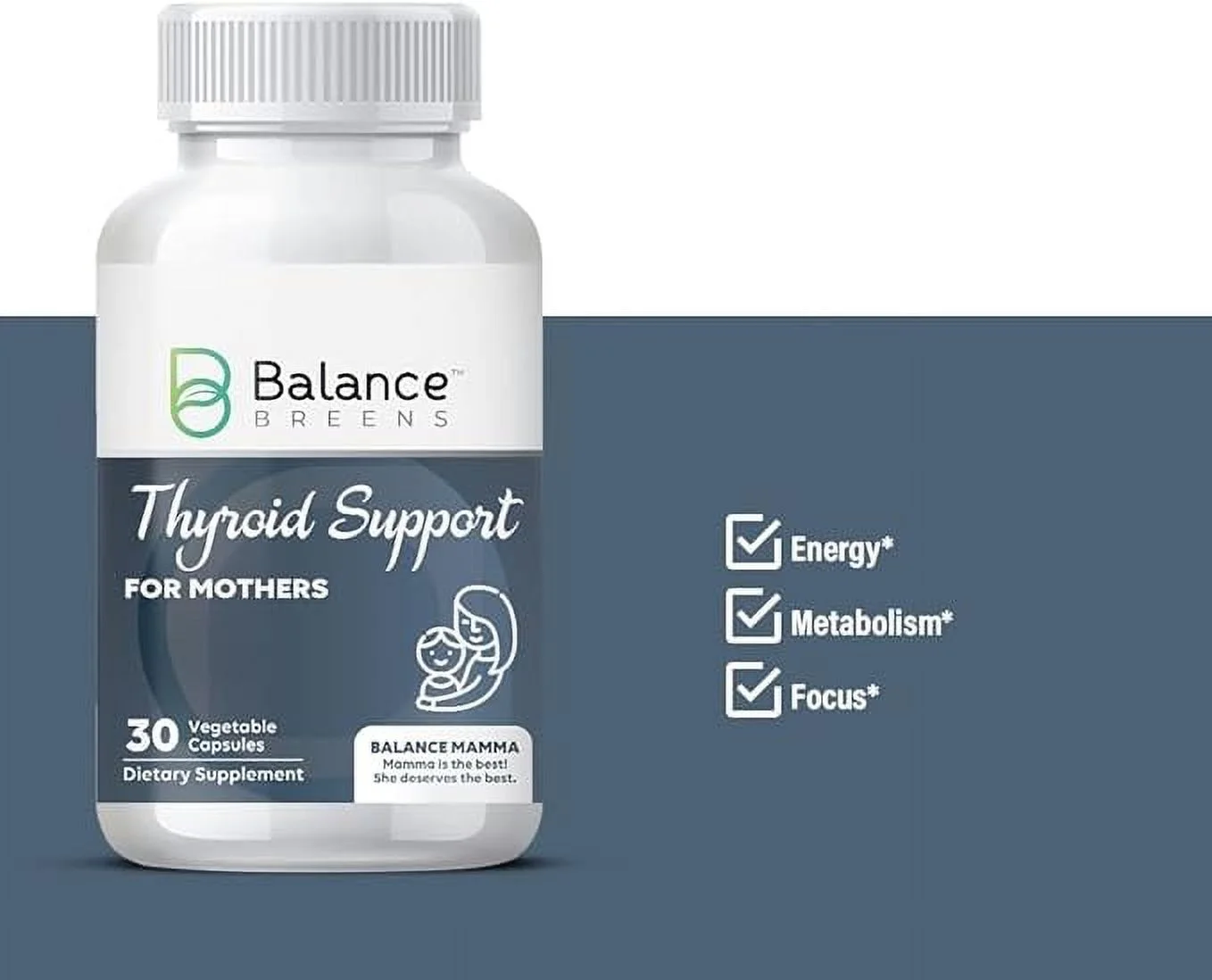 Balance Breens Thyroid Support Supplement for Women - Iodine, L-Tyrosine, Vitamin B12, Selenium - Energy, Metabolism & Focus Support Function - 30 Non-GMO Vegetable Capsules
