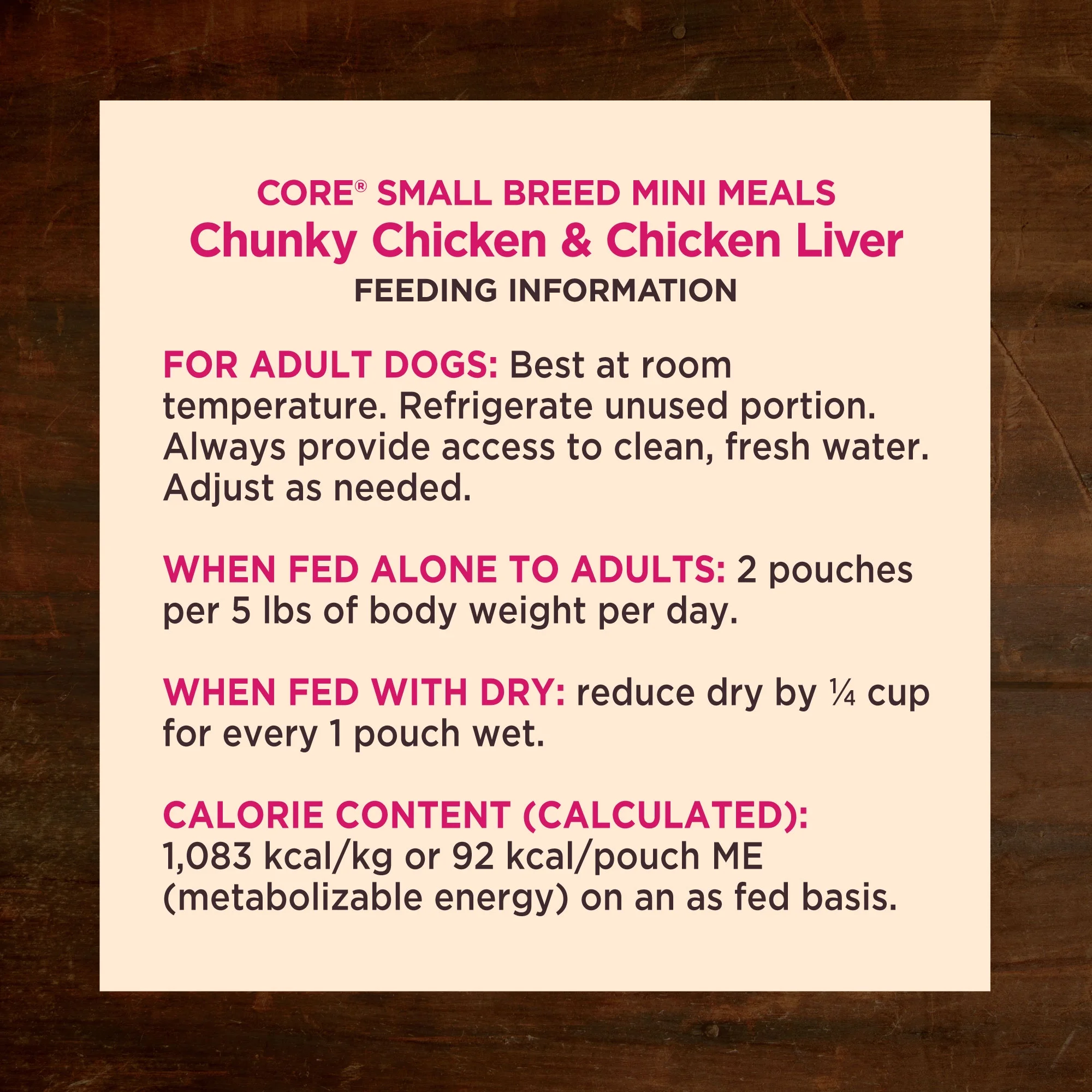 Wellness CORE Natural Grain Free Small Breed Mini Meals Wet Dog Food, Chunky Chicken & Chicken Liver Entrée in Gravy, 3-Ounce Pouch (Pack of 12)