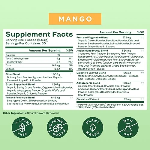 Bloom Nutrition Super Greens Powder Smoothie & Juice Mix - Probiotics for Digestive Health & Bloating Relief for Women, Digestive Enzymes with Superfoods Spirulina & Chlorella for Gut Heal