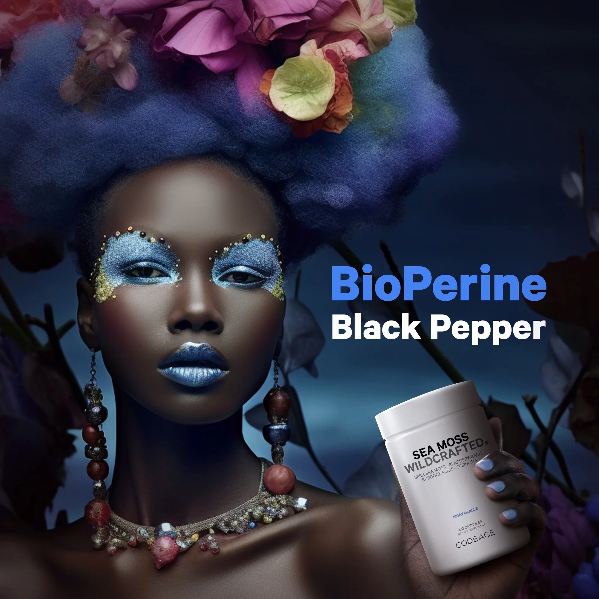Codeage Raw Wildcrafted Irish Sea Moss, Bladderwrack, Burdock Root, Spirulina & BioPerine® Pepper, 120 ct
