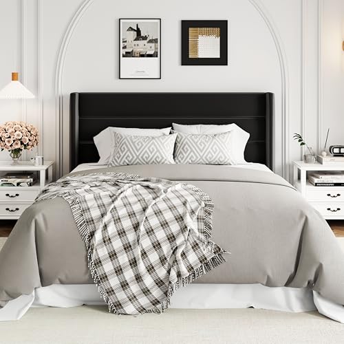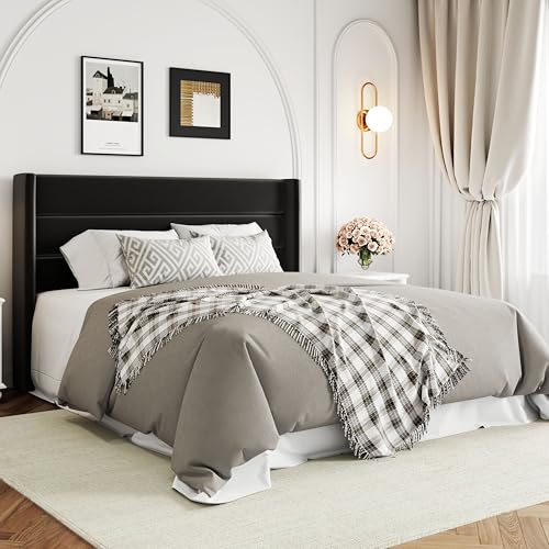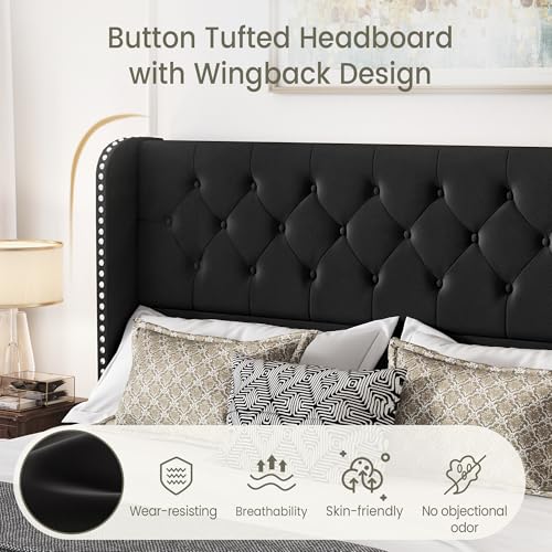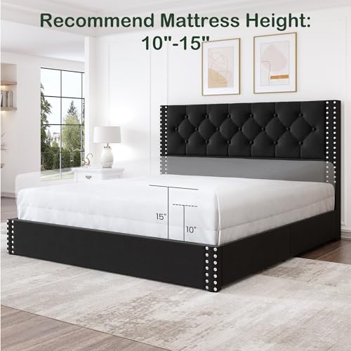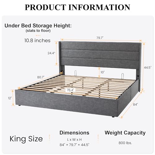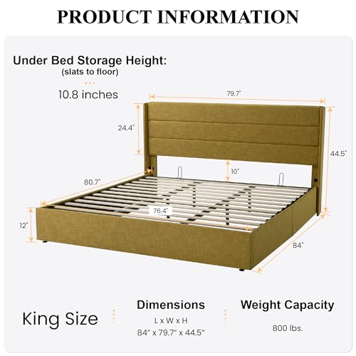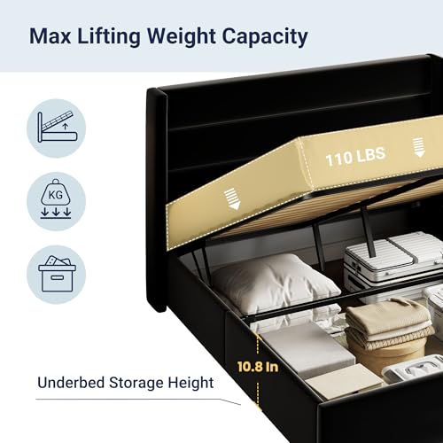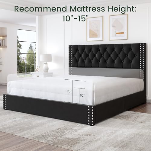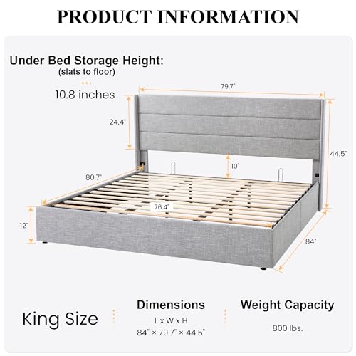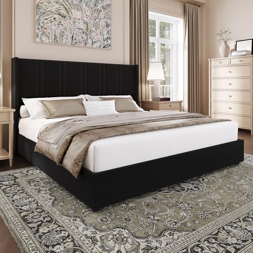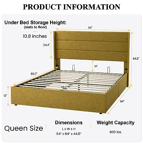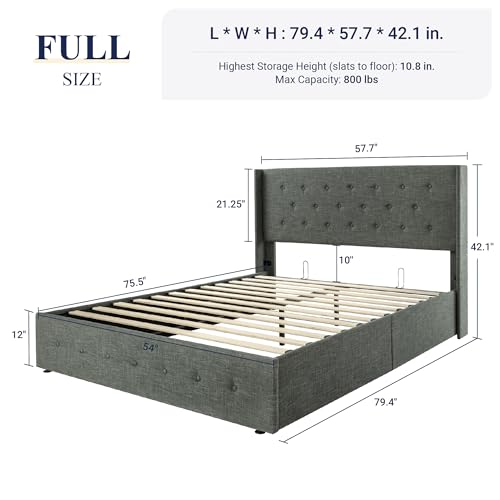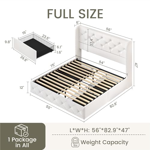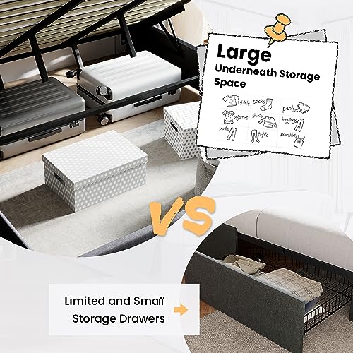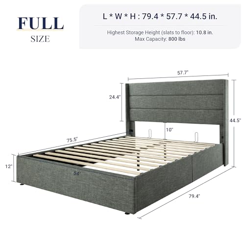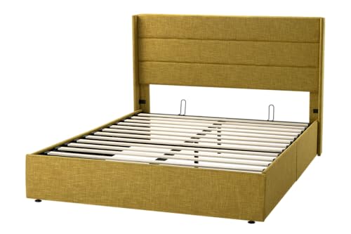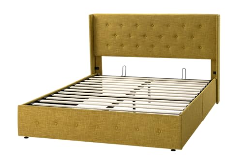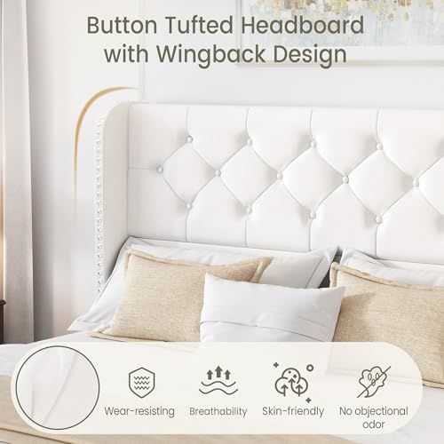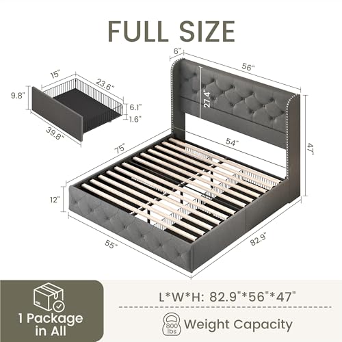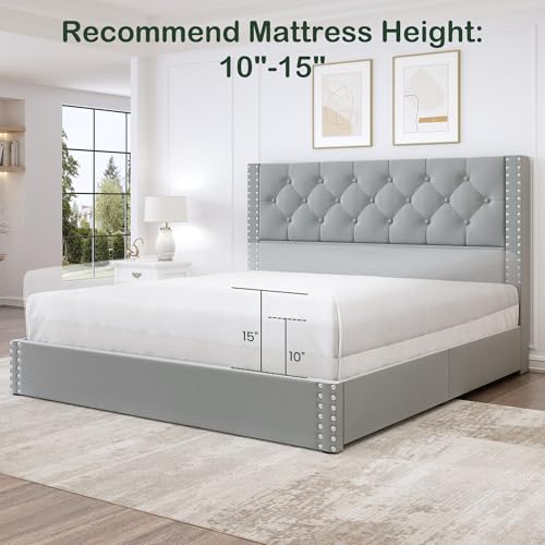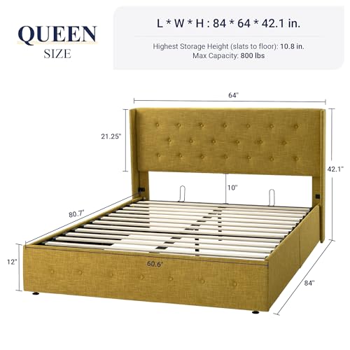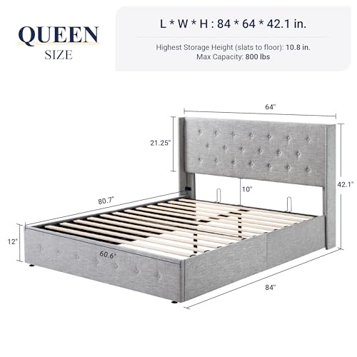 Allewie Full Size Lift Up Storage Bed, Modern Wingback Headboard, Hydraulic Support, No Box Spring Needed, Light Beige