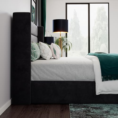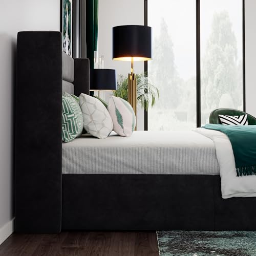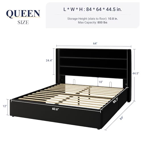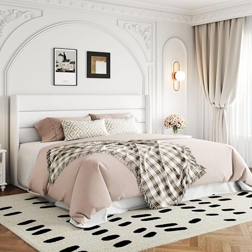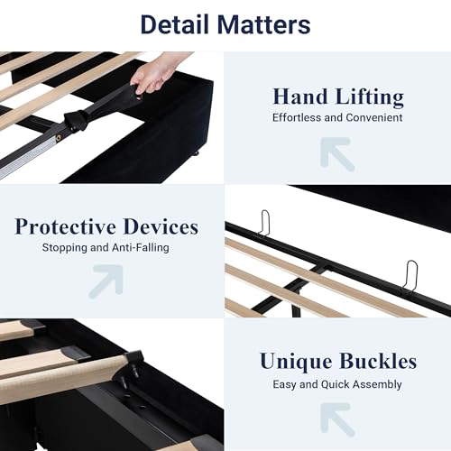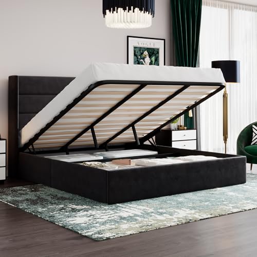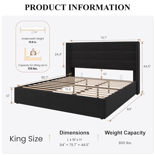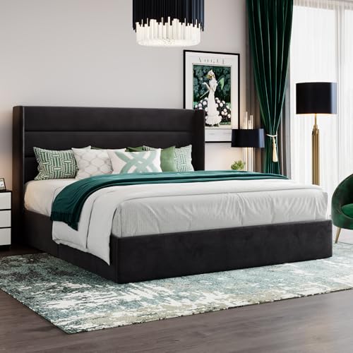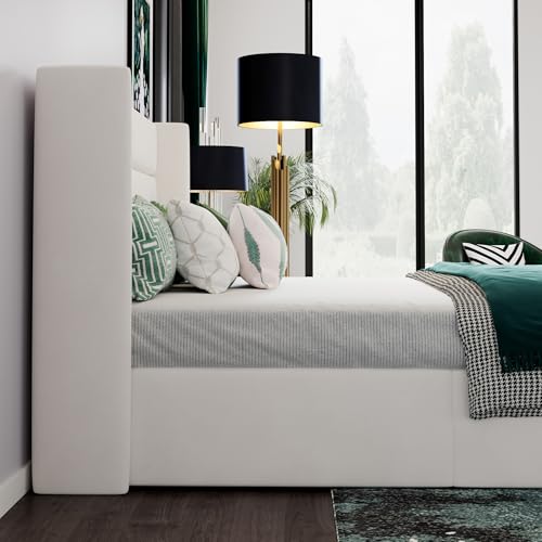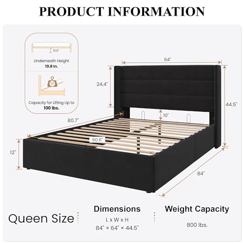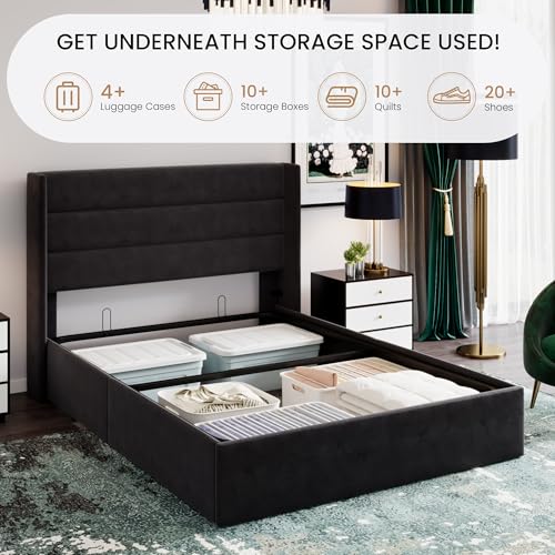 SHA CERLIN Queen Size Lift Up Storage Bed/Velvet Upholstered/Modern Wingback Headboard/Upholstered Platform Bed Frame/Hydraulic Storage/No Box Spring Needed/White