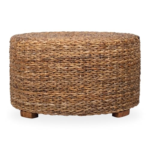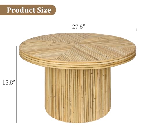 East at Main Abella Round Woven Rattan Coffee Table, Coastal Boho Coffee Table with Natural Finish, 28.5" W – Handcrafted Farmhouse Accent Table for Living Room or Small Spaces
