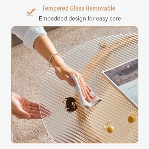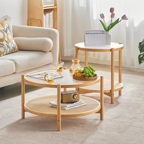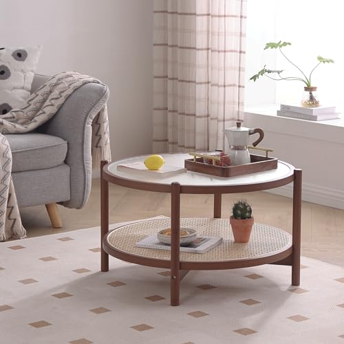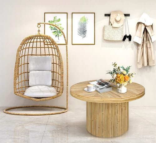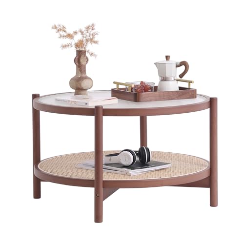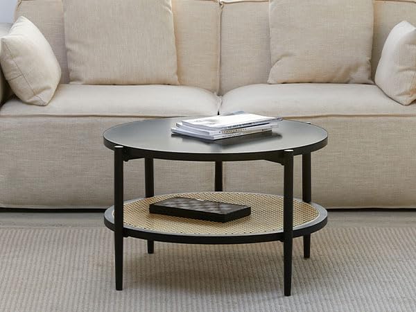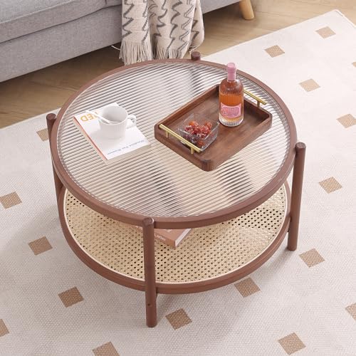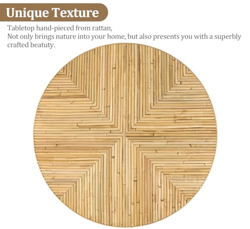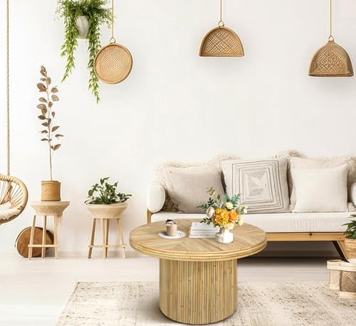Round Coffee Table, Mid Century Modern Small Rattan Coffee Table, Boho Circle Tea Table, Unique Fluted Coffee Tables, Rustic Center Table for Living Room