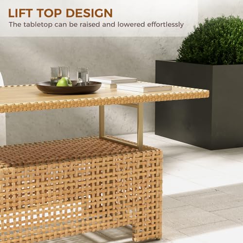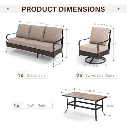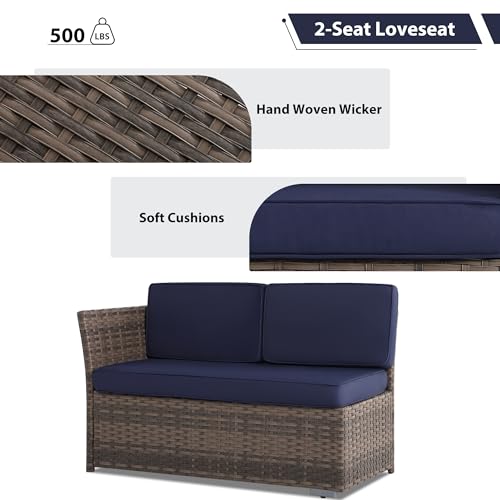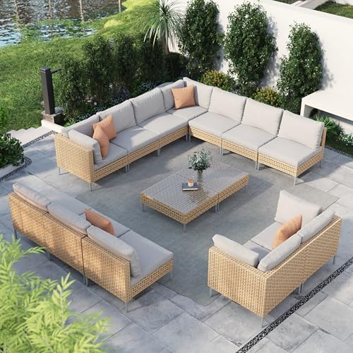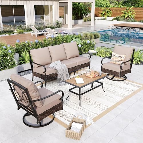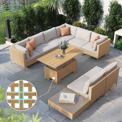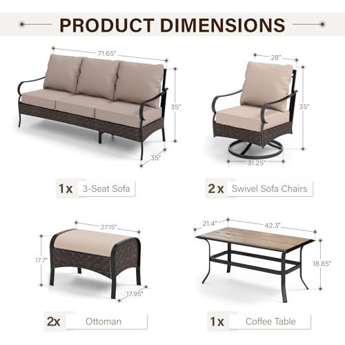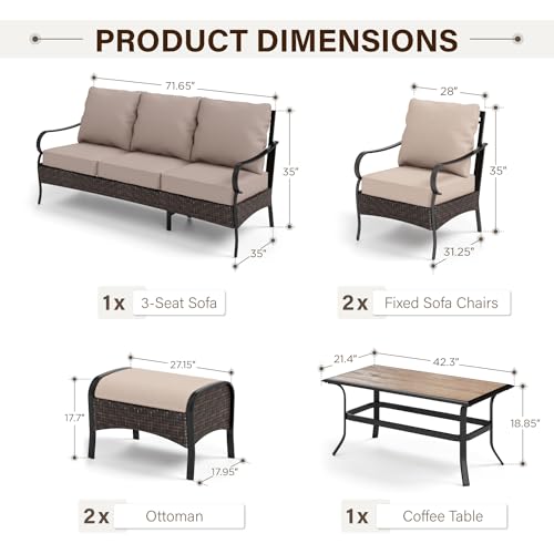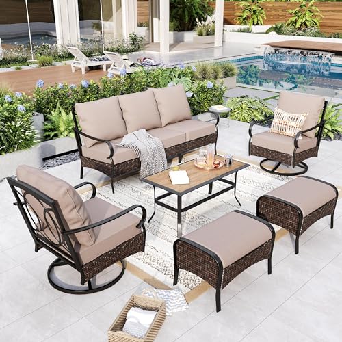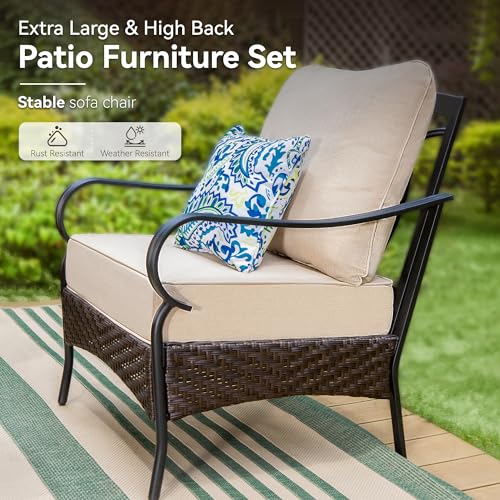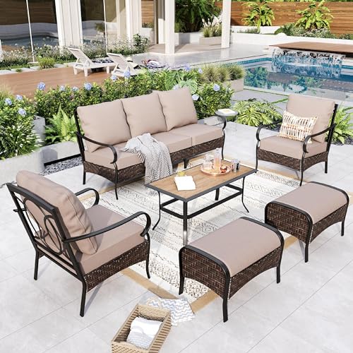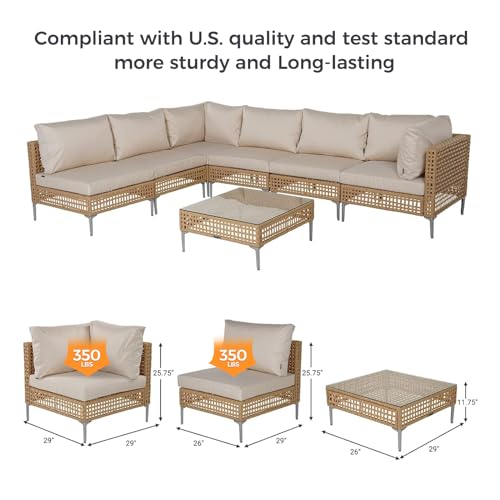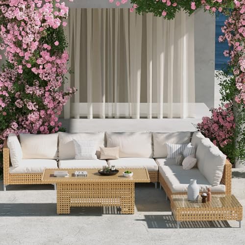 Grand patio 7-Piece Wicker Patio Furniture Set, Boho Outdoor Conversation Set Sectional Sofa with Water Resistant Thick Cushions and Coffee Table, Cream