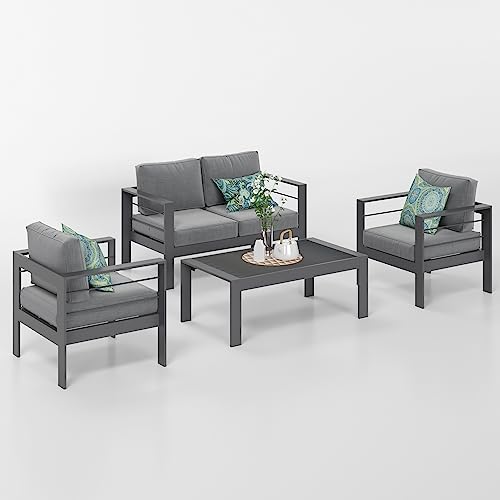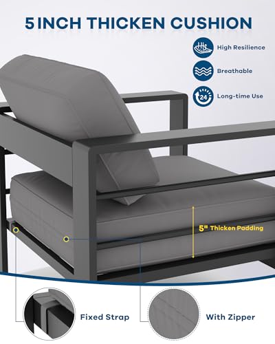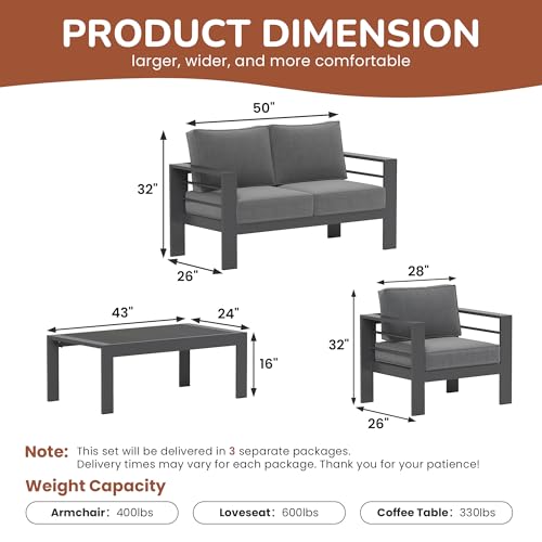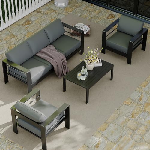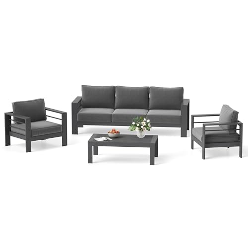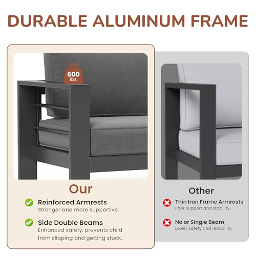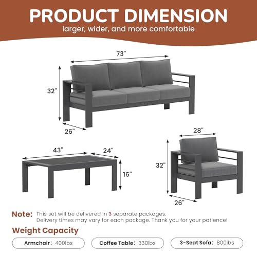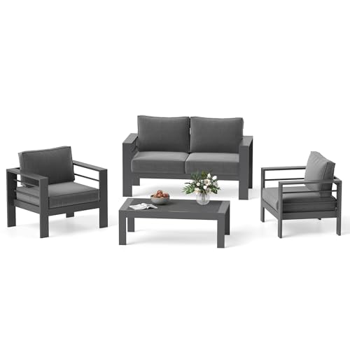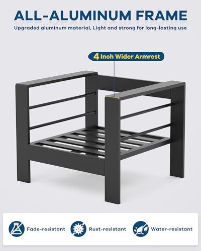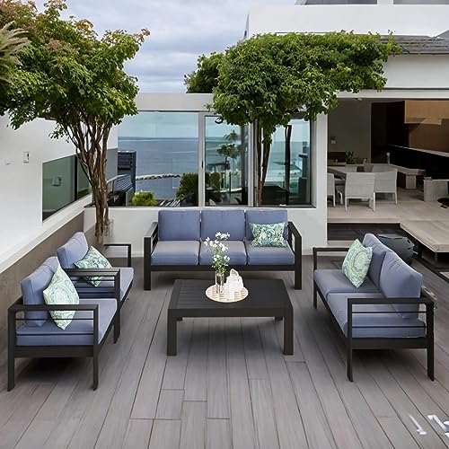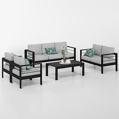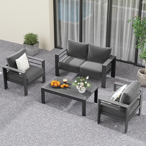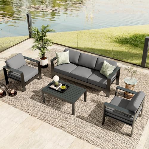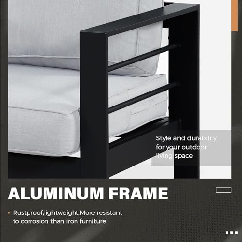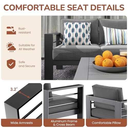 Solaste Aluminum Patio Furniture Set,7 Seats Modern Outdoor Conversation Set Metal Patio Furniture Set Sectional Sofa with Upgrade Cushion and Coffee Table,Dark Grey
