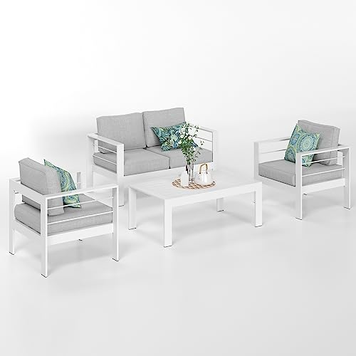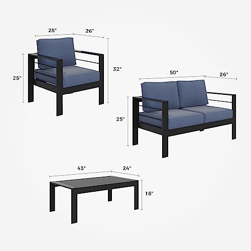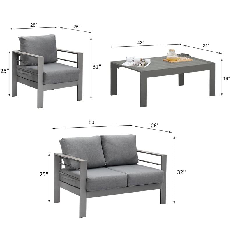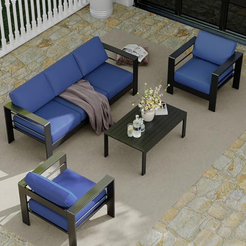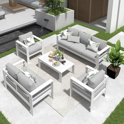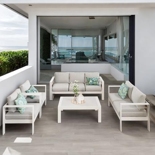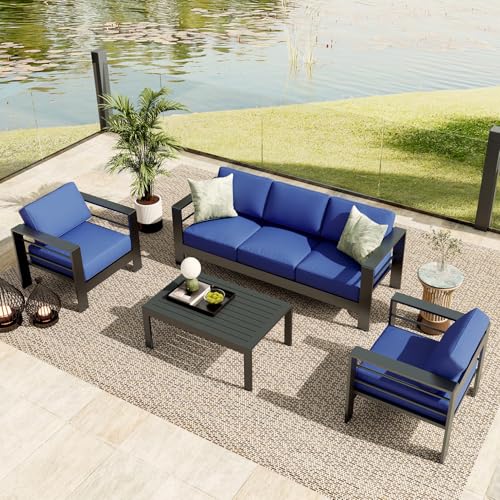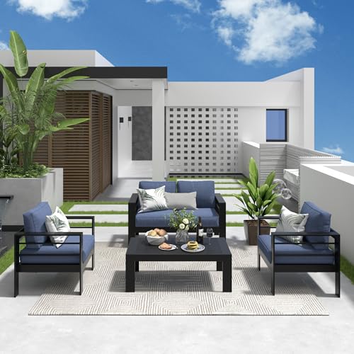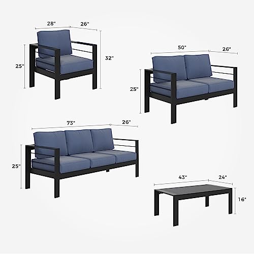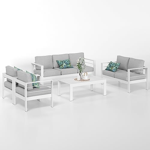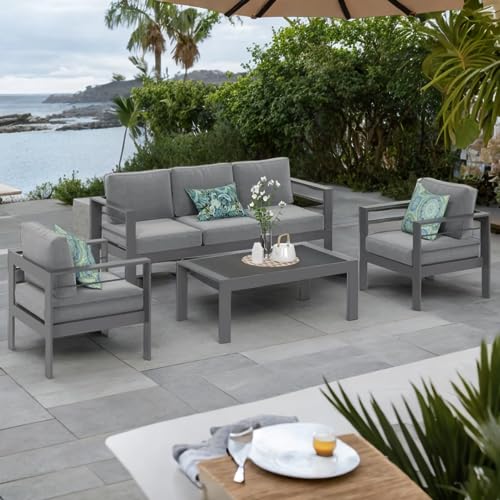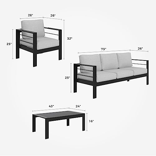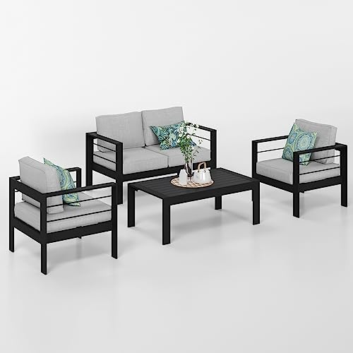 Solaste Aluminum Patio Furniture Set,7 Seats Modern Outdoor Conversation Set Metal Patio Furniture Set Sectional Sofa with Upgrade Cushion and Coffee Table,Dark Grey