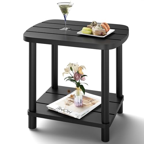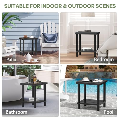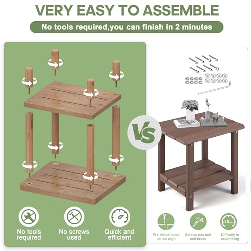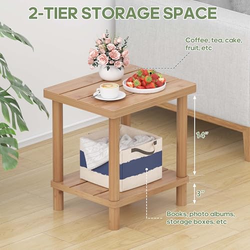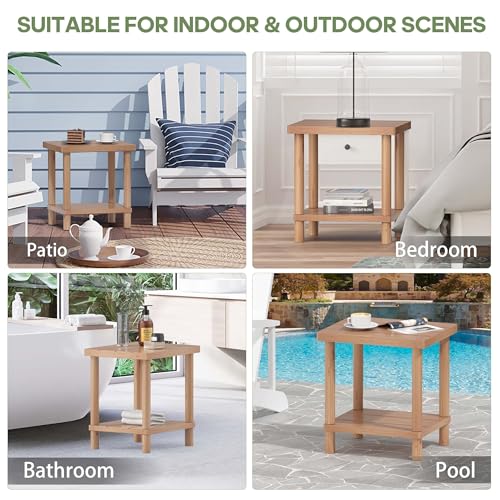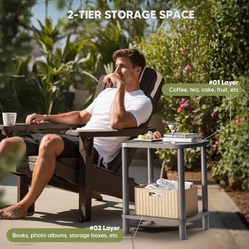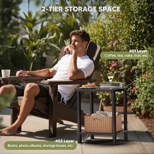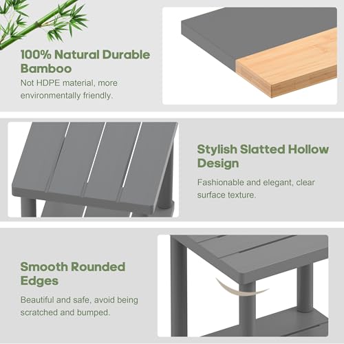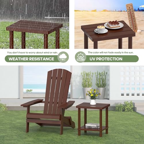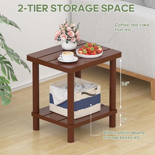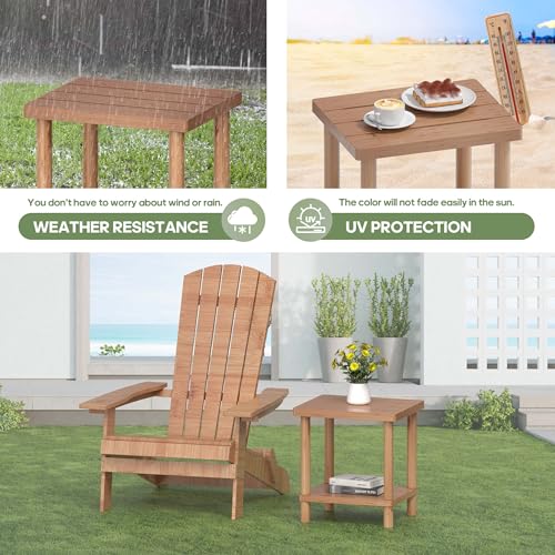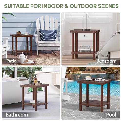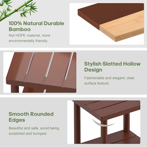 Outdoor Side Table, 2-Tier Small Outdoor Table for Patio, Adirondack Side Tables for Outside or Indoor, Bamboo End Table for Pool, Porch, Weather Resistant Easy Maintenance,Brown