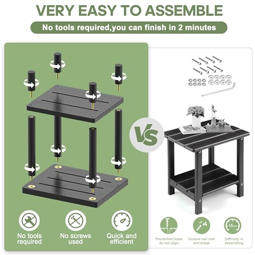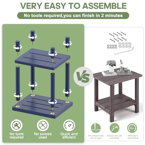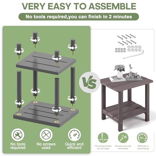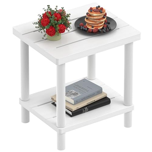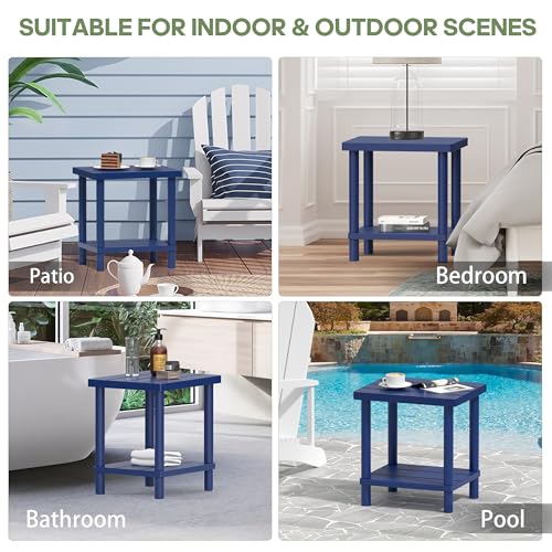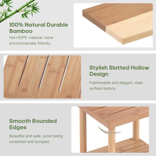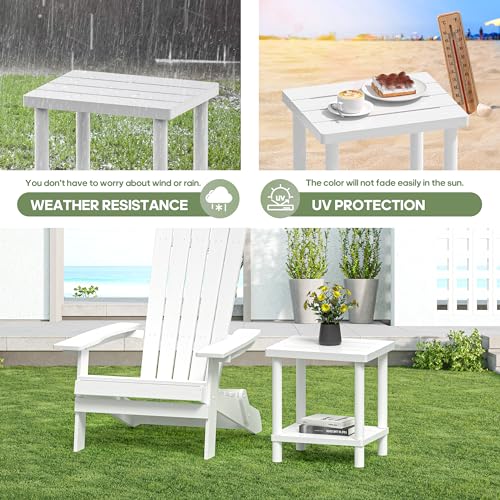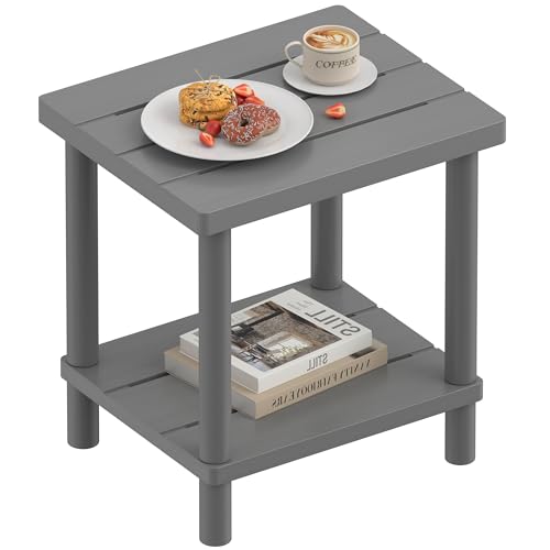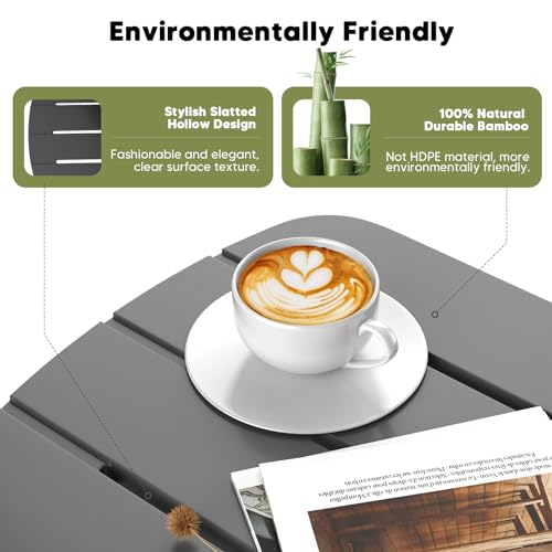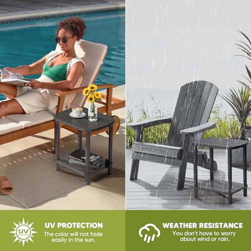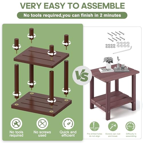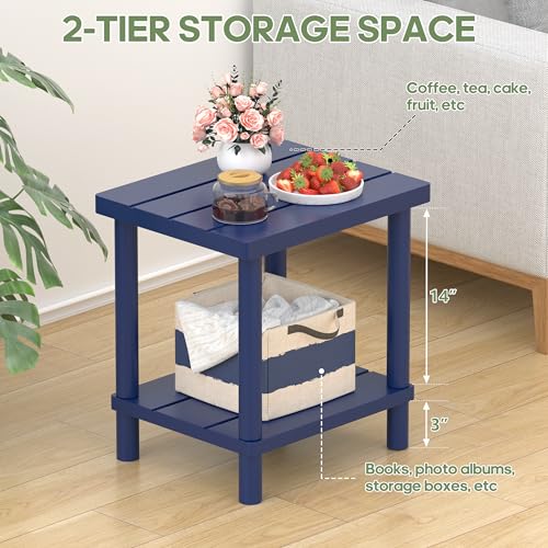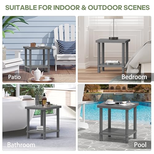 Outdoor Side Table, 2-Tier Small Outdoor Table for Patio, Adirondack Side Tables for Outside or Indoor, Bamboo End Table for Pool, Porch, Weather Resistant Easy Maintenance,Brown