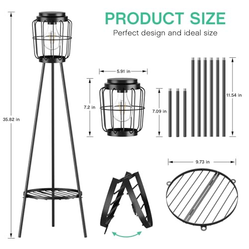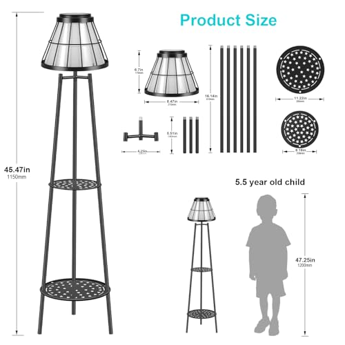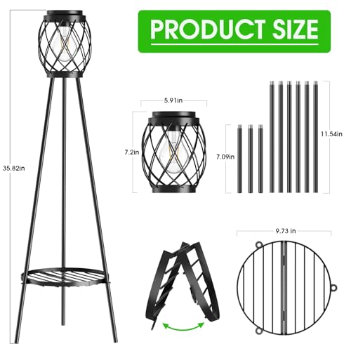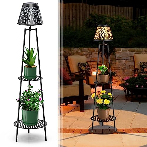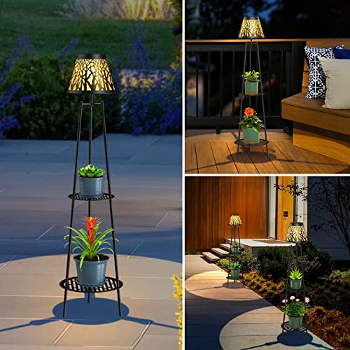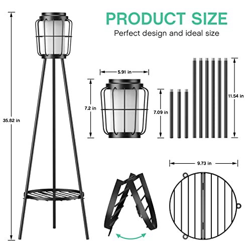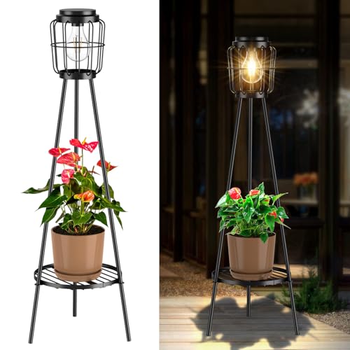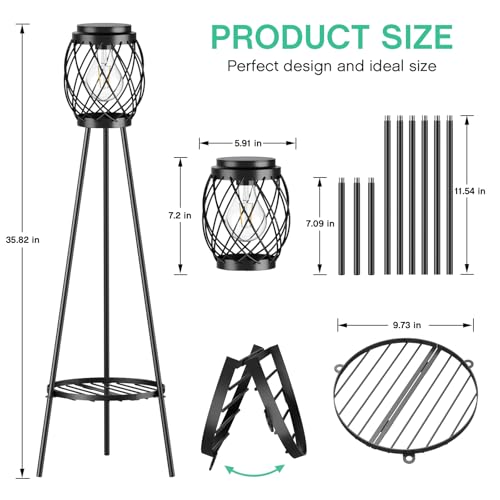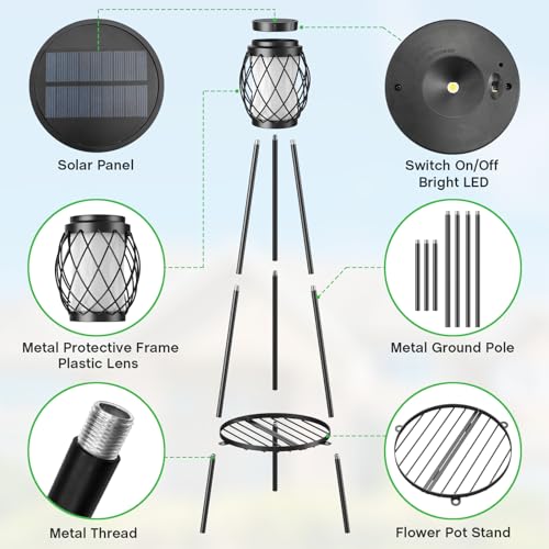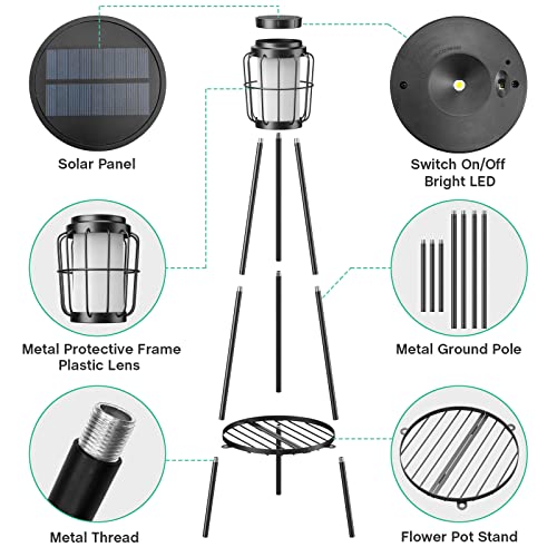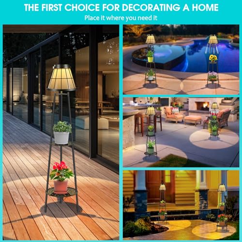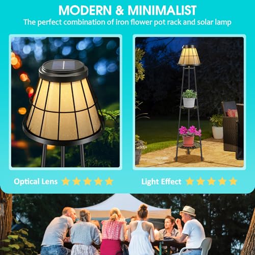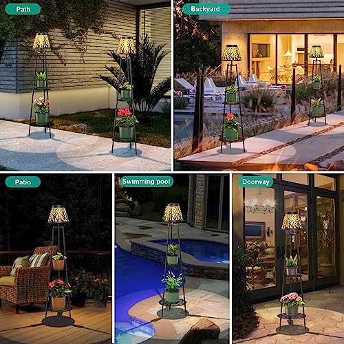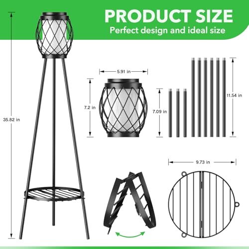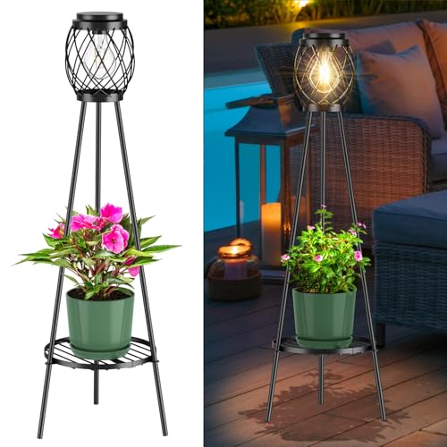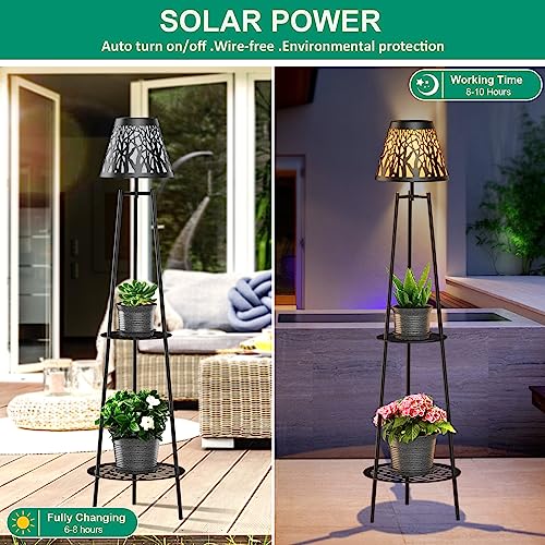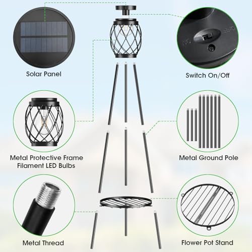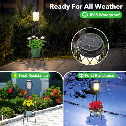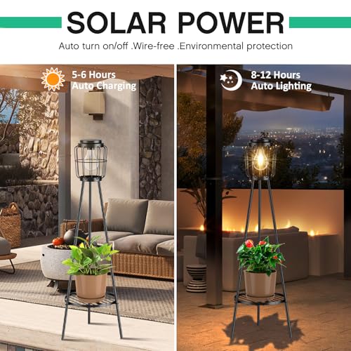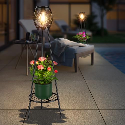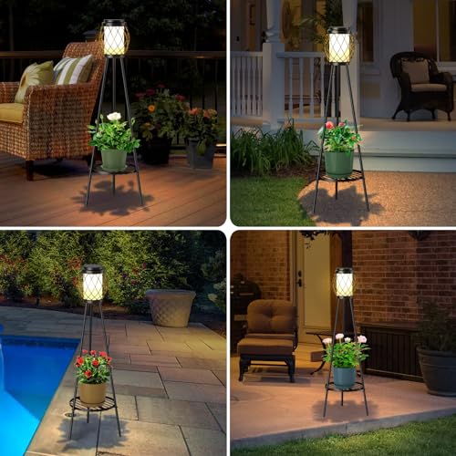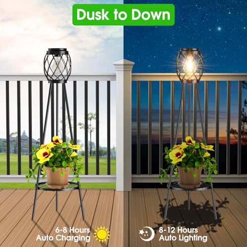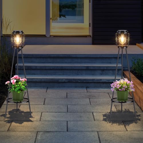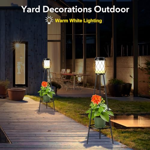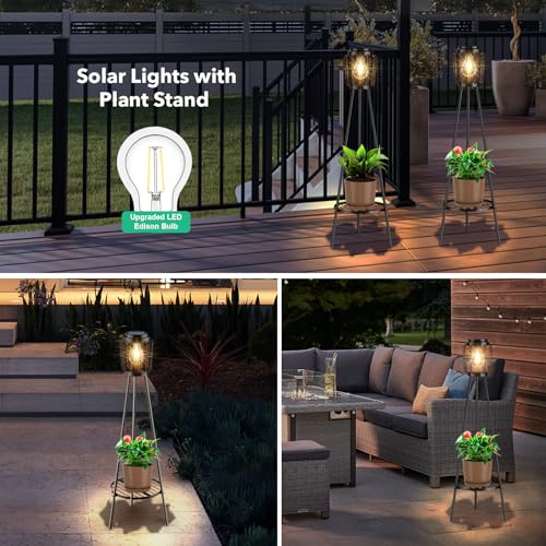 2 Pack Solar Lights Outdoor with Plant Stands - Solar Floor Lamp & Street Lights with Metal Tripod - Patio Decor for Garden, Yard, Pathway, Driveway, Porch