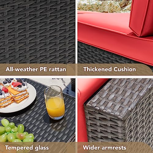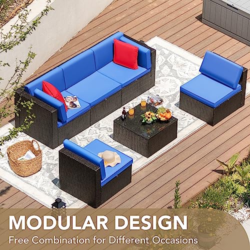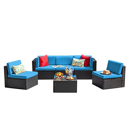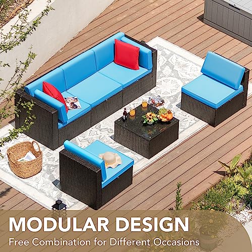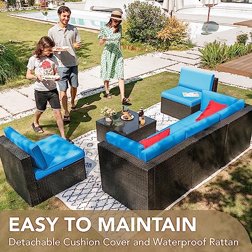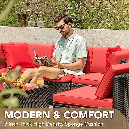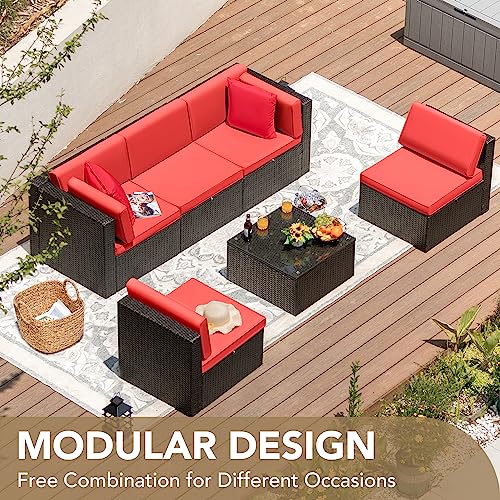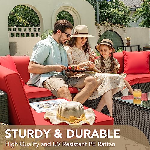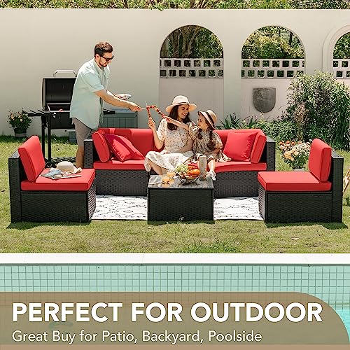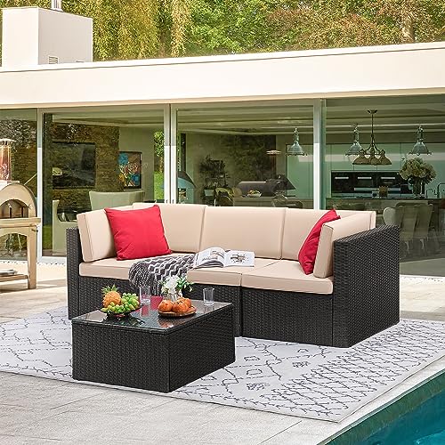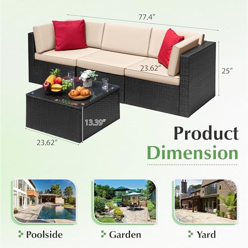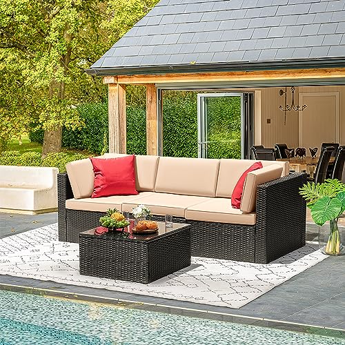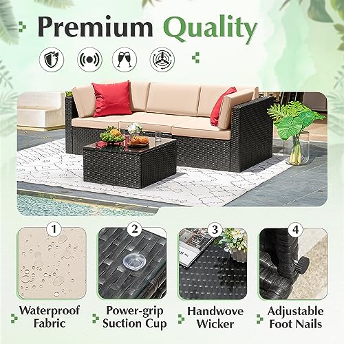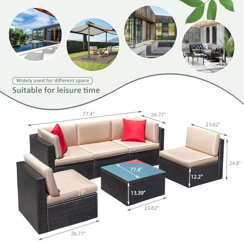 Devoko Patio Furniture Sets 6 Pieces Outdoor Sectional Rattan Sofa Manual Weaving Wicker Patio Conversation Set with Glass Table and Cushion (Beige)