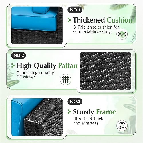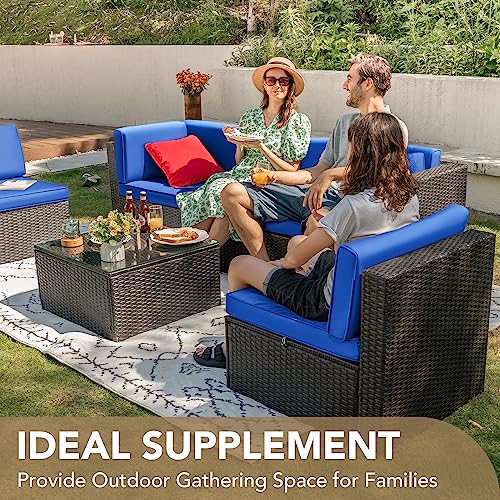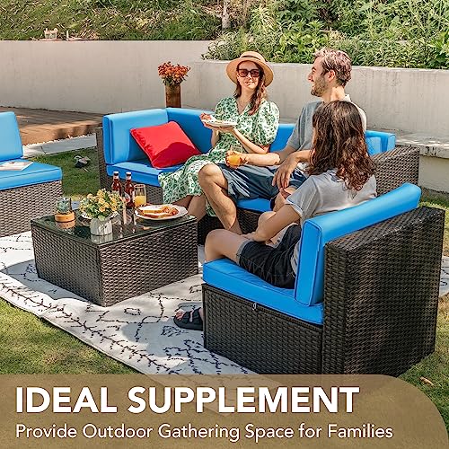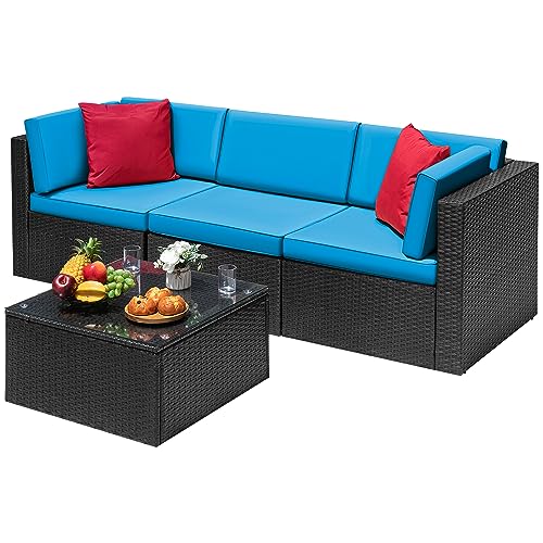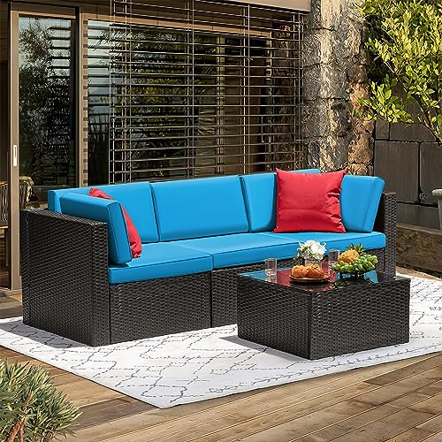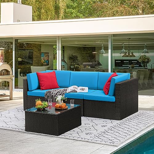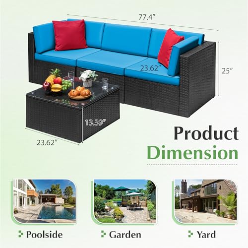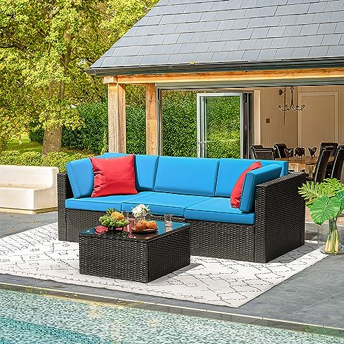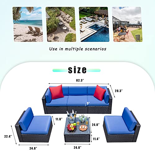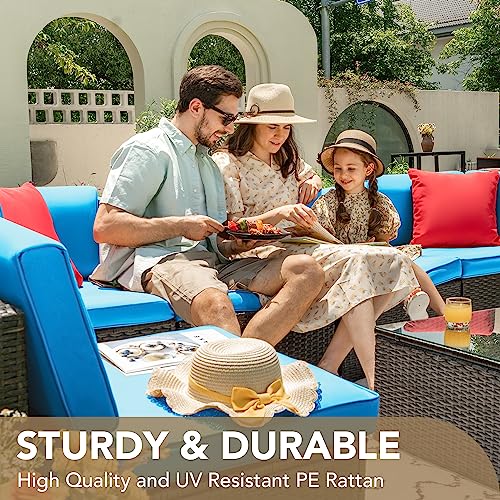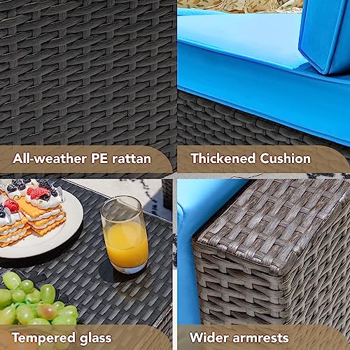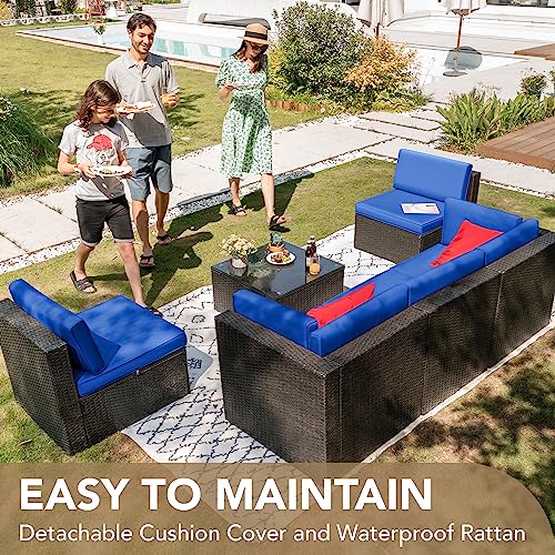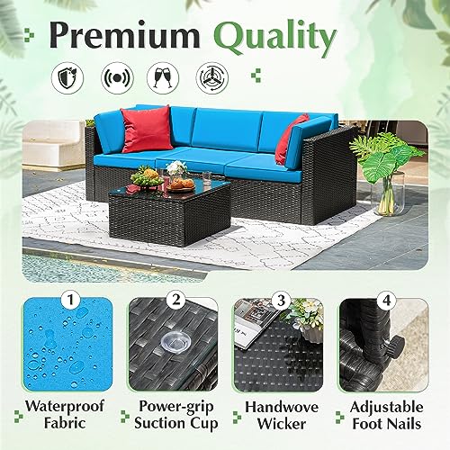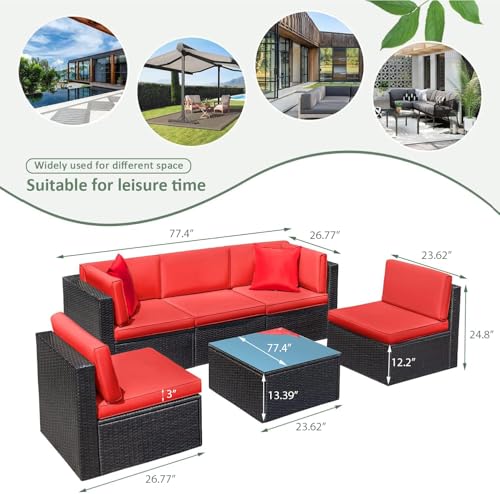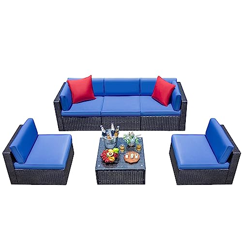 Devoko Patio Furniture Sets 6 Pieces Outdoor Sectional Rattan Sofa Manual Weaving Wicker Patio Conversation Set with Glass Table and Cushion (Beige)