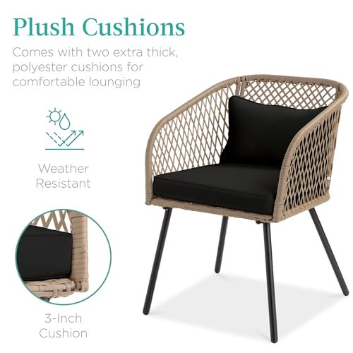 Best Choice Products 3-Piece Outdoor Wicker Bistro Set, Patio Dining Conversation Furniture for Backyard, Balcony, Porch w/Diamond Weave Design, Tempered Glass Side Table, 2 Chairs - Black
