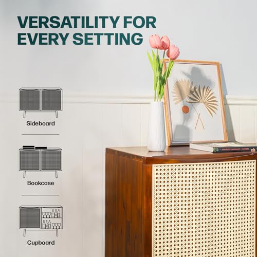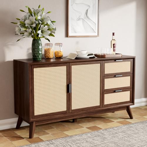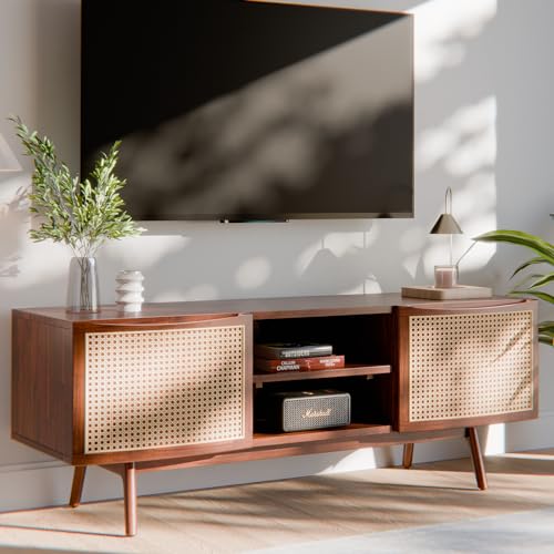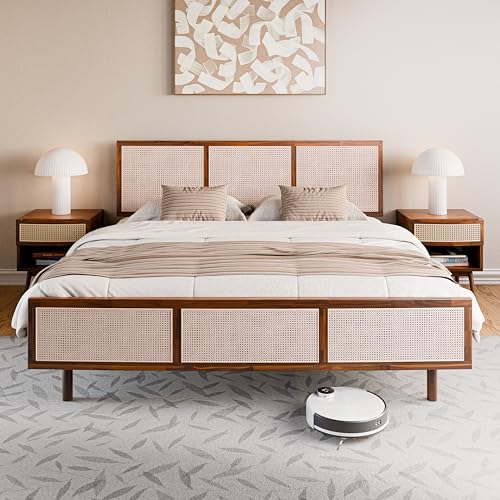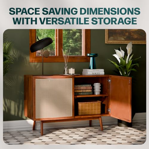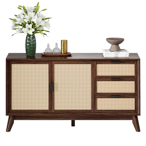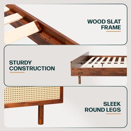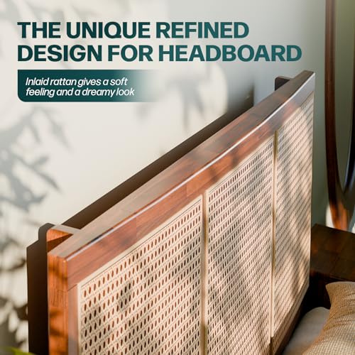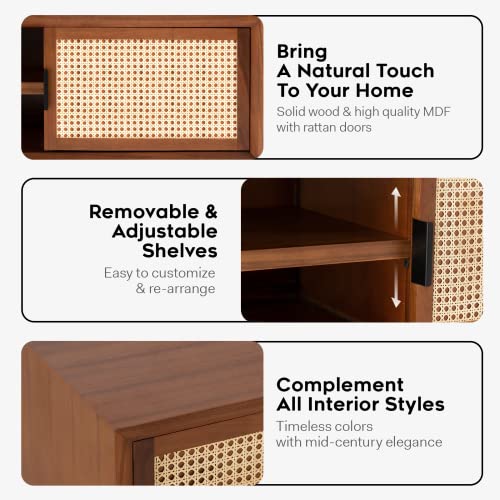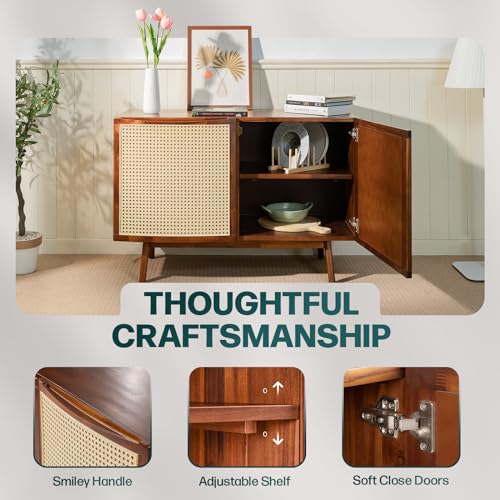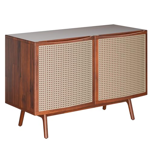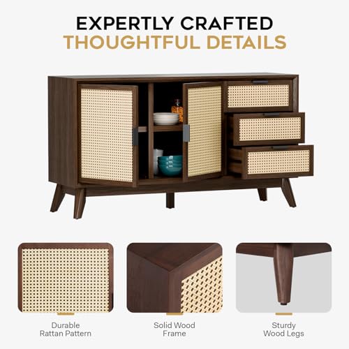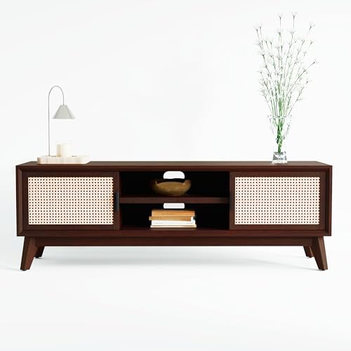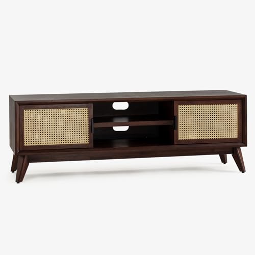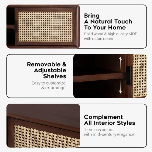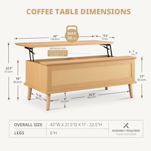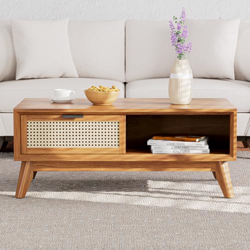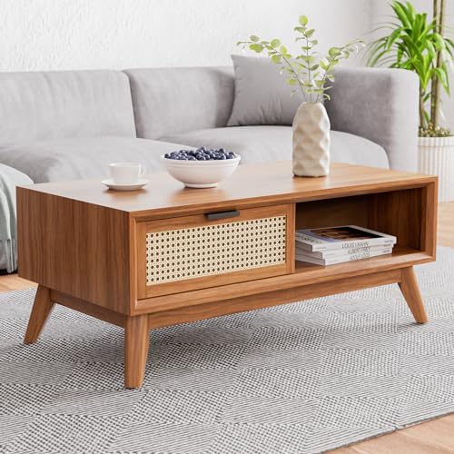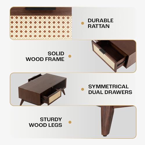 Bme Solid Wood Jasper Coffee Table with Storage, Accent Rattan Design, Good Choice for Living Room, Dark Chocolate