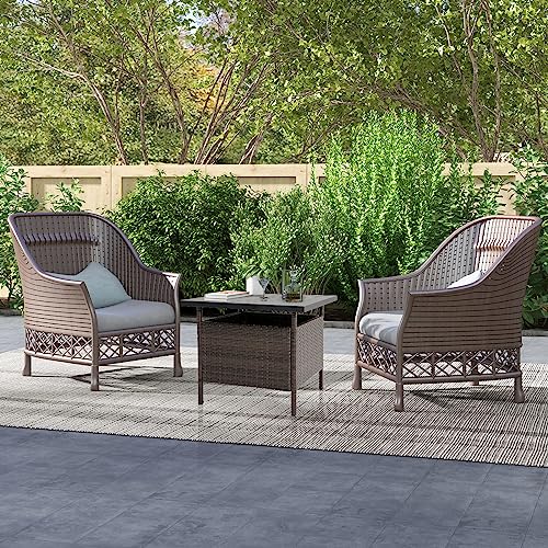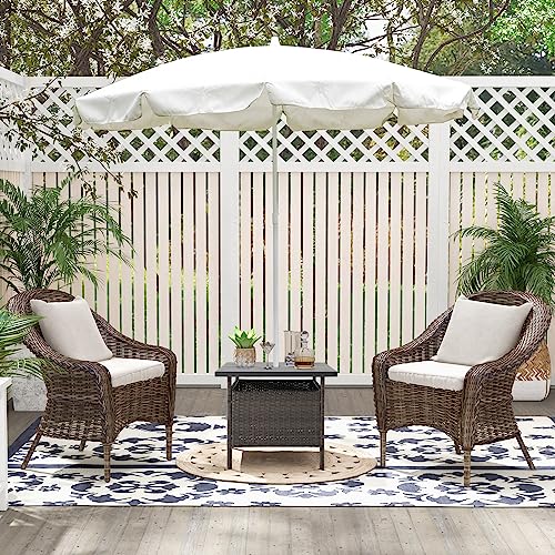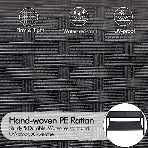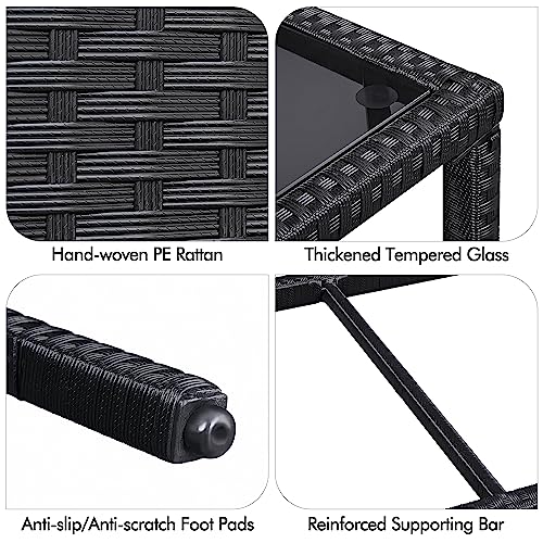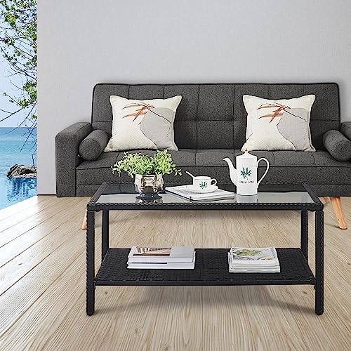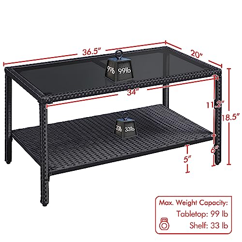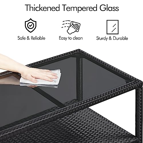 Yaheetech Outdoor Wicker Coffee Side Table, All-Weather Rattan Patio Storage Furniture with Tempered Glass Top for Garden, Black