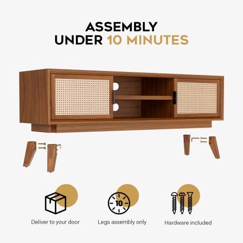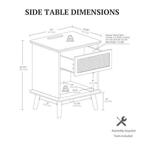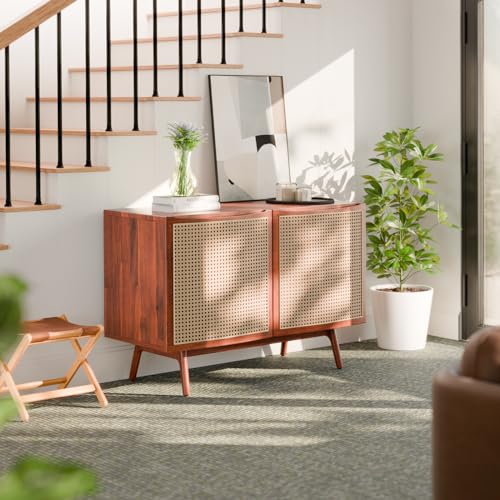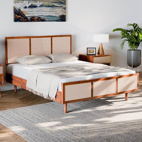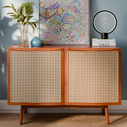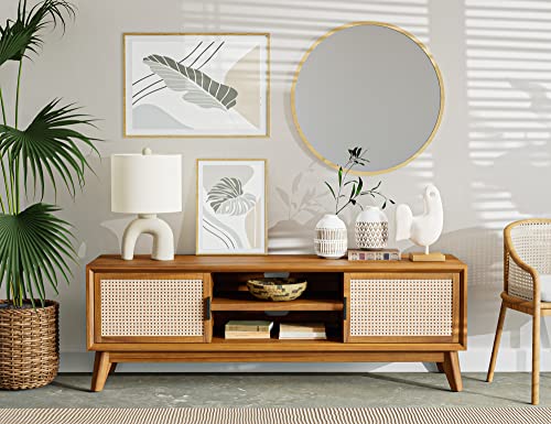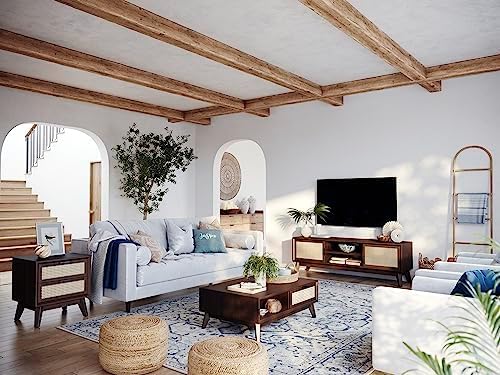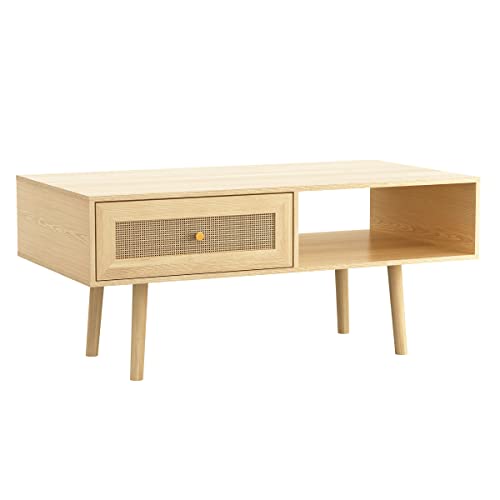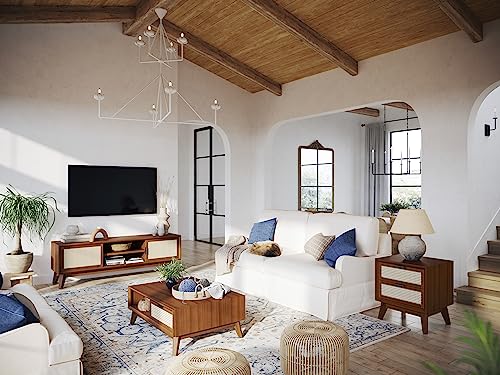 Atlantic Loft & Luv Remy Boho Mid-Century Natural Storage Drawer and Shelf, Finish Rattan Coffee Table