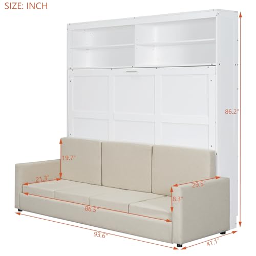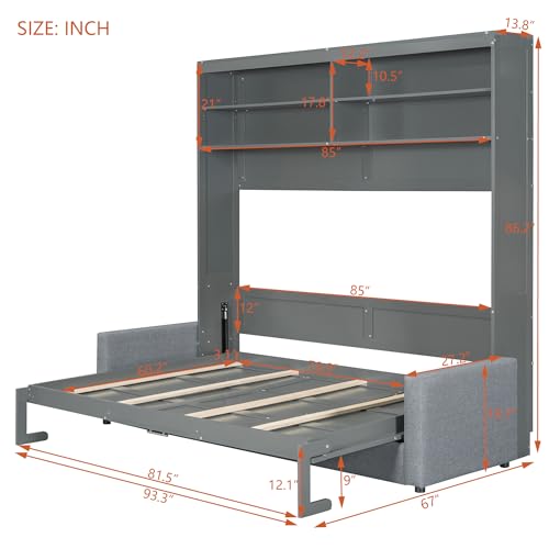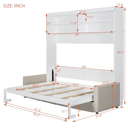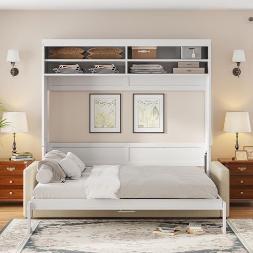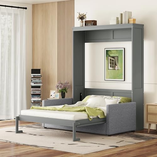 SOFTSEA Twin Murphy Bed Wood Wall Bed Can be Folded into Cabinet