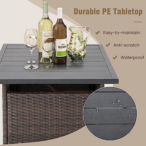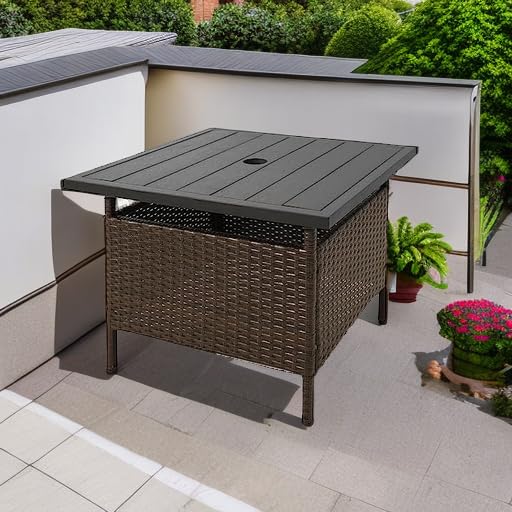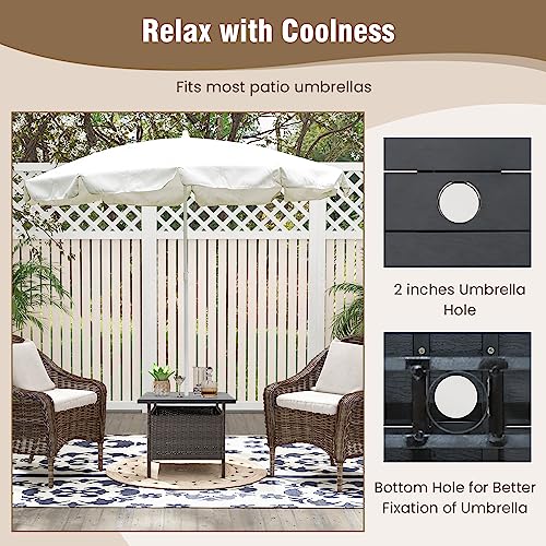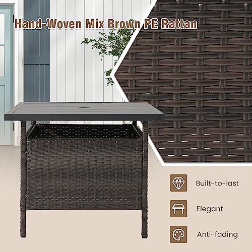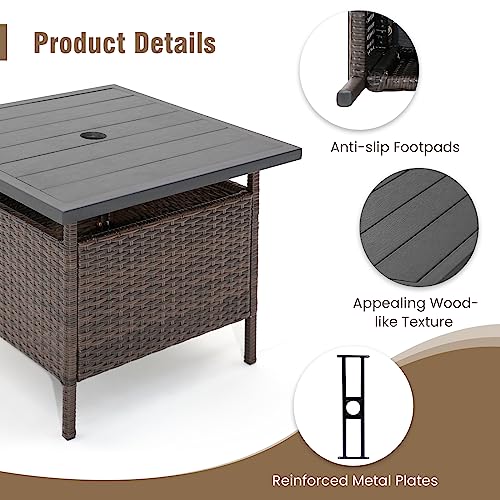 Tangkula Outdoor Wicker Table, Rattan Coffee Table with Umbrella Insert Hole, HDPE Tabletop & Sturdy Metal Frame, Patio Umbrella Side Table Stand for Backyard, Garden, Poolside