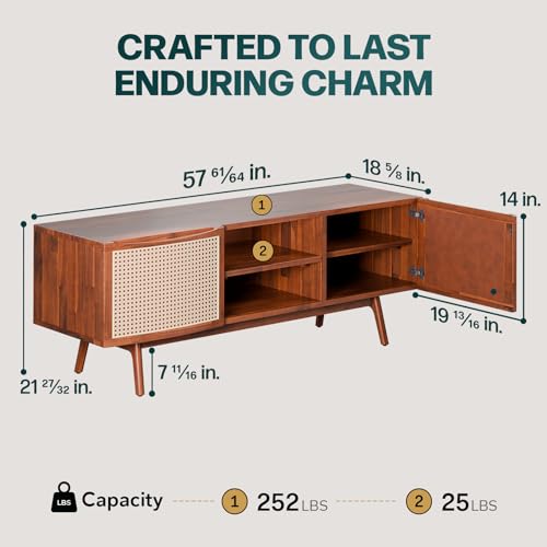 Bme Nancy Solid Acacia Wood Coffee Table for Living Room, Spacious Oval-Shaped 237 Lbs Top Capacity, Rattan Shelf Below, Mid Century, Rustic and Modern Style Living Room Furniture, Dark Chocolate