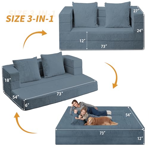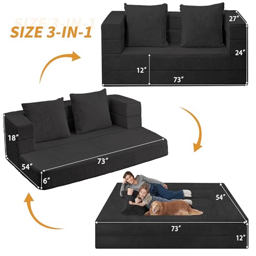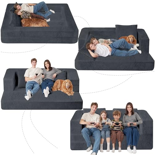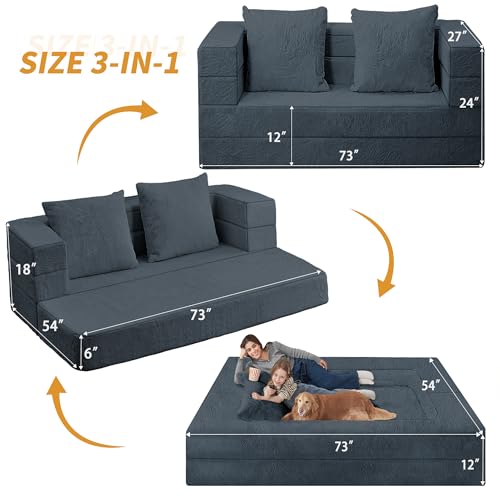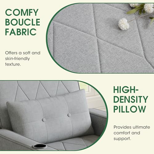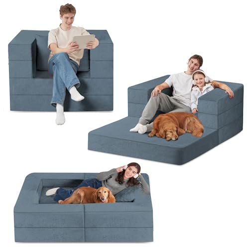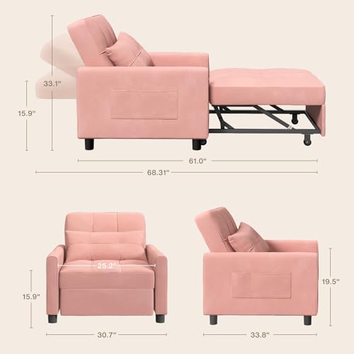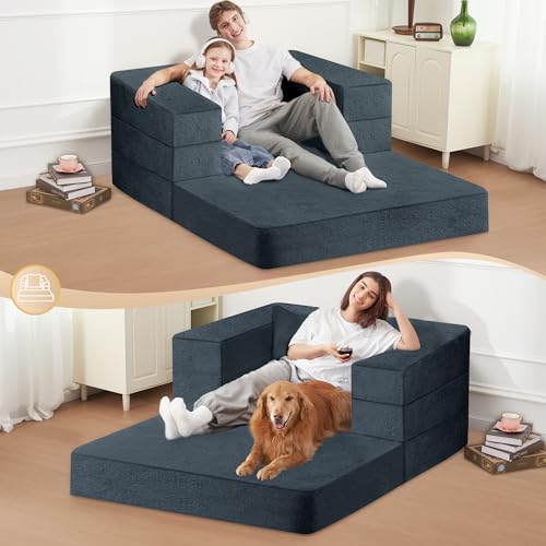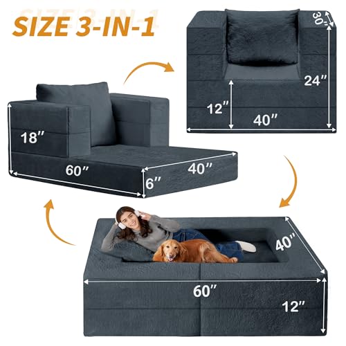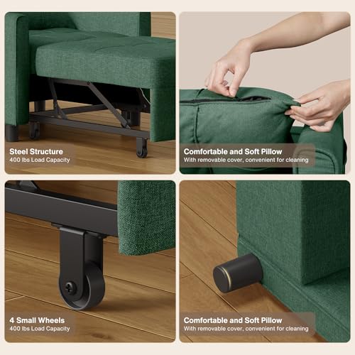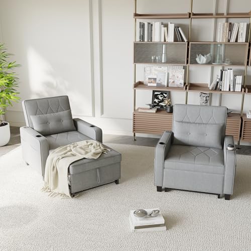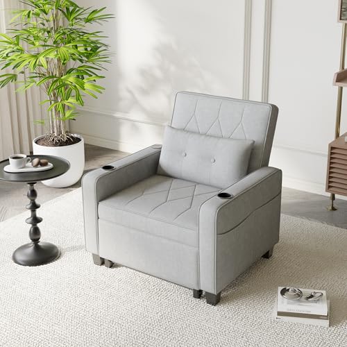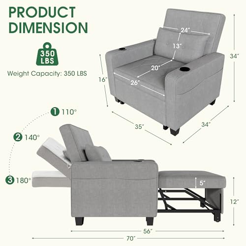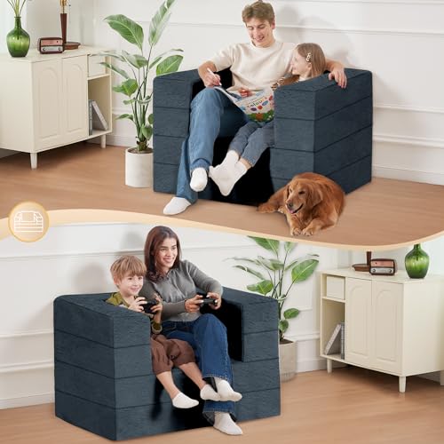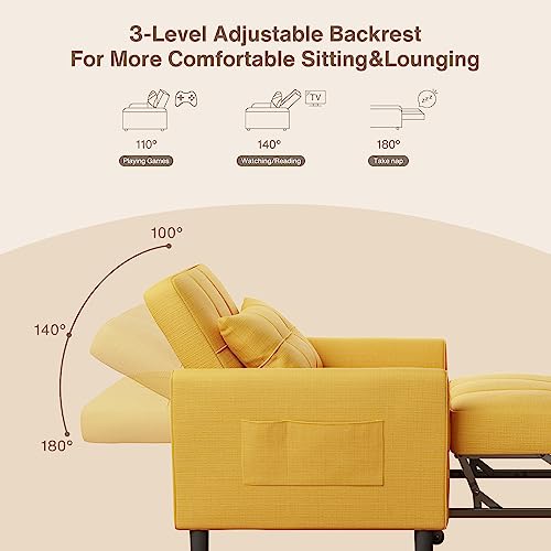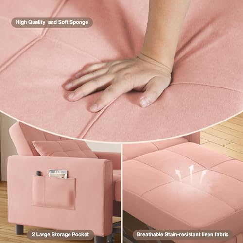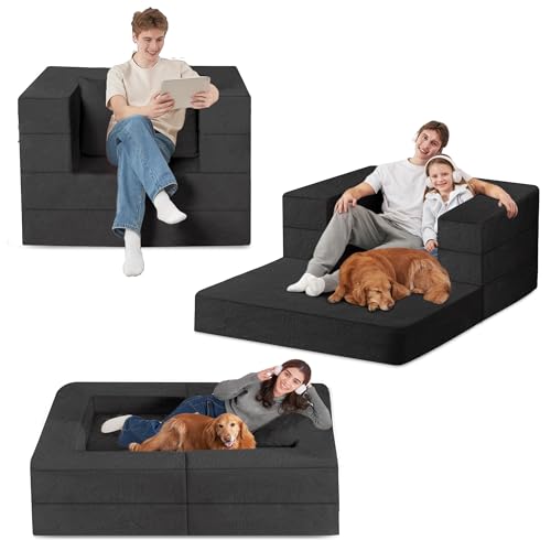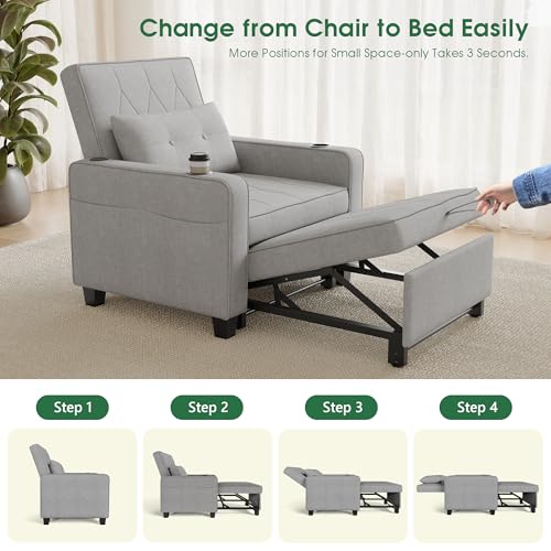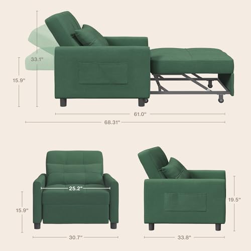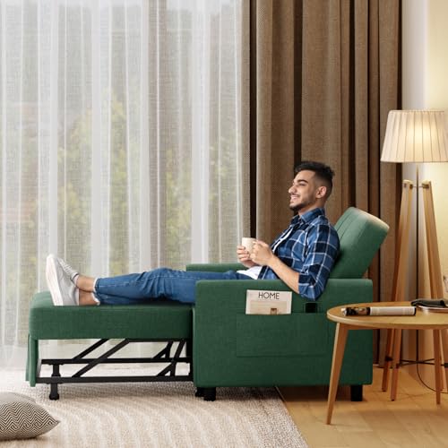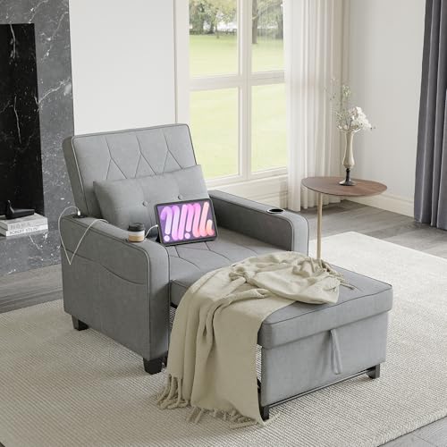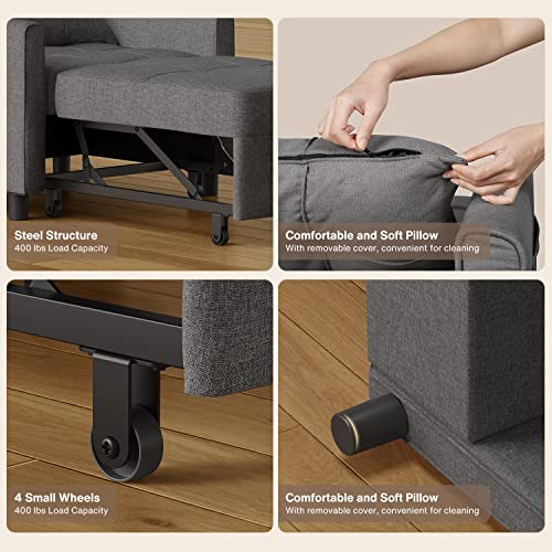 Noelse Convertible Futon Sofa Bed, 3-in-1 Multi-Functional Sleeper Chair Bed, Adjustable Backrest Recliner with Modern Linen Fabric for Living Room Bedroom Apartment Small Space, Dark Grey