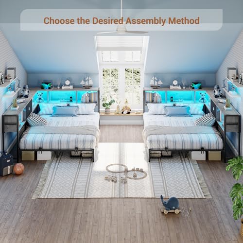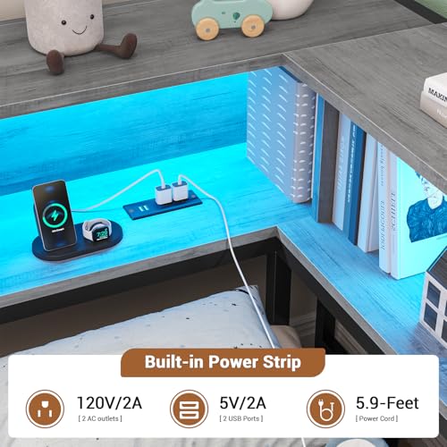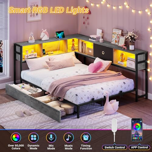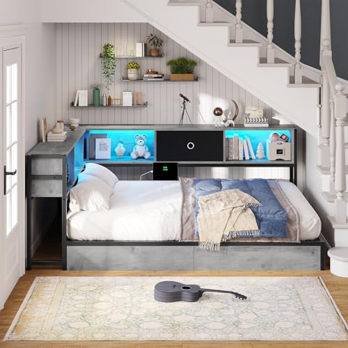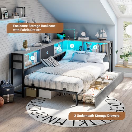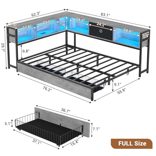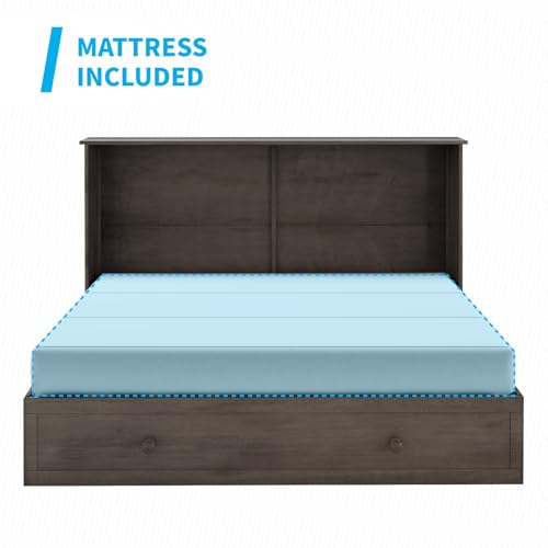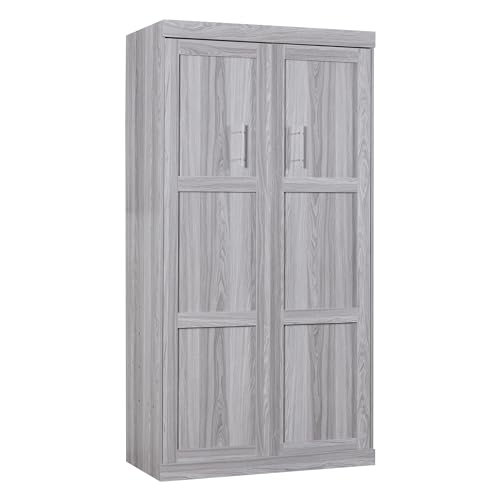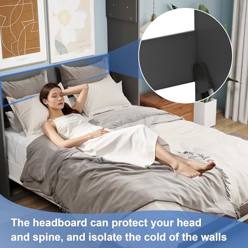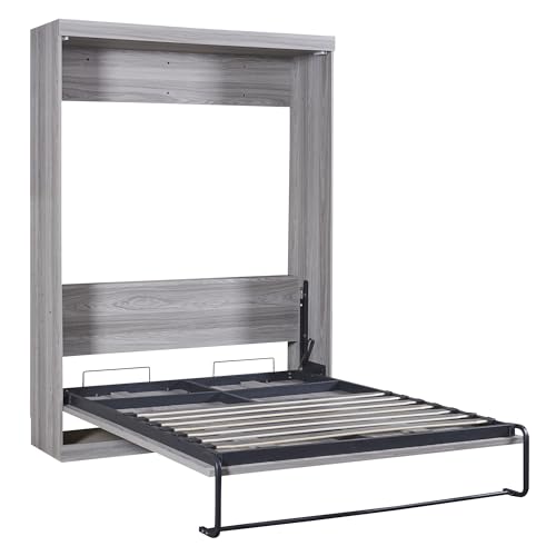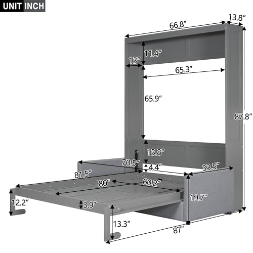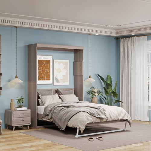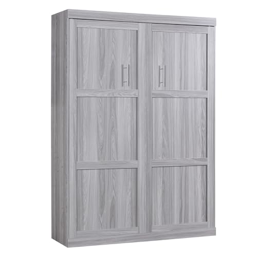 Full Size Murphy Bed with 2 Convertible Side Cabinet Storage Shelf, Foldable Wallbed Bedframe, Wall Bed Hidden Murphy Cabinet Bed Space Saving Bed Frame for Bedroom, Small Space, Grey