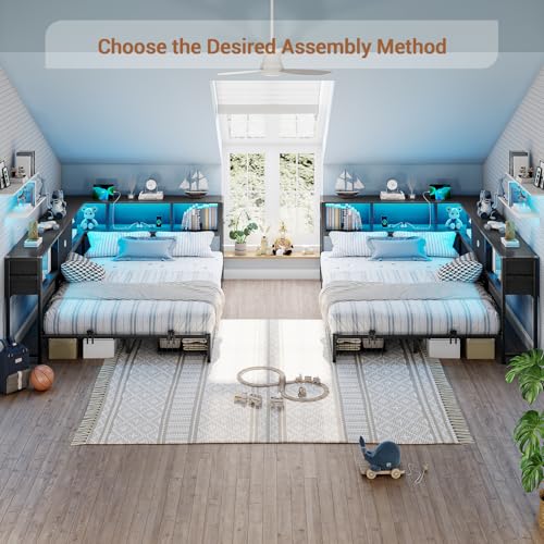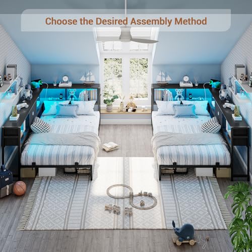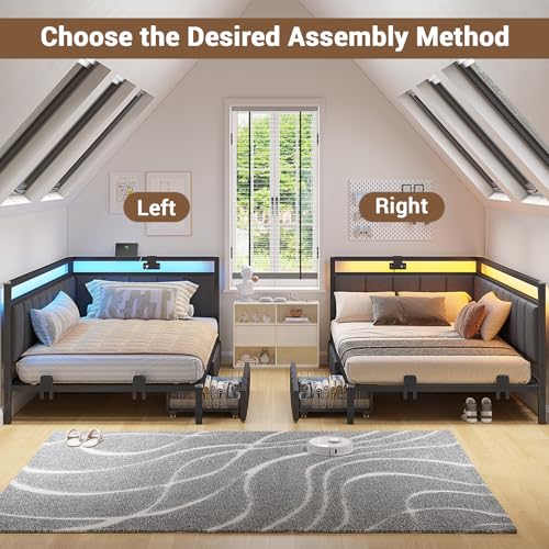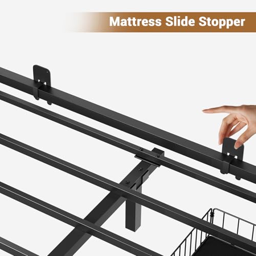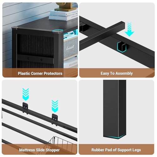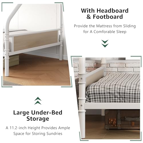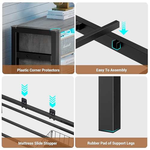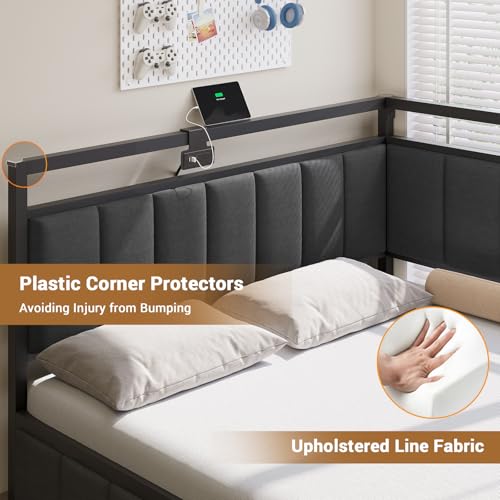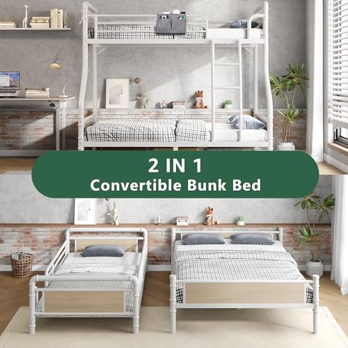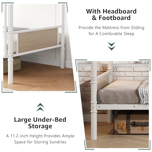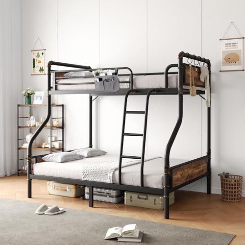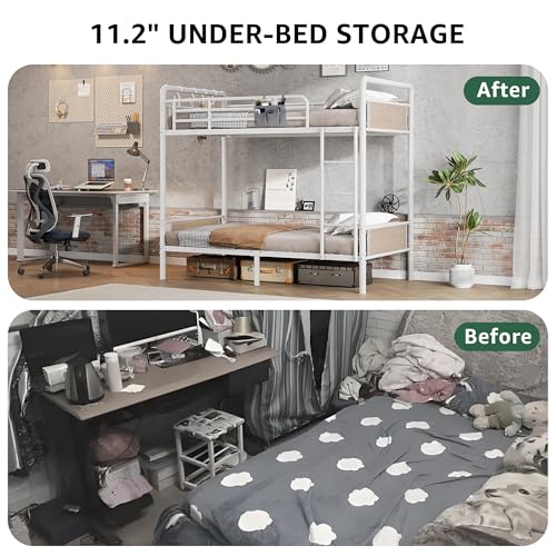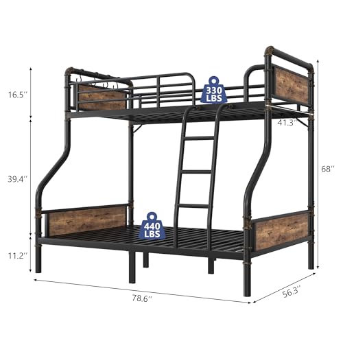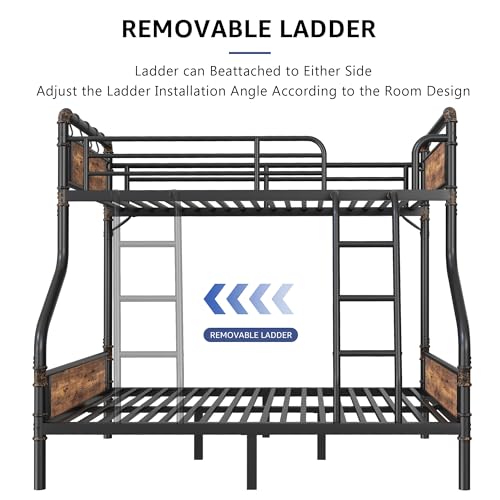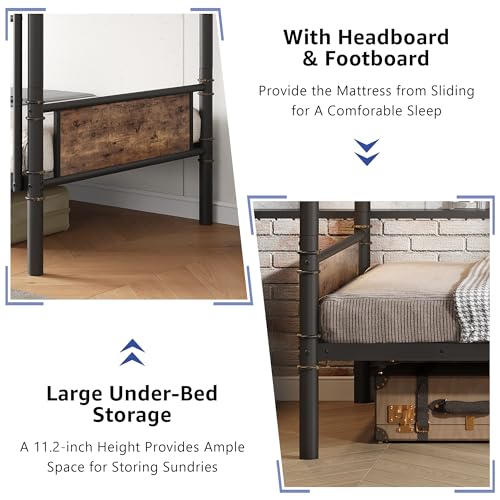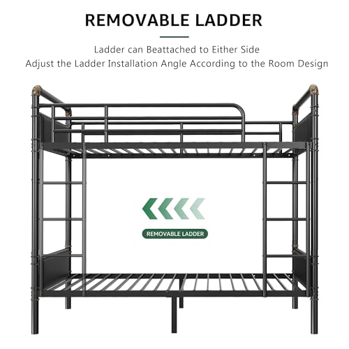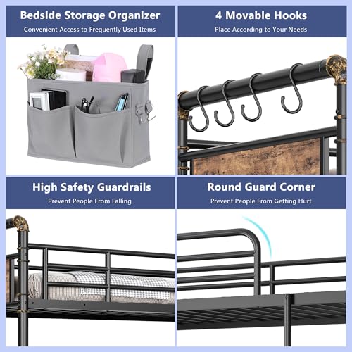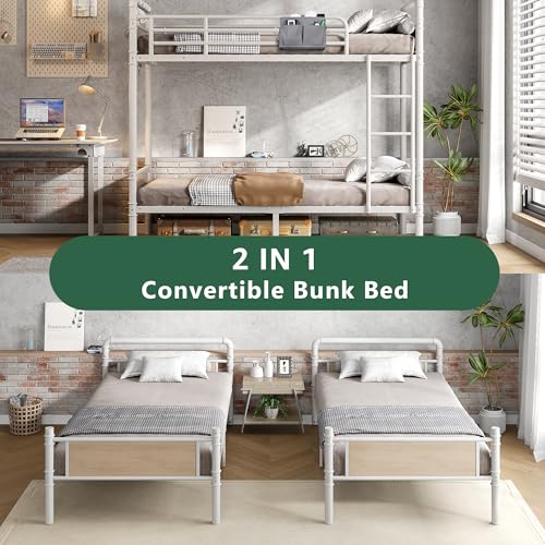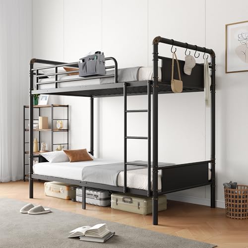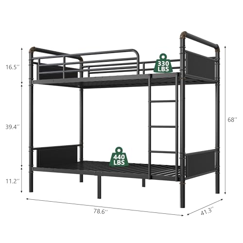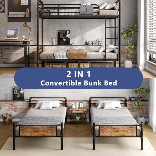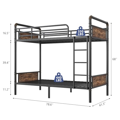 Metal Bunk Bed Twin Over Twin, Industrial Bunkbeds Heavy Duty Bed with Safety Guard Rails and Space-Saving Design, Steel Bed for School, Bedroom (Vintage Brown)