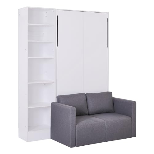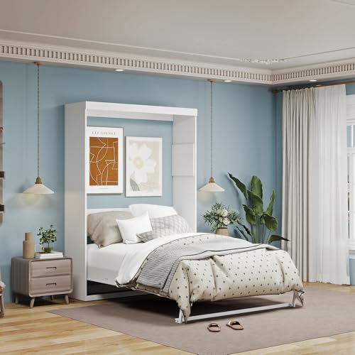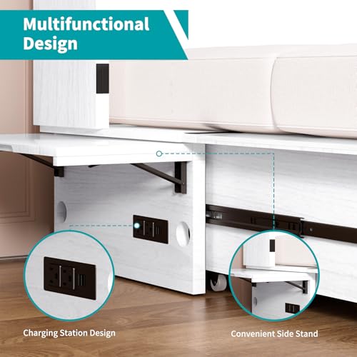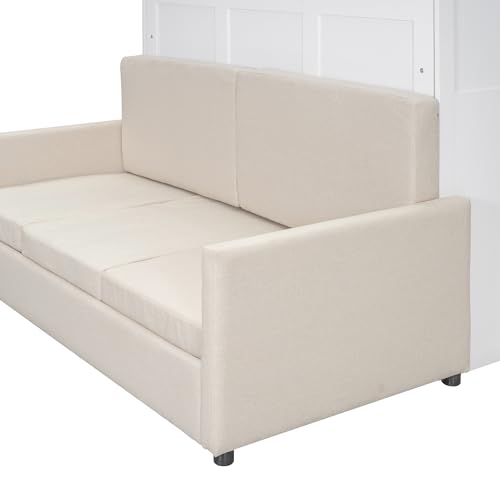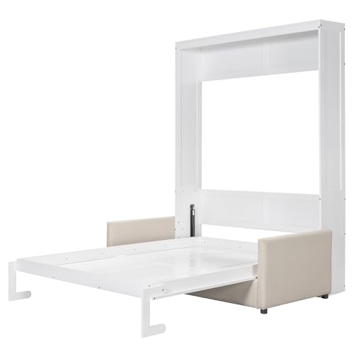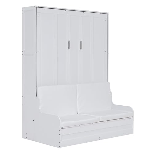 Ball & Cast Murphy Bed Wall Bed Queen Size with Cushion,Sofa Platform Bedfram Chest can be Folded,Wood Folding Hideaway w/Slat Support,Space-Saving Furniture for Guest Room,Study,Office,White