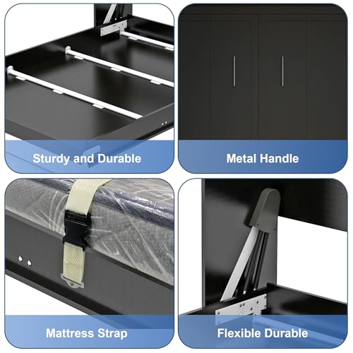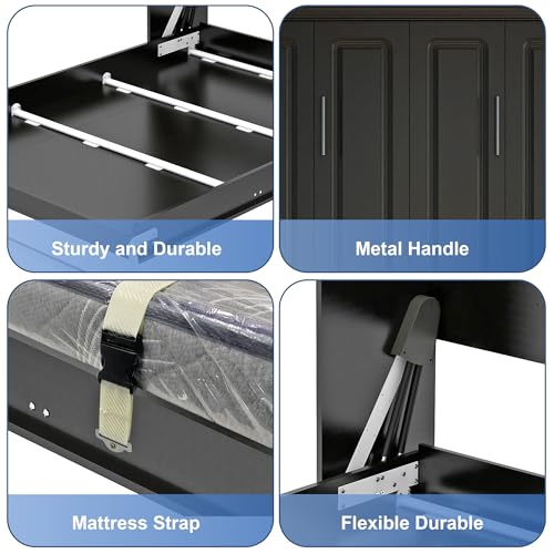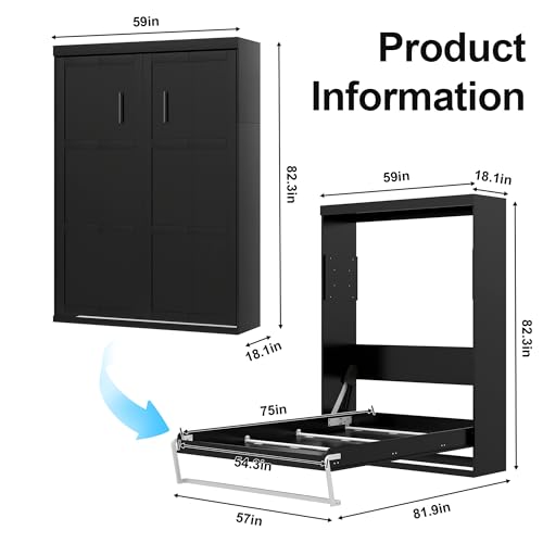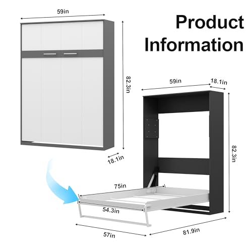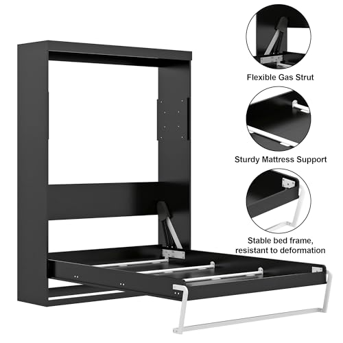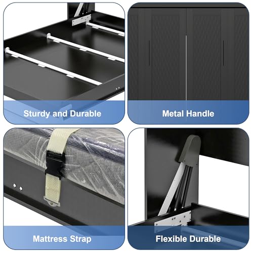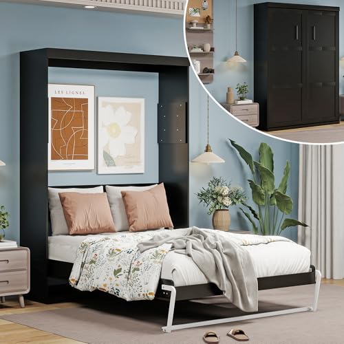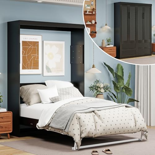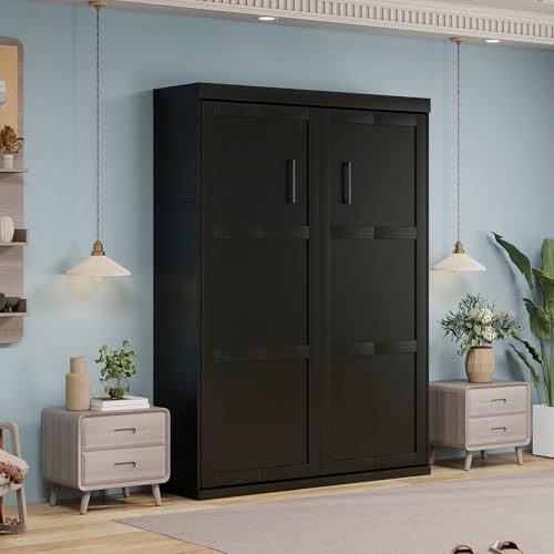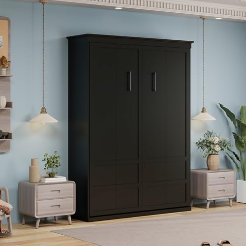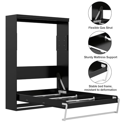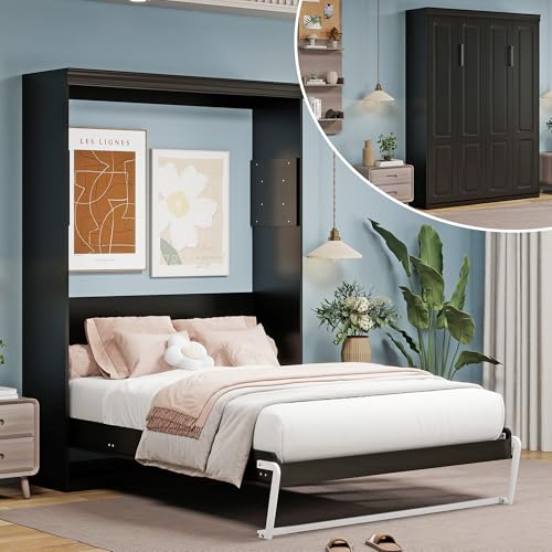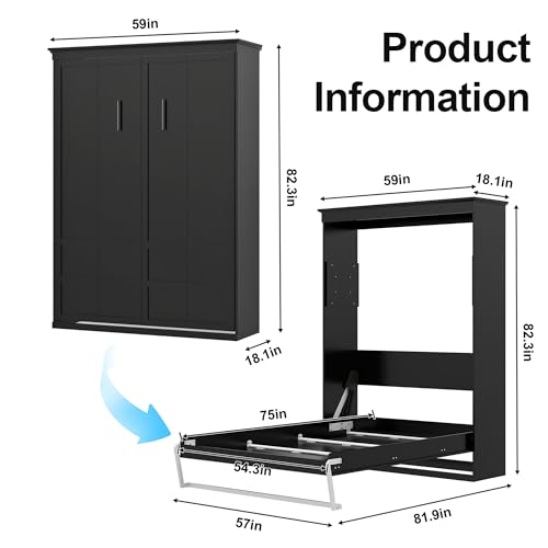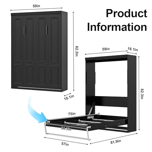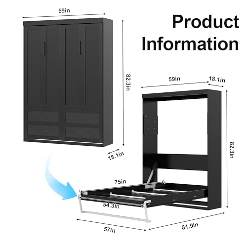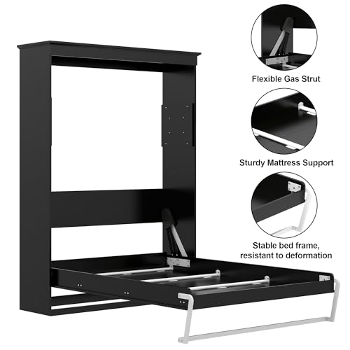 Black Wood Full Size Murphy Bed, Murphy Bed Full Space-Saving Wall Beds, 59'' Sleeping Arrangement for Multipurpose Area/Bedroom/Guest Room/Living Room, Pull Down Bed from Wall