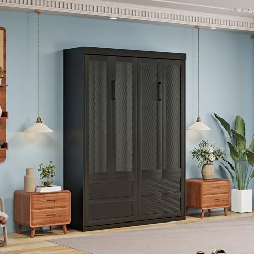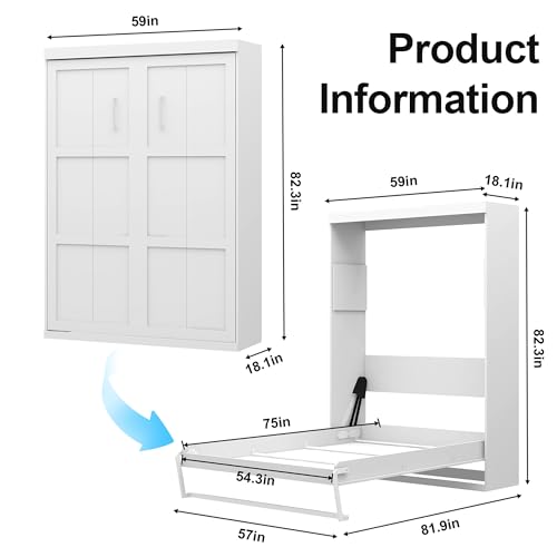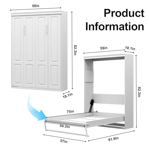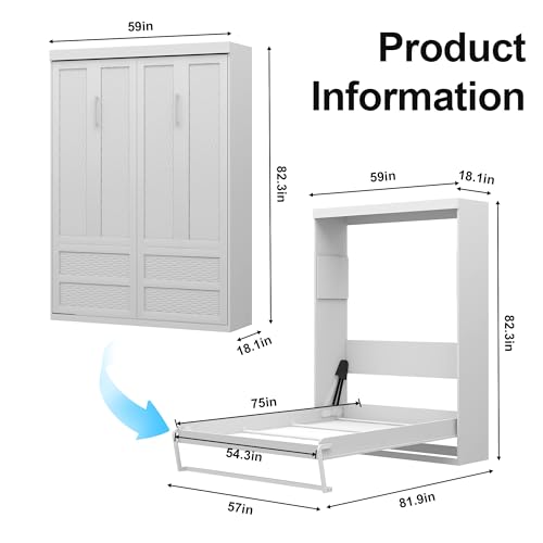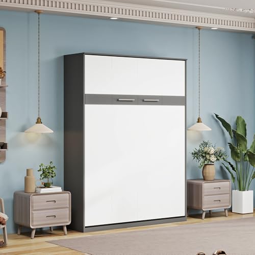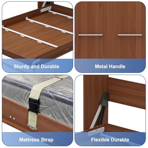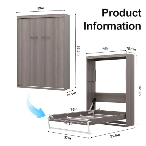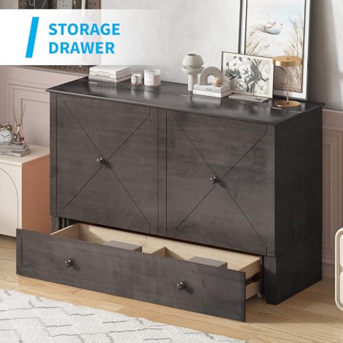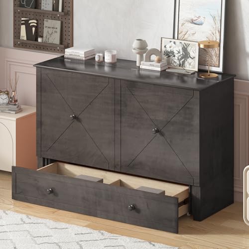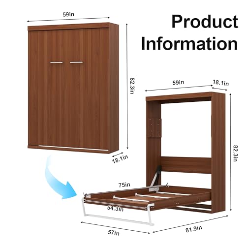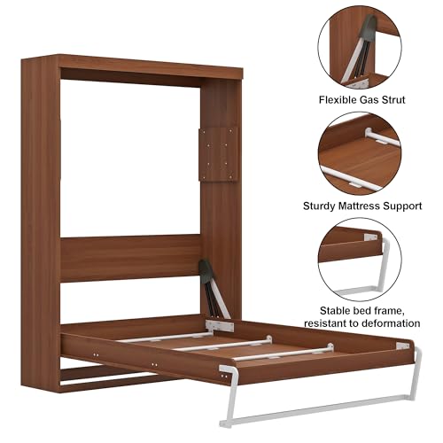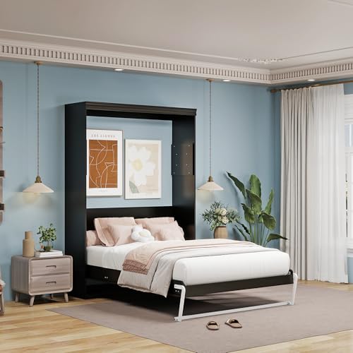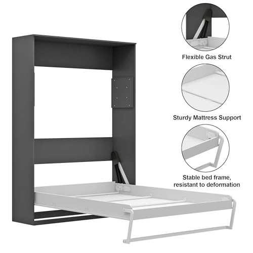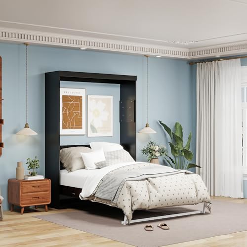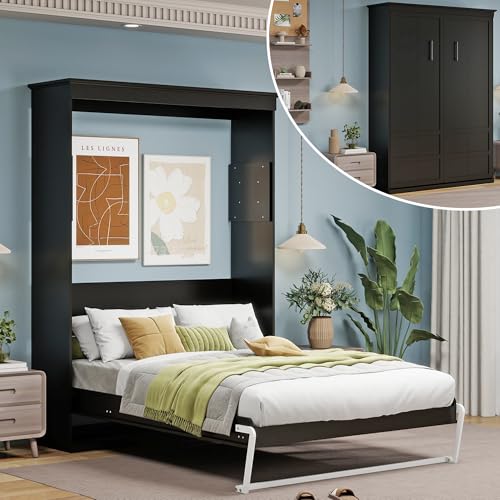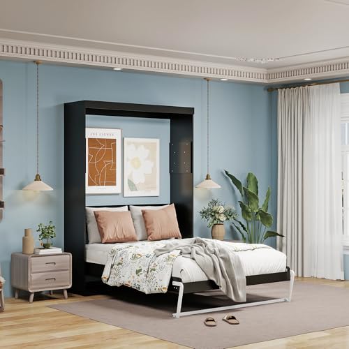 Black Wood Full Size Murphy Bed, Murphy Bed Full Space-Saving Wall Beds, 59'' Sleeping Arrangement for Multipurpose Area/Bedroom/Guest Room/Living Room, Pull Down Bed from Wall