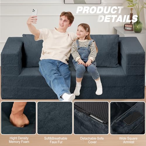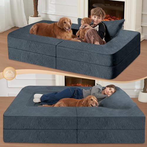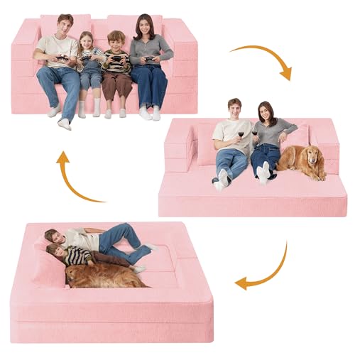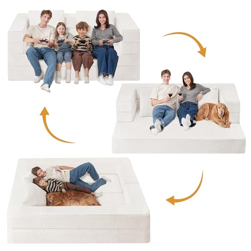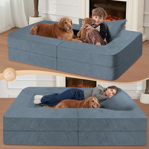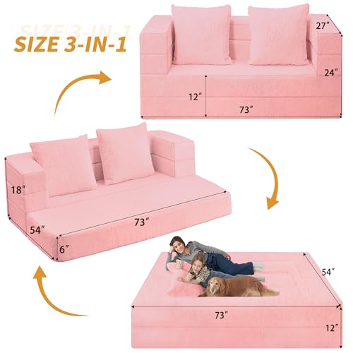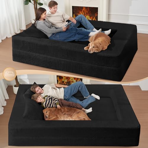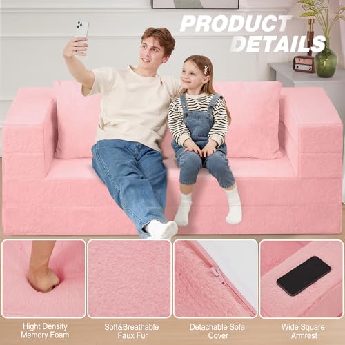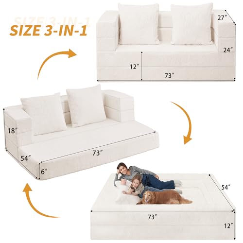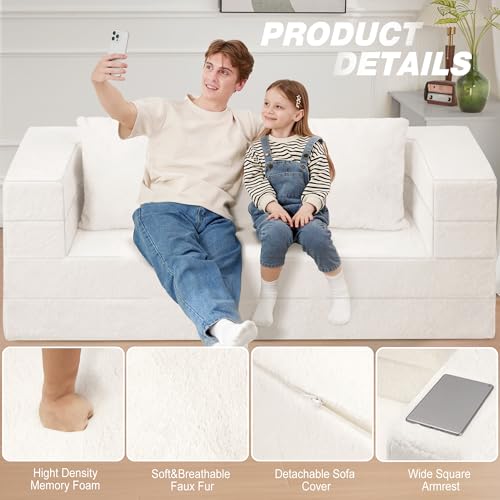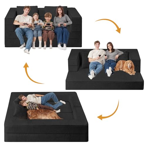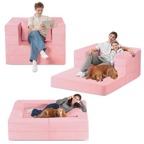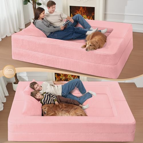 Folding Bean Bag Chair for Adults,3-in-1 Bean Bag Couch Faux Fur Floor Sofa Large Beanbag Convertible Bean Bag Sofa Bed with Pillow in Bedroom,Living Room,Apartment(Twin,Caramel)