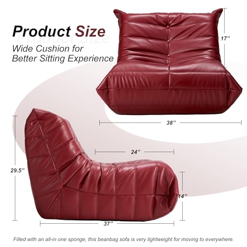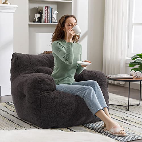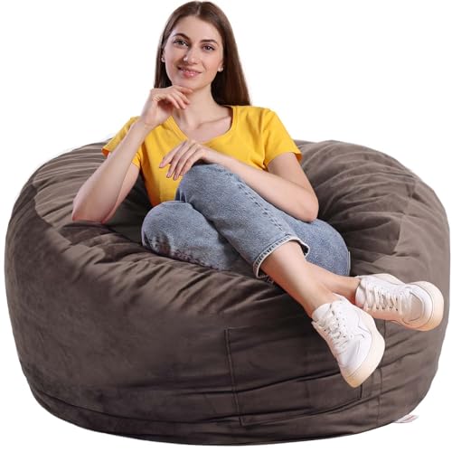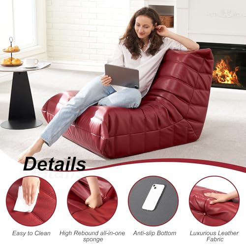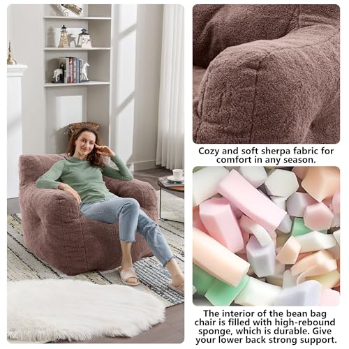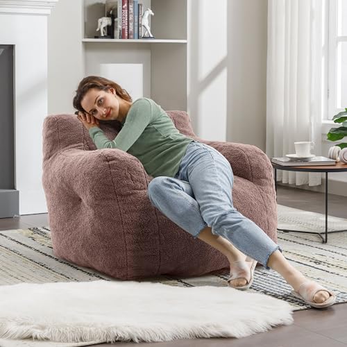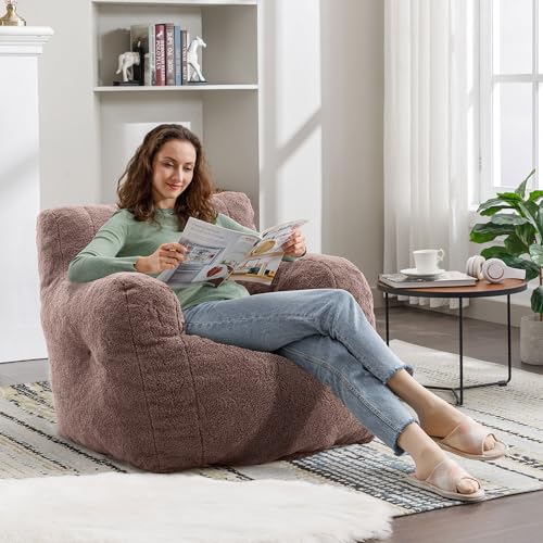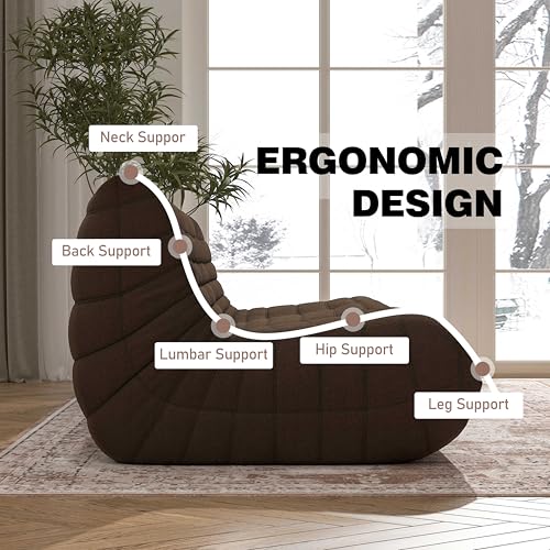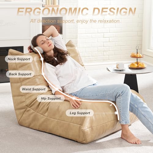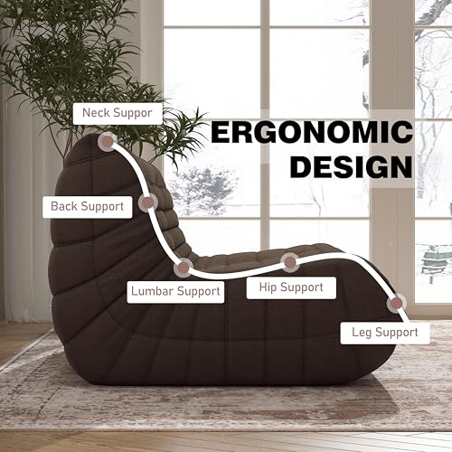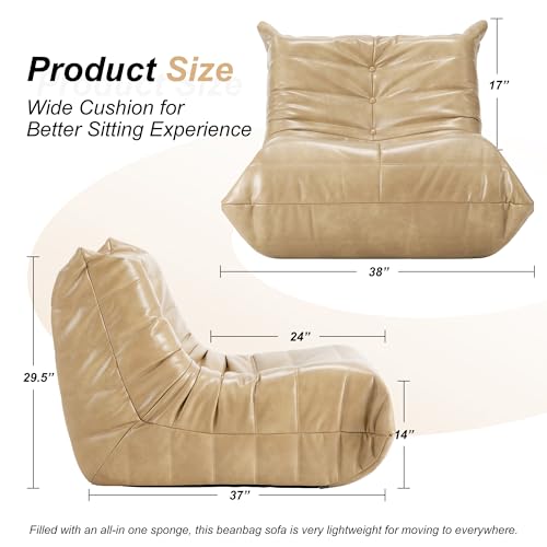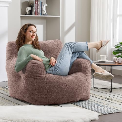 Hobestluk Bean Bag Chair Giant Bean Bag Sofa Memory Foam Bean Bag Chairs for Adults, Bean Bag Couches Faux Leather Bean Bag Chairs for Living Room Bedroom Dorm Office (Brown)