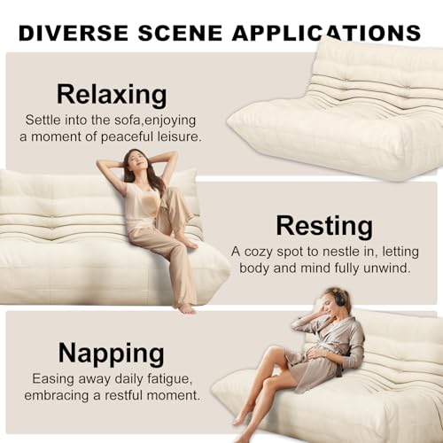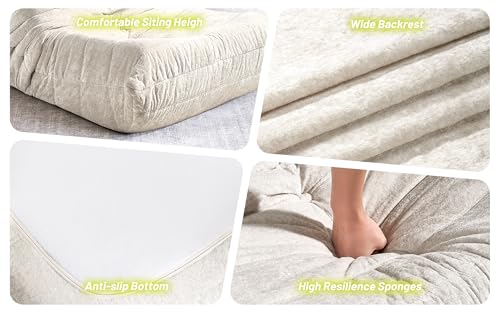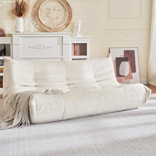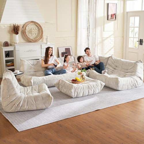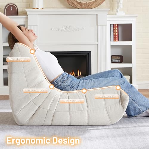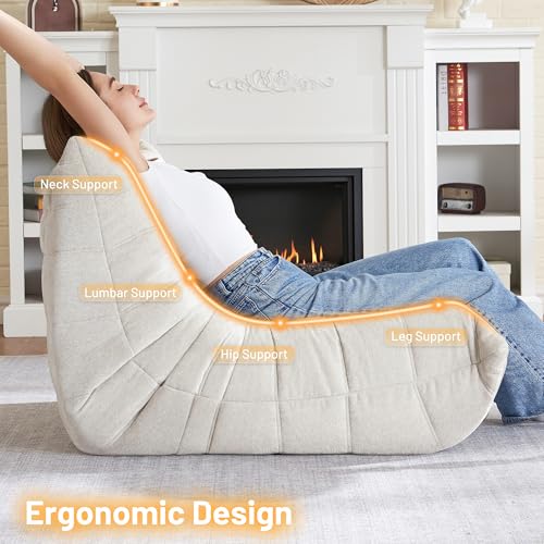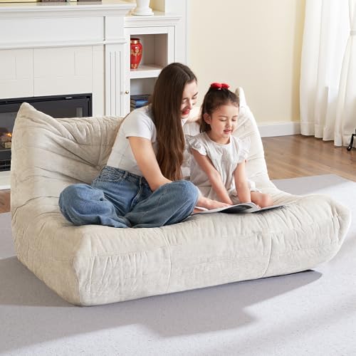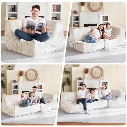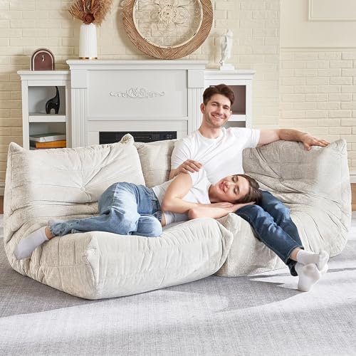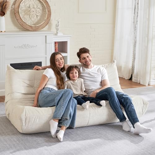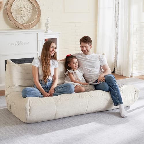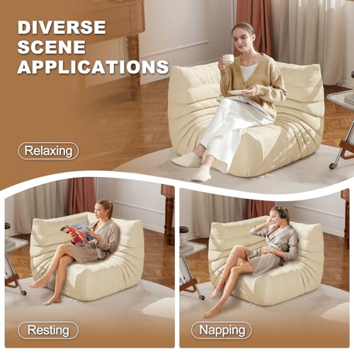Big Bean Bag Chairs for Adults, 3 Seater Large Bean Bag Chair Sofa, Fireside Chair Lazy Sofa Chair with High Density Comfortable Foam, Modern Bean Bag for Living Room, Bedroom, Office (Beige)