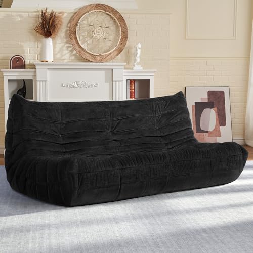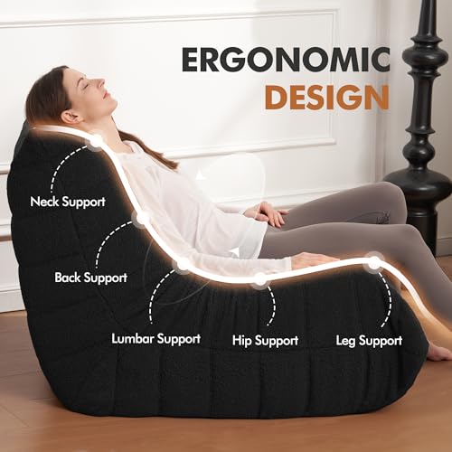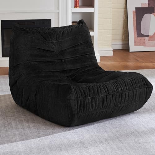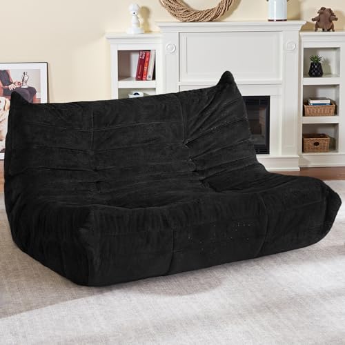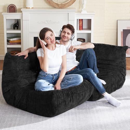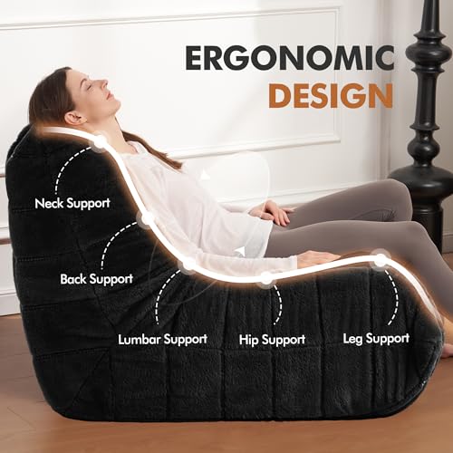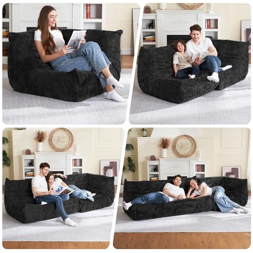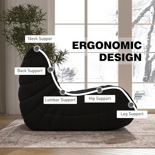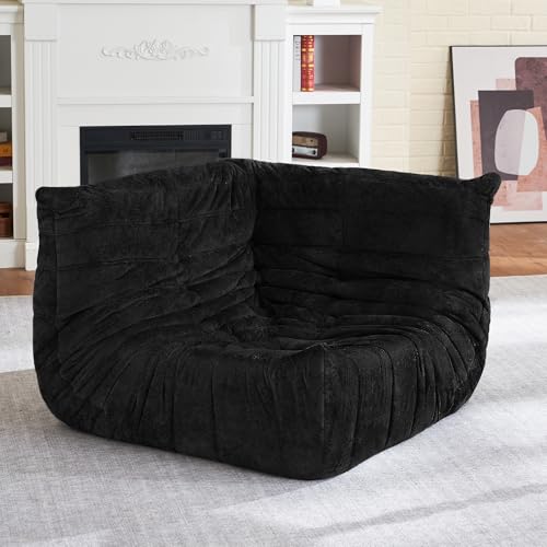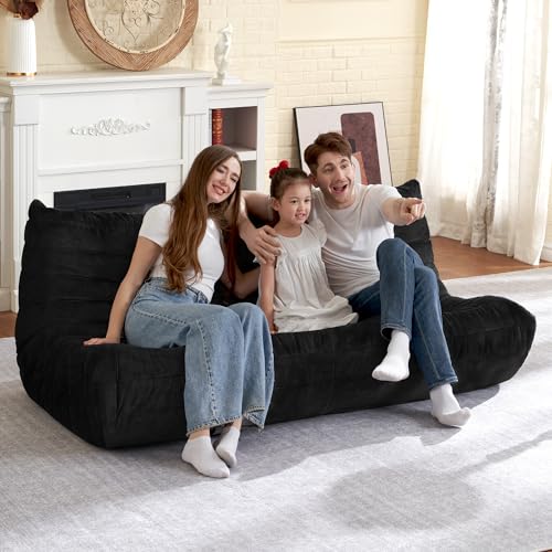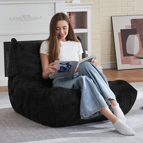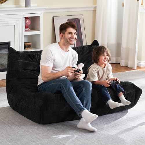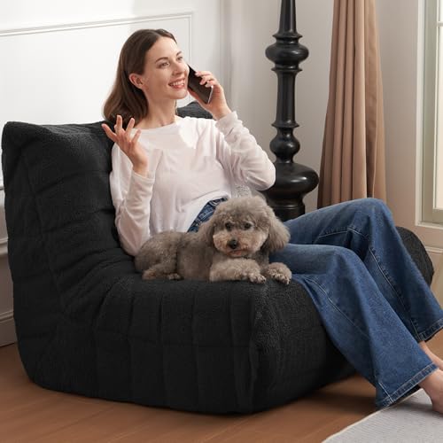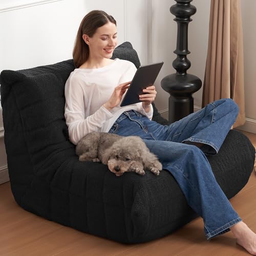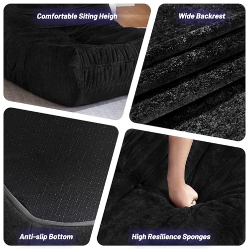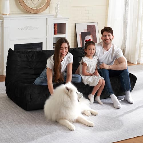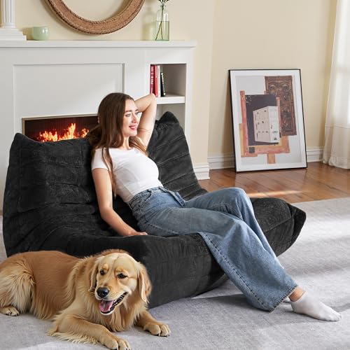 Bean Bag Chair Big Sofa Beanbag Chair for Adults Fireside Chair Bean Bag Lounger with Memory Foam Filled for Home,Apartment or Gaming Venue(Black Plush)
