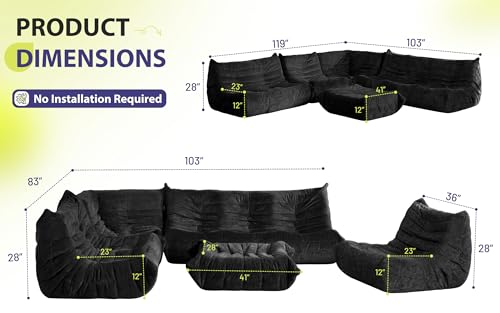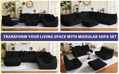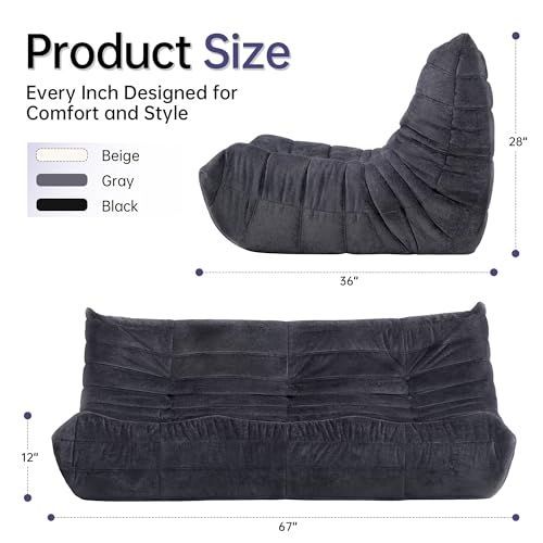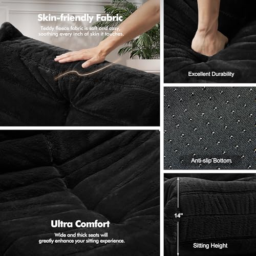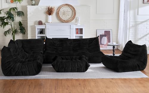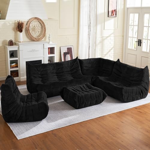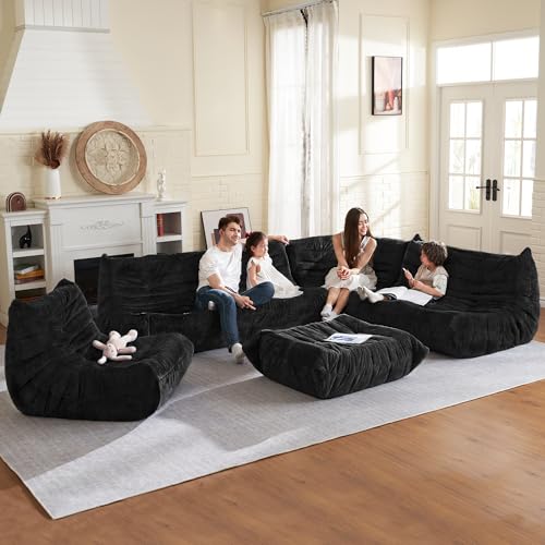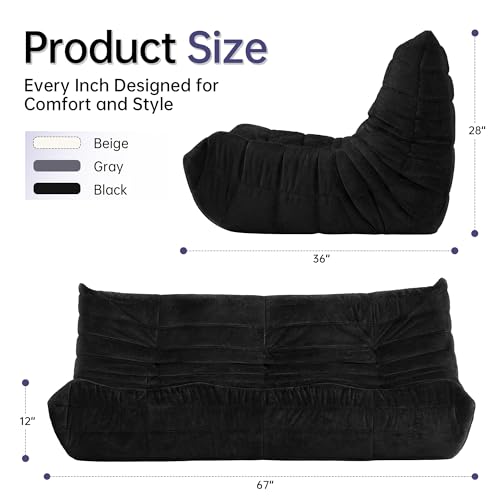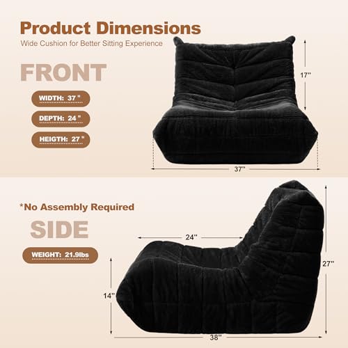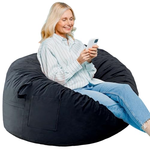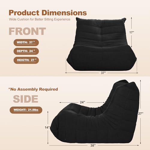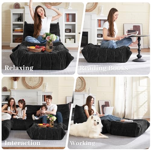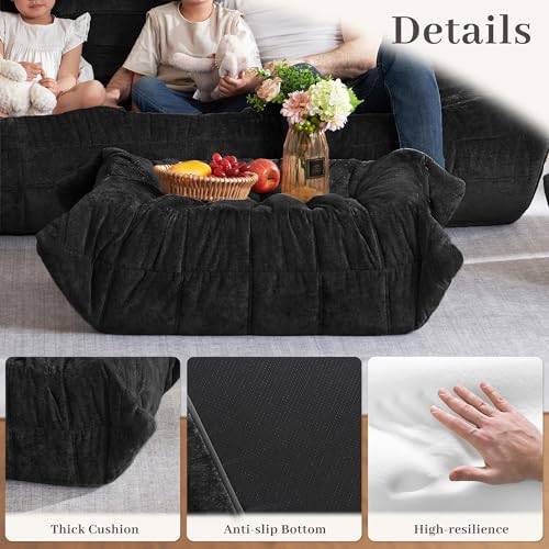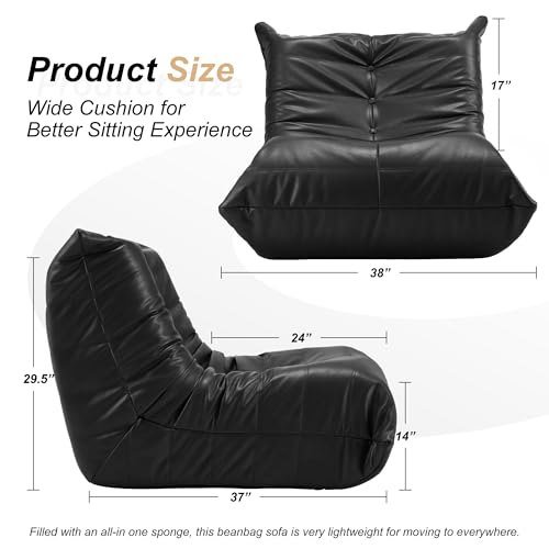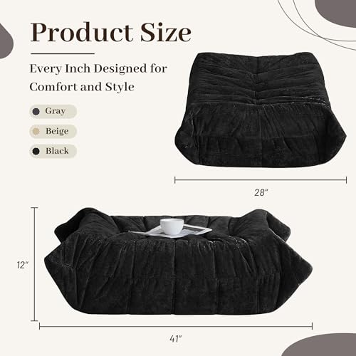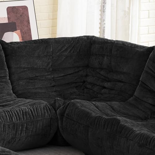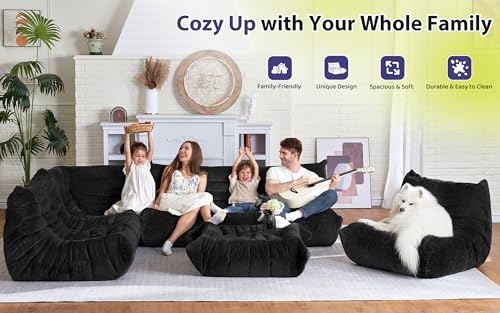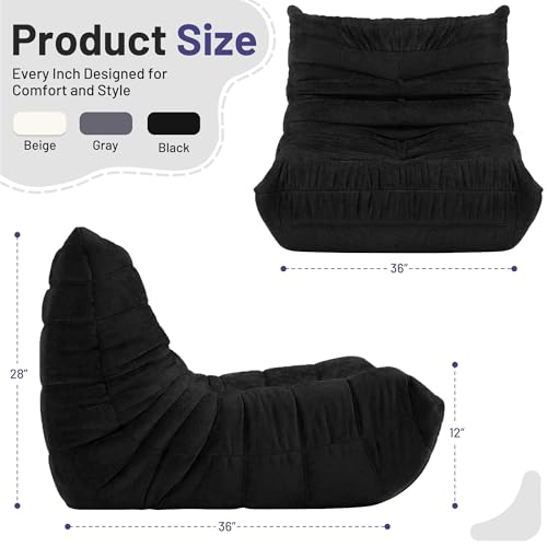 Bean Bag Chair Big Sofa Beanbag Chair for Adults Fireside Chair Bean Bag Lounger with Memory Foam Filled for Home,Apartment or Gaming Venue(Black Plush)