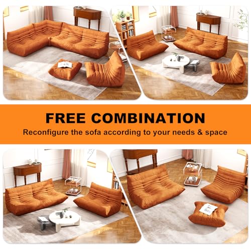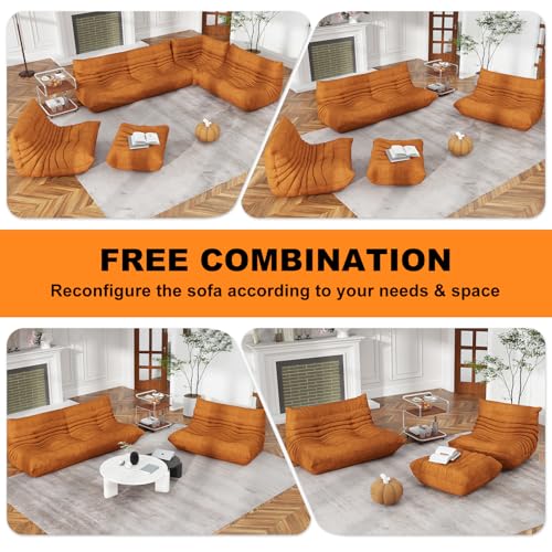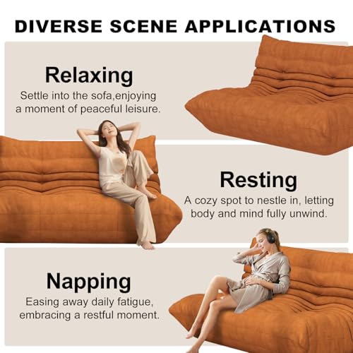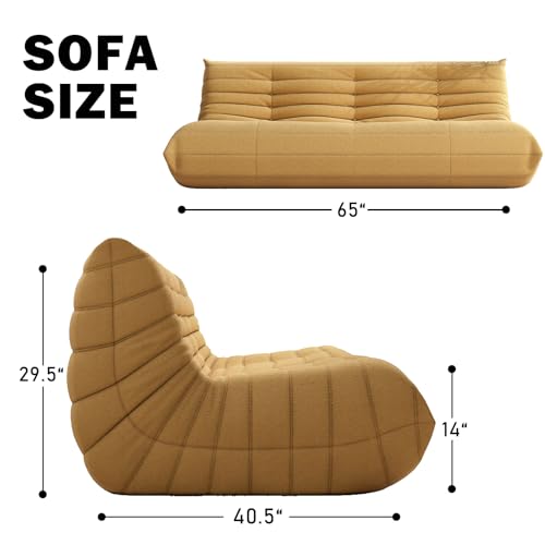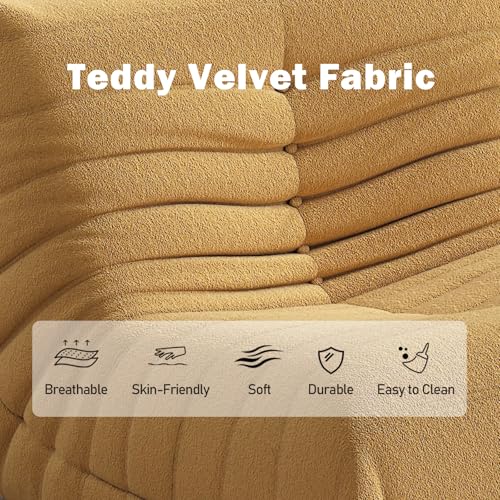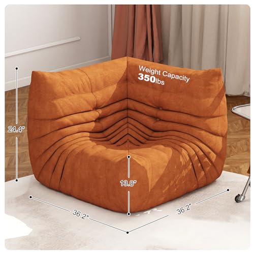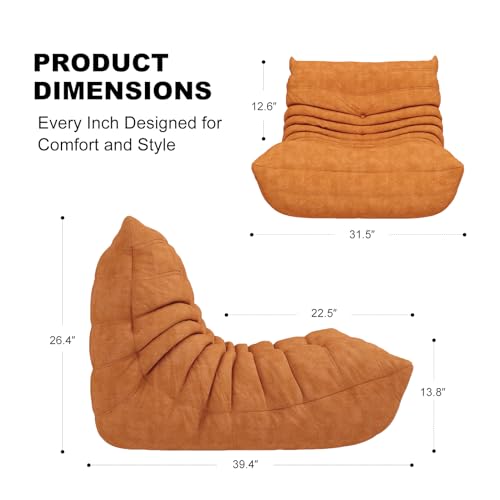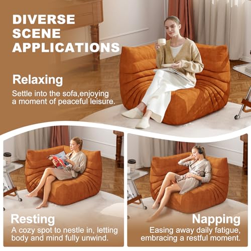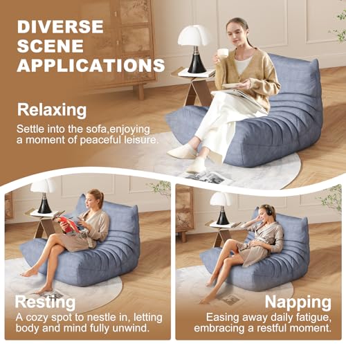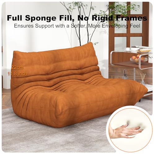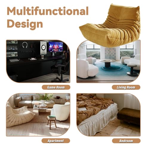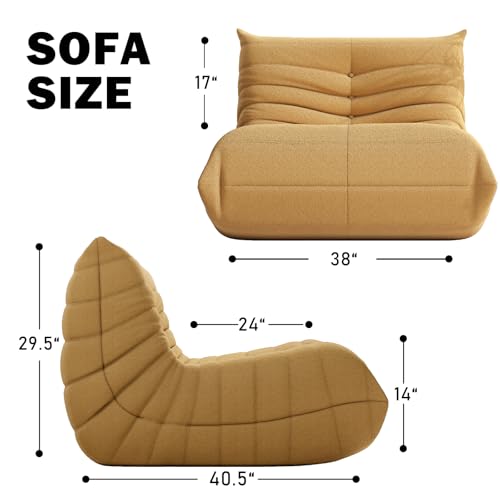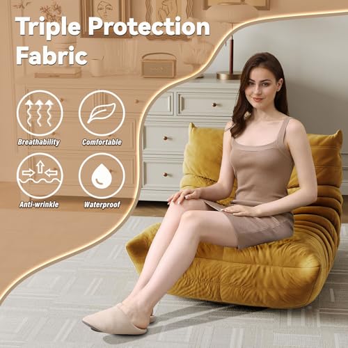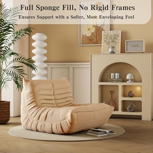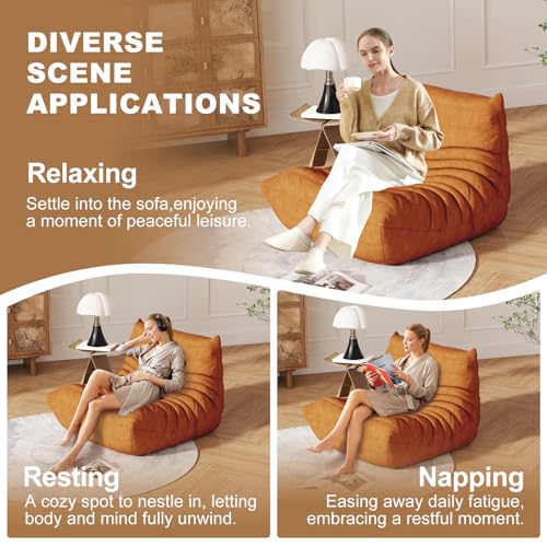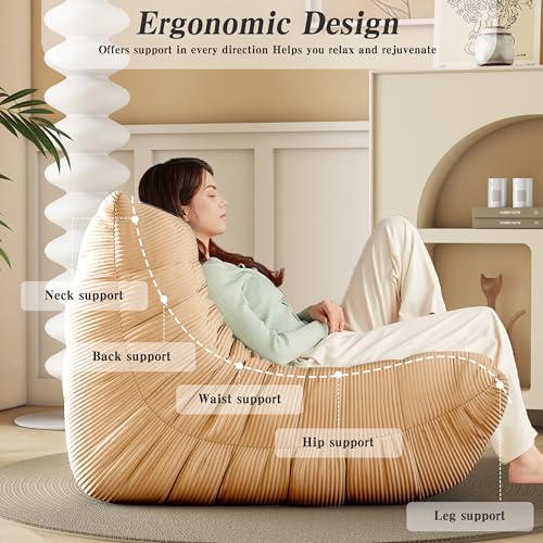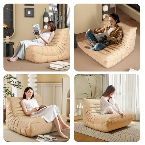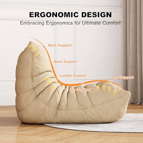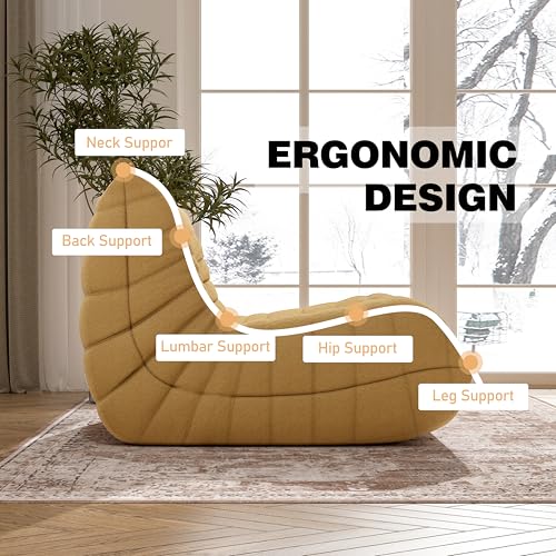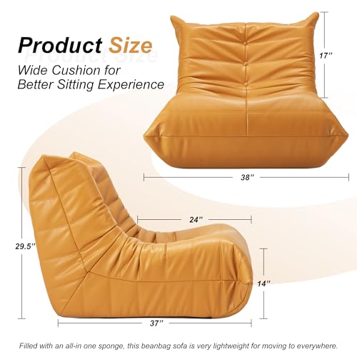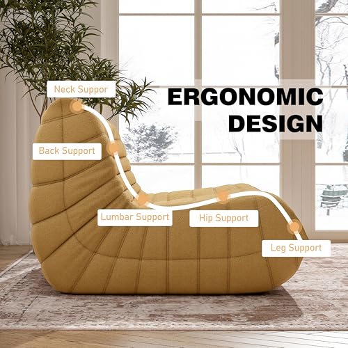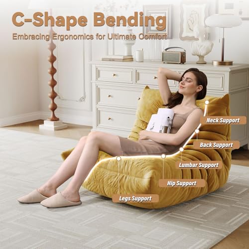 Bean Bag Chair, Lazy Floor Sofa Couch for Adults and Kids, Fireside Chair with Ergonomic Design, Memory Foam Lounge Chair for Living Room Bedroom, Office, Yellow