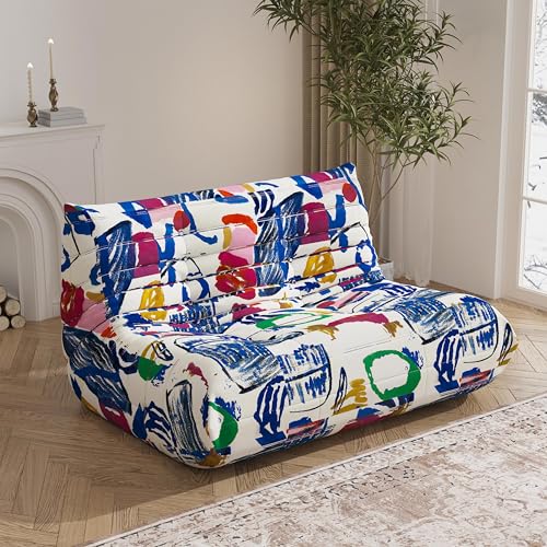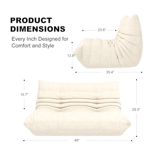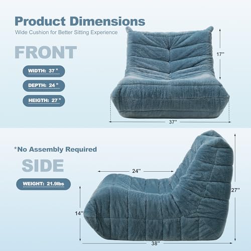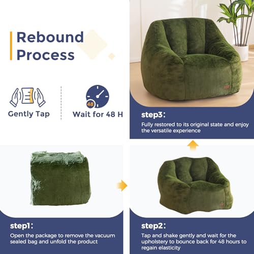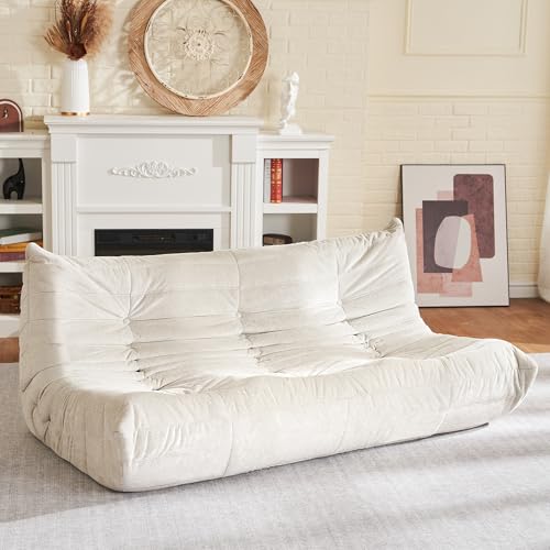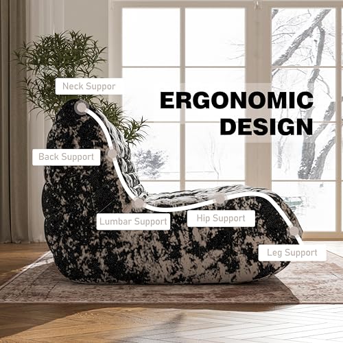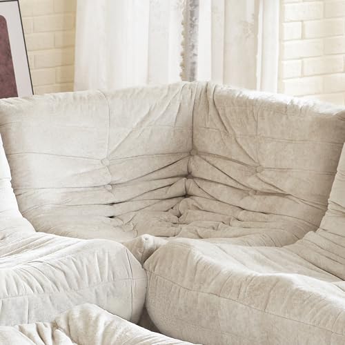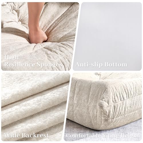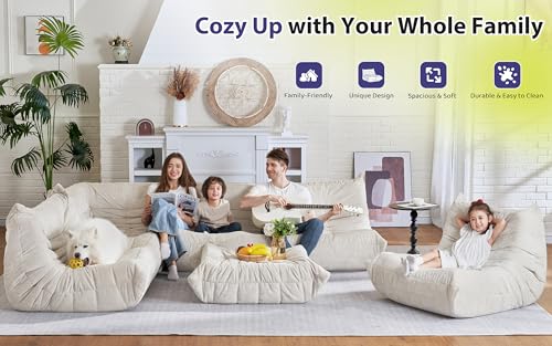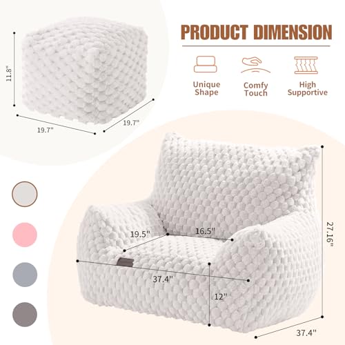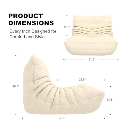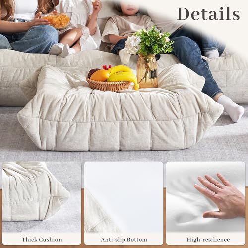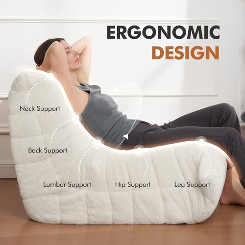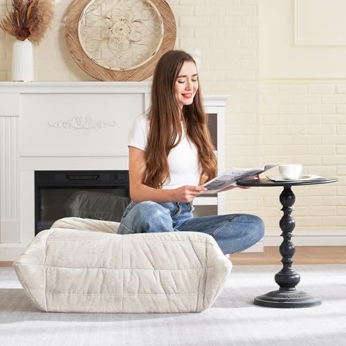 Recaceik Bean Bag Chairs, Tufted Soft Stuffed with Filler, Fluffy and Lazy Sofa, Imperial Lounger Giant Chair for Bedroom, Living Room, White