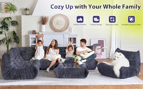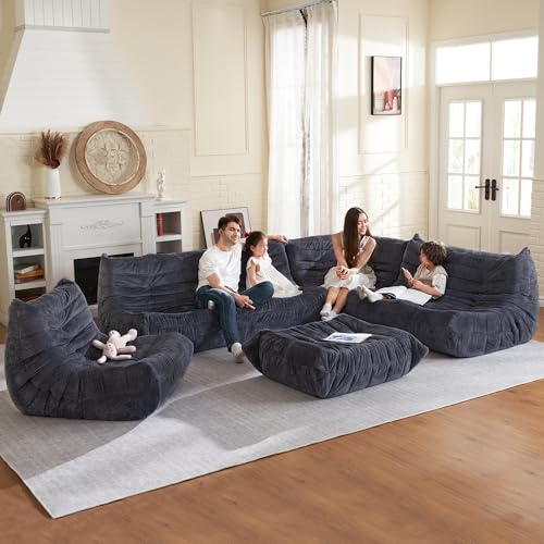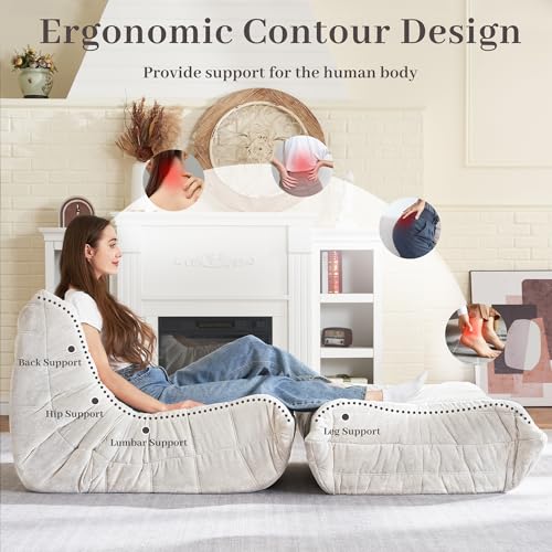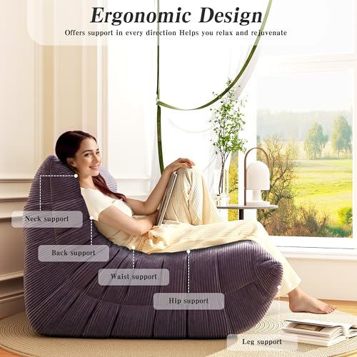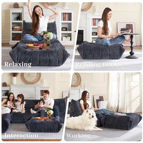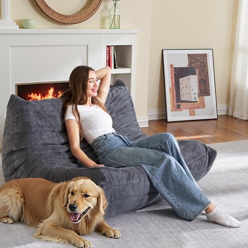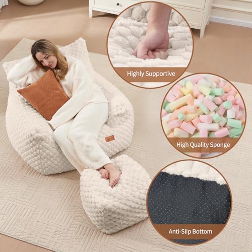 Big Bean Bag Chairs for Adults Cozy Giant Bean Bag Sofa Chair, Gaming Bean Bag Chairs with Foot Rest, Lounge Comfy Chair Indoor for Bedroom, Living Room