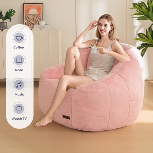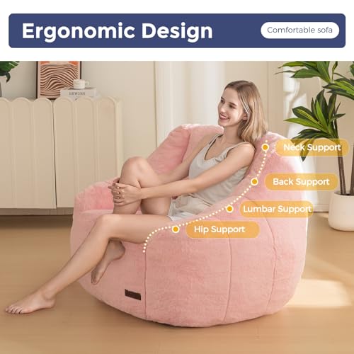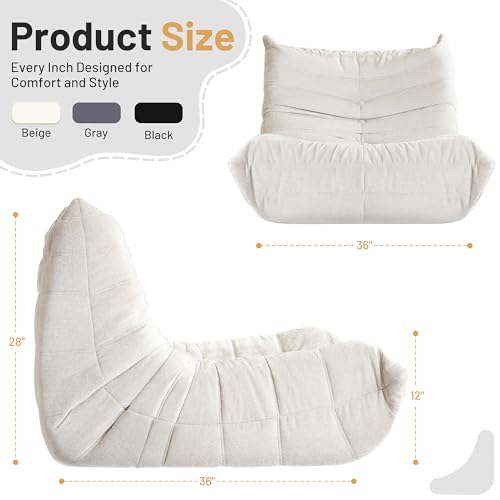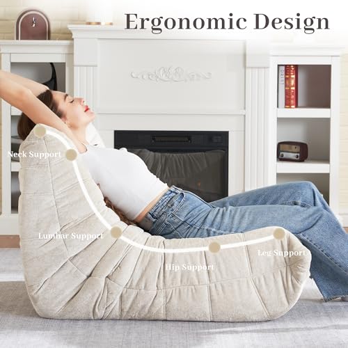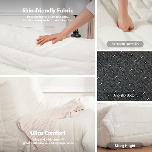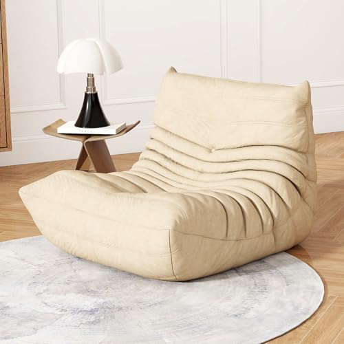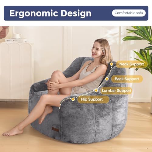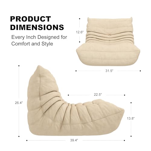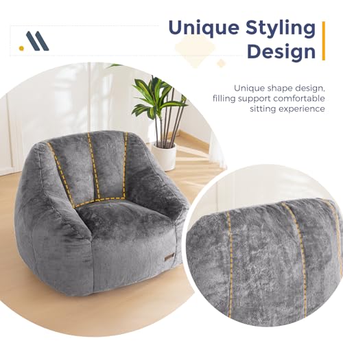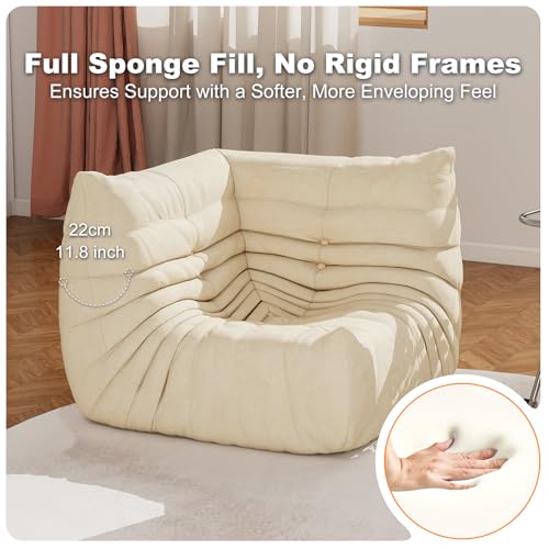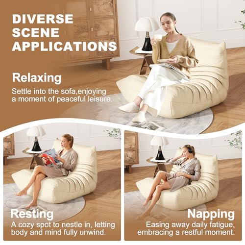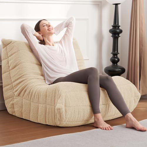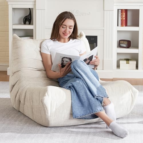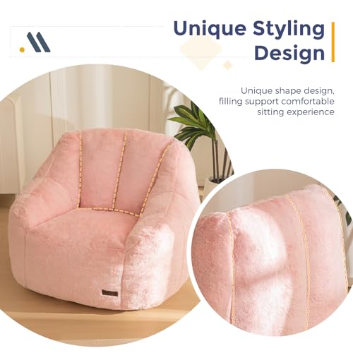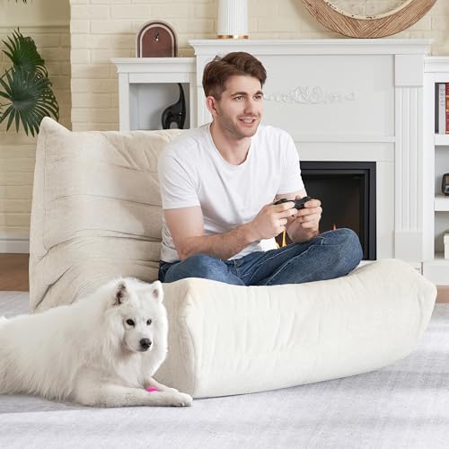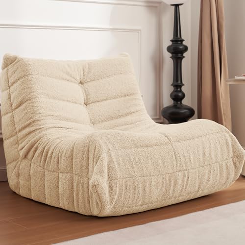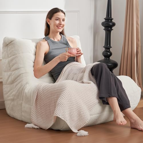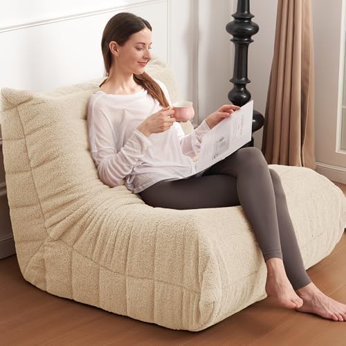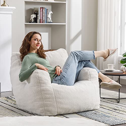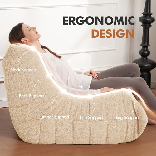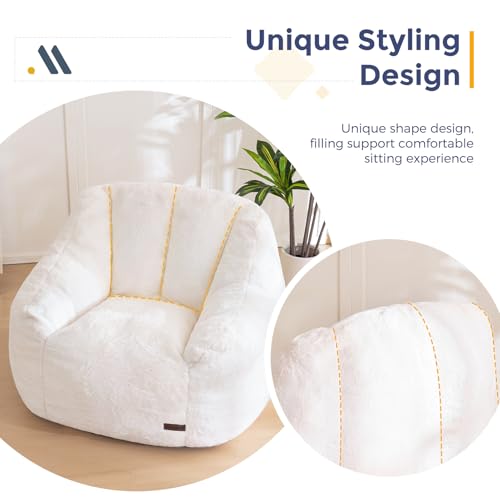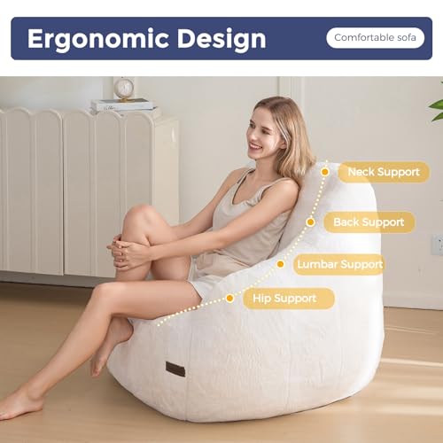 MAXYOYO Bean Bag Chair, Comfy Bean Bag Sofa with Back Support, Faux Fur Bean Bag Chair for Adults and Kids, Stuffed Floor Sofa for Living Room, Bedroom, Apartment, Beige