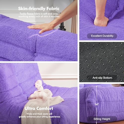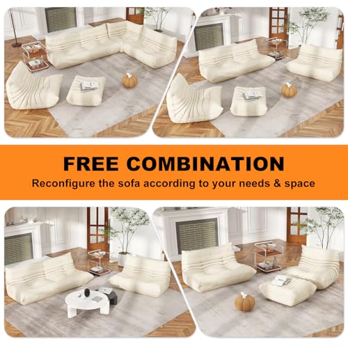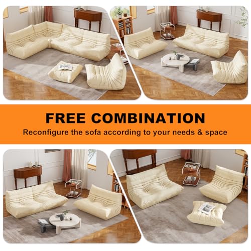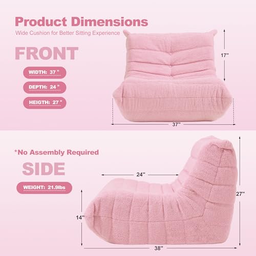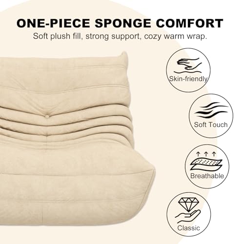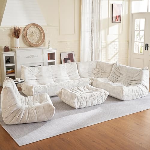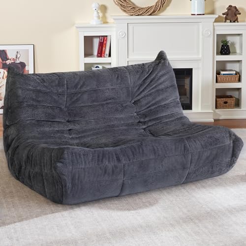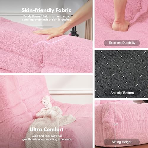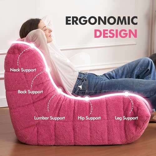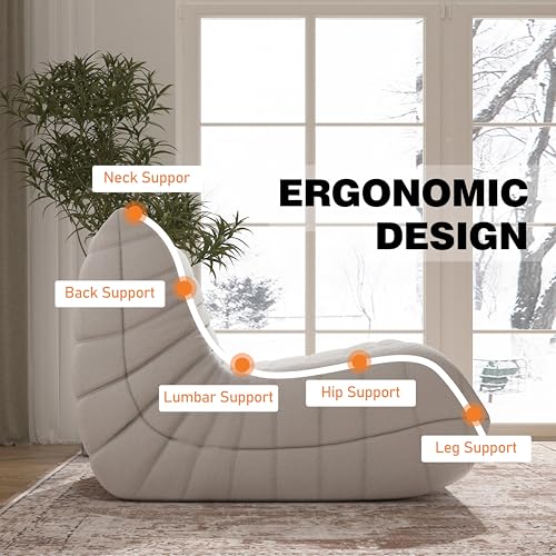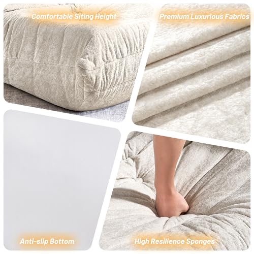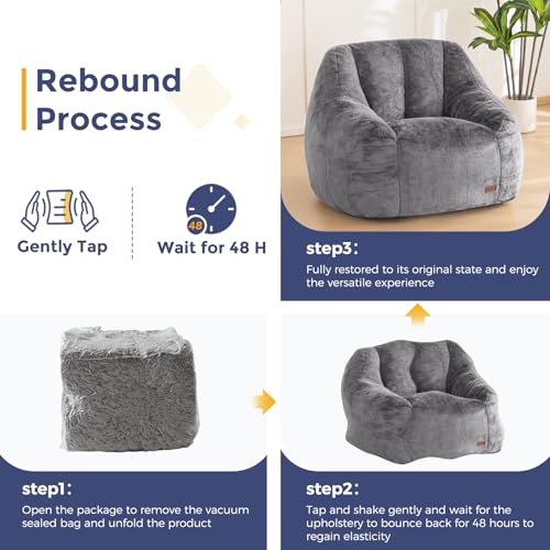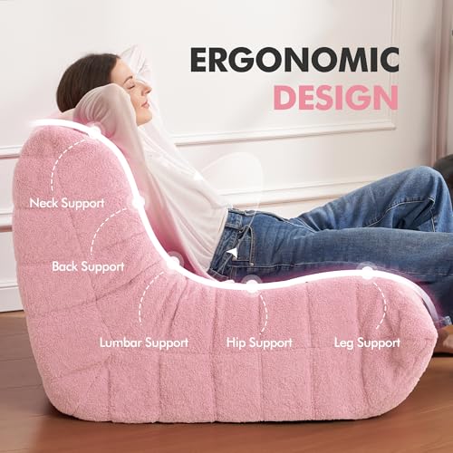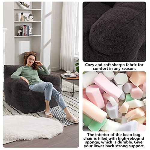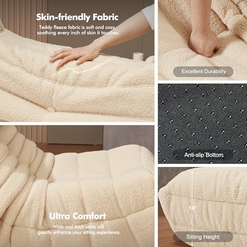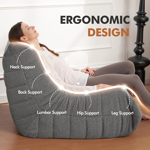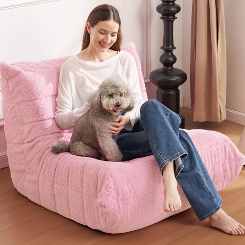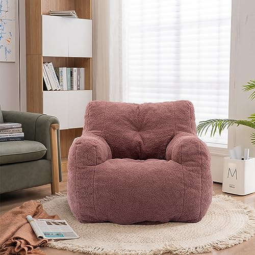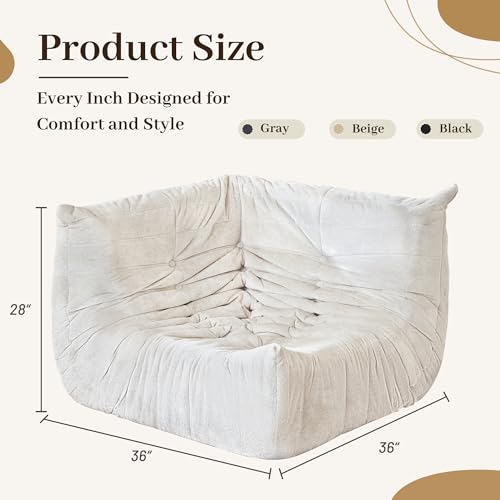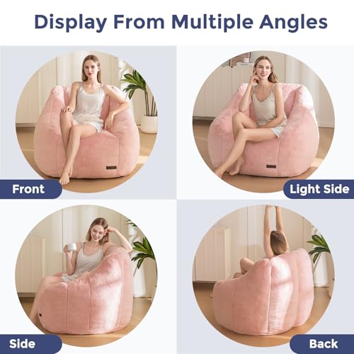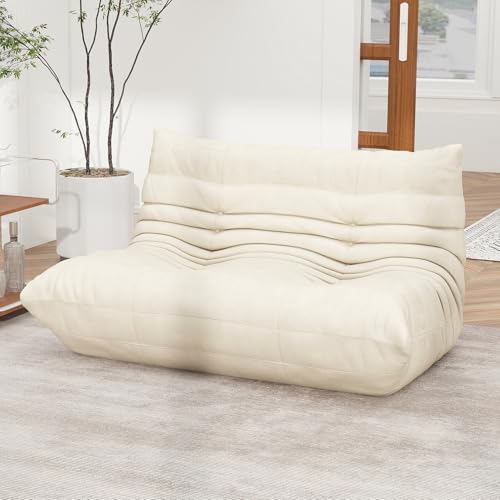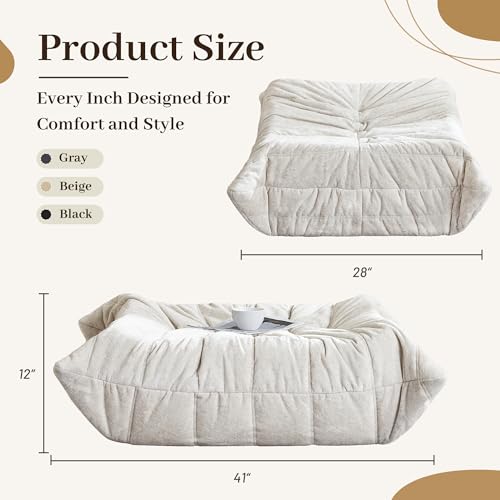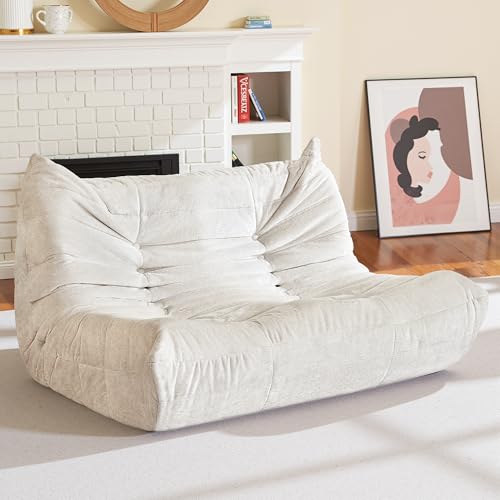 MAXYOYO Bean Bag Chair, Comfy Bean Bag Sofa with Back Support, Faux Fur Bean Bag Chair for Adults and Kids, Stuffed Floor Sofa for Living Room, Bedroom, Apartment, Beige